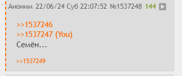 >>1537657 >Я сказал игроку на Мишель, что там особо нечего дальше описывать, так что может сам отписать как она забрала и съебалась Мб он тебя не так понял и не хотел 2 поста подряд своих писать. >Да я не против такого, просто это превратиться в личный тред Агаты-Мишель Ну хоть какое то было бы держание на плаву. Или съебались бы в Мексику и потом новых персонажей с нуля запустить. >Трэша хватает, кумеров нет т.к. нет хентая, лол. Кумеров никогда толком и не было, больше всех ебался в тредах создатель хш, но его детище извратили до неузнаваемости...