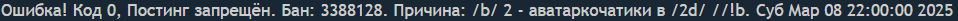 Дальше, кстати, что? В пятницу опять вкатимся в /b/ на 50 постов? Не жалуюсь, сколько интересуюсь для понимания. Надо будет поискать ещё аватарок, чтобы не играть на одном персонаже.
