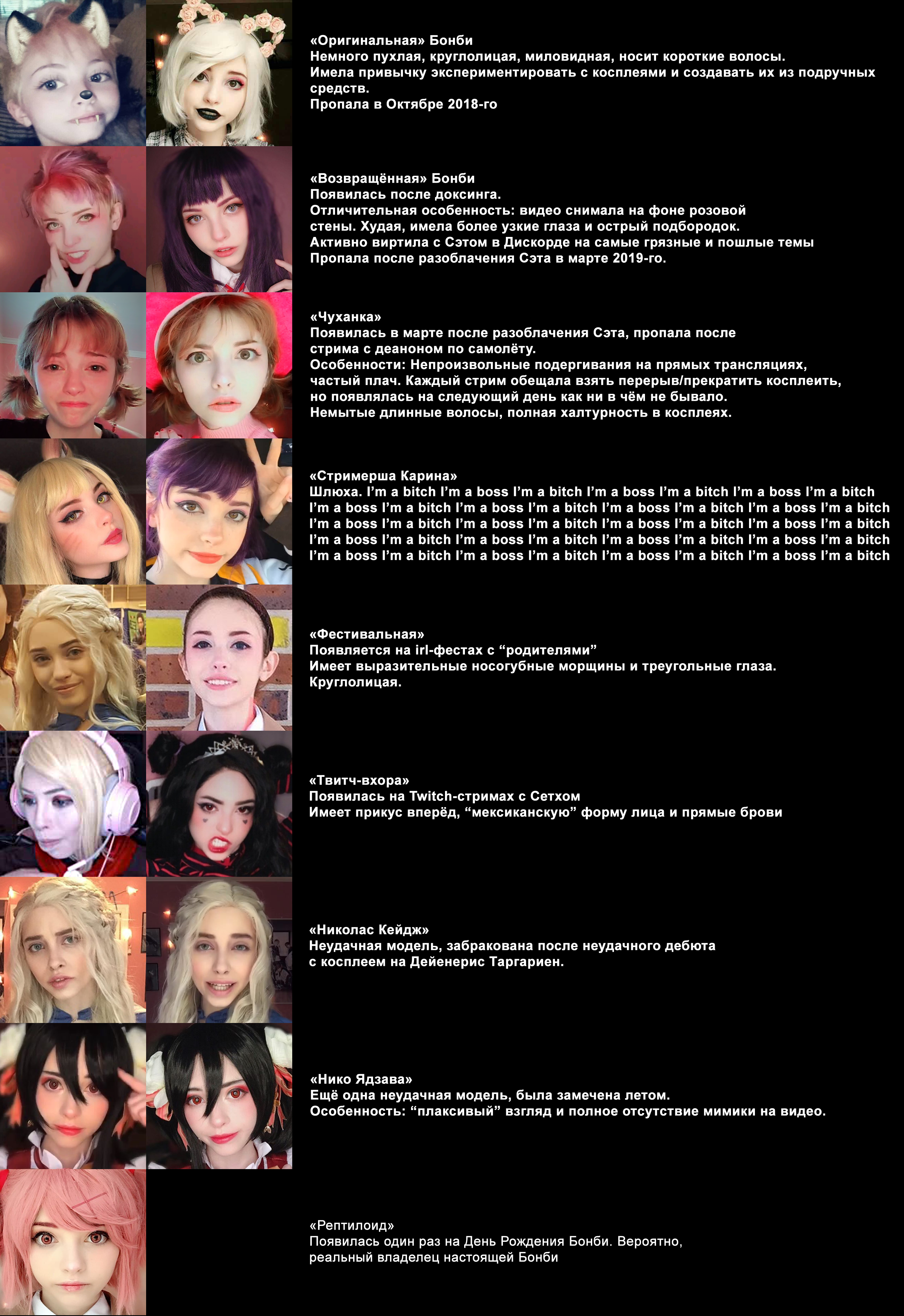 >>1541187 > 1) девочка-эмочка, всегда отыгрывающая темных мрачных злых колдуний. Хуезавр. > 2) просто девочка, отыгрывающая милых девочек. Собственно потому они и в конфе, что в треде на дваче их милых кошкодевочек успели бы трижды изнасиловать, расчленить и продать в сексуальное рабство. Альма. > 3) долбаеб, посмотревший клима жукова и отыгрывающий быдлофайтеров. Очень любит использовать слова по типу "бригантина", "ламелляр", "стеганка" и т.д. при описании своего очередного файтера, снаряженного в самые исторически достоверные доспехи. Альмозавр.