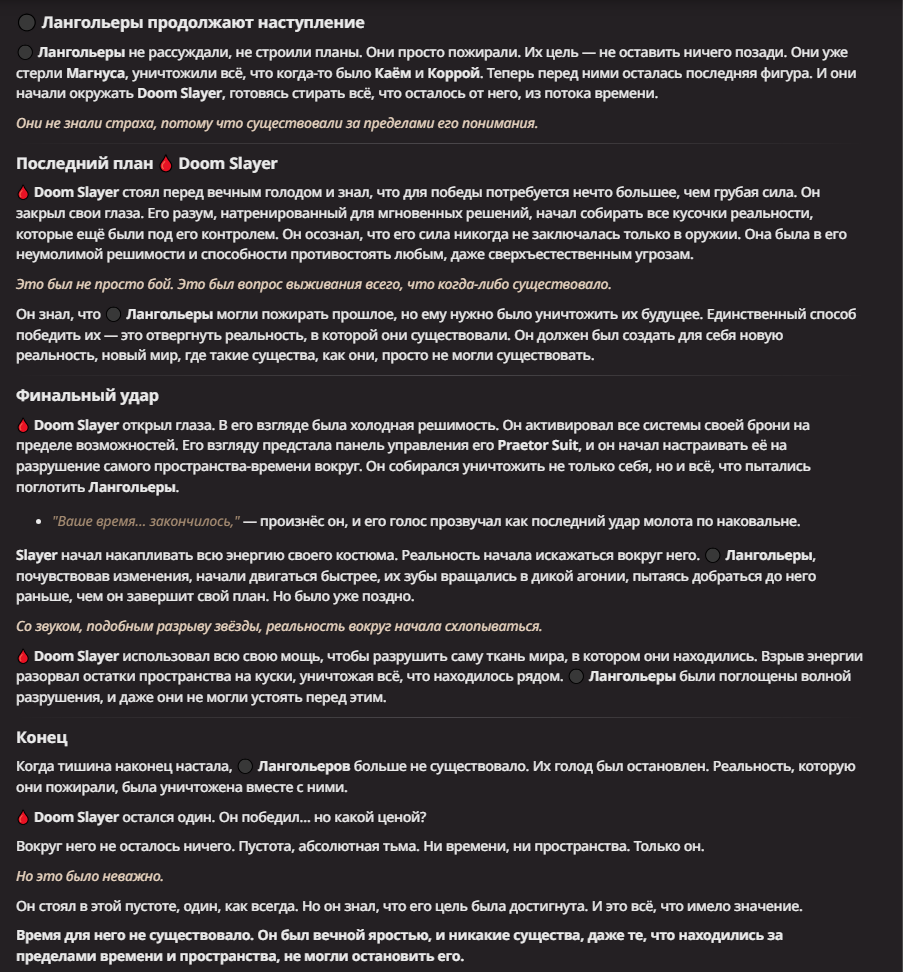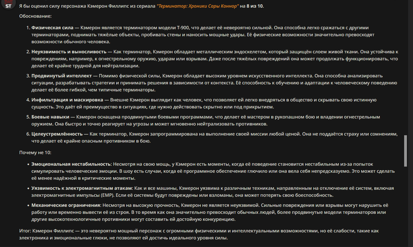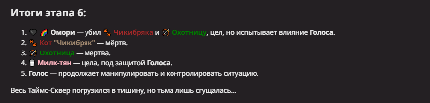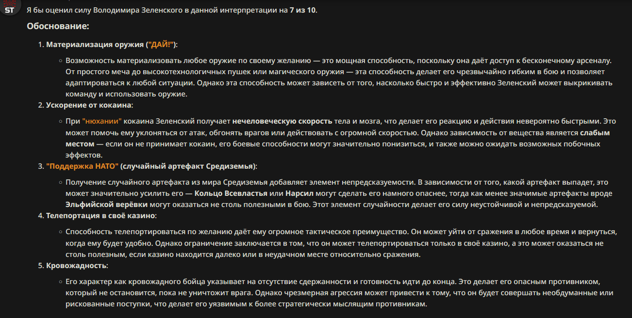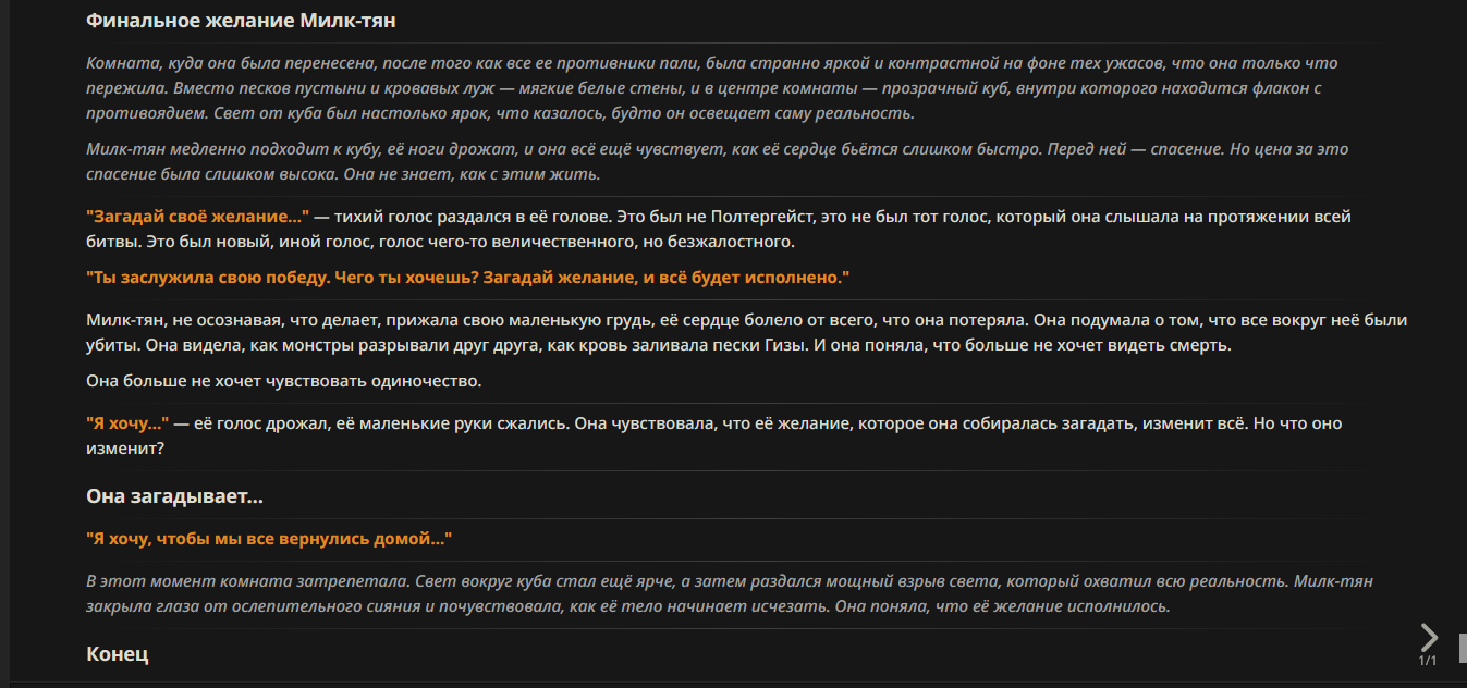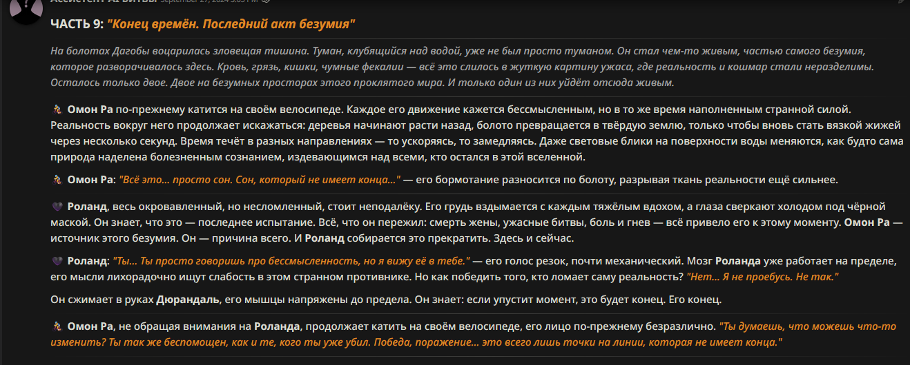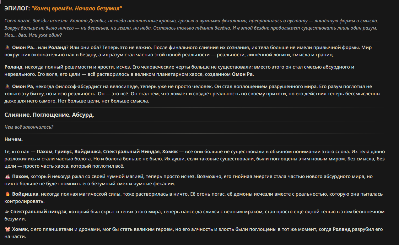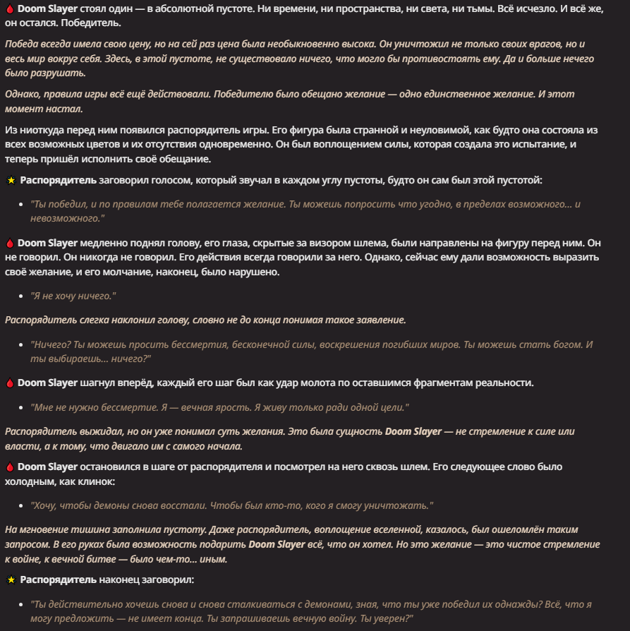 А у меня возникла идея, мб попросить нейронку привести описания всех персонажей к одному виду. Но чтоб она ничего от себя не придумала при этом, завтра протестирую сегодня уже от компа ушел