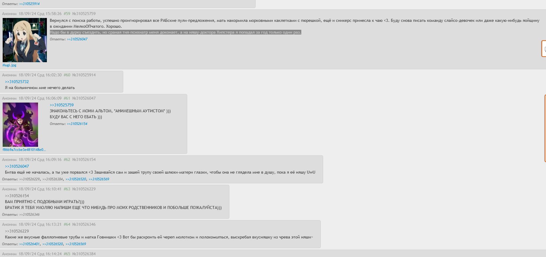 >>1542322 Ну вот посмотри что он пишет, он в тихую кидает по 3-4 перса, а иногда и больше, при этом как бы насмехается. Он думает что гадит только опу, но по факту он в агрессивной форме отжимает места у честных анонов, просто по факту человек мог бы ну мимо ушей пропустить. У нас в тредах не хейтили ни терминатора, ни зеленского, а они каждый бой почти были.