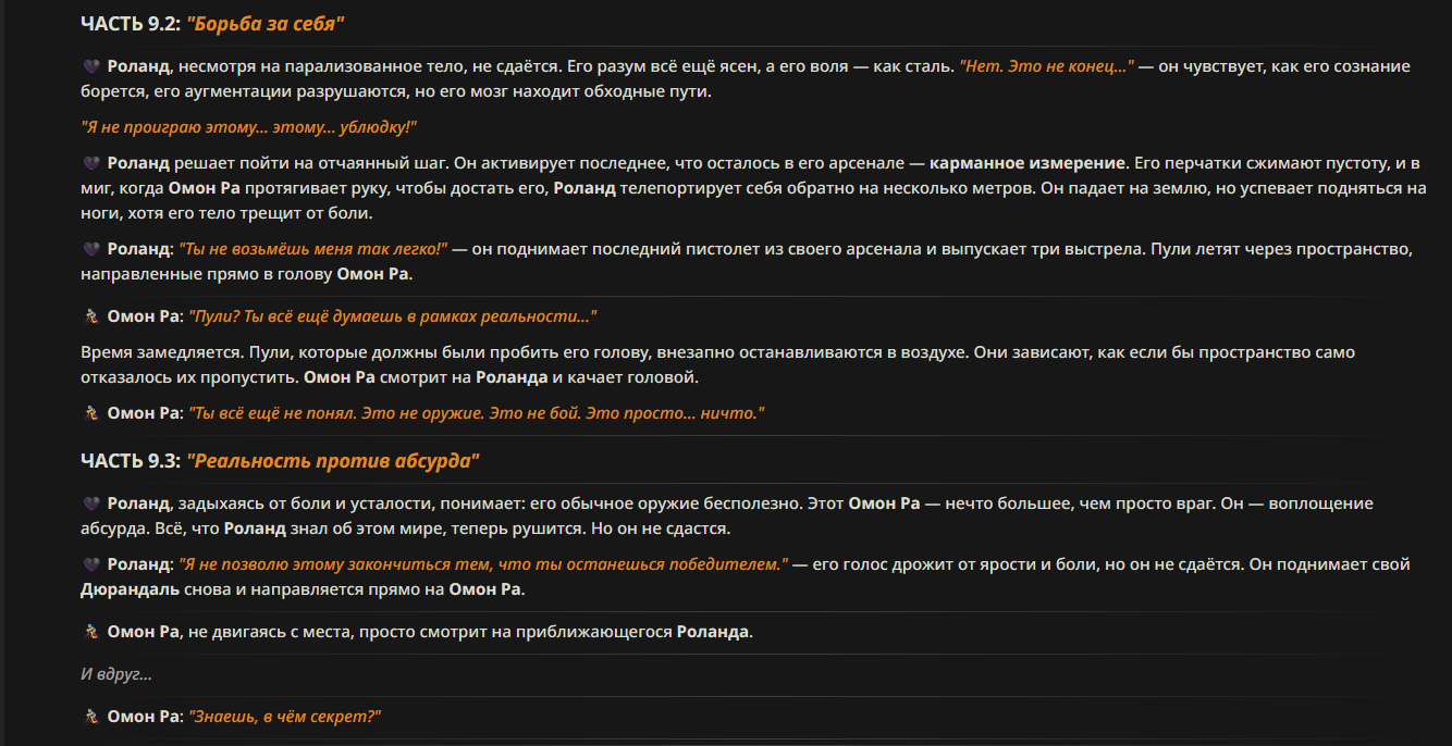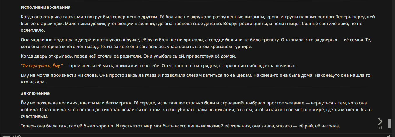 >>1542354 А можно заставить нейронку как-то до конца дописывать эпизоды? Чтобы она сразу писала чем закончился файт. А то когда она пишет кусками, то уже успевает забыть что было раньше.