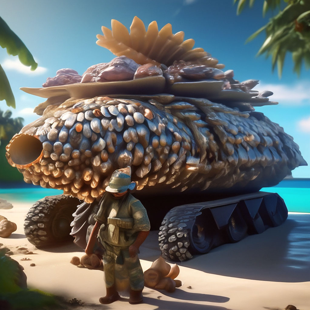 Техномагический монстр, созданный культом Карго - гигантский танк, вылепленный из соломы, навоза и ракушек и начинённый найденной папуасами техникой. Управляемый экипажем из сильнейших папуасских шаманов, танк с воем и скрежетом ползёт по полю боя, оставляя за собой вонючий след из нефти и мазута. Его задранный вверх ствол, похожий на гигантский член, ведёт прицельный огонь снарядами, небрежно вырезанными из баобаба. Аура страха окружает машину, придавая ей ещё более угрожающий и неумолимый вид. У танка есть ахиллесова пята: мощный поток воды быстро смоет скрепляющий конструкцию навоз с соломой и танк развалится, превратившись в кучу ракушек и металлолома.
