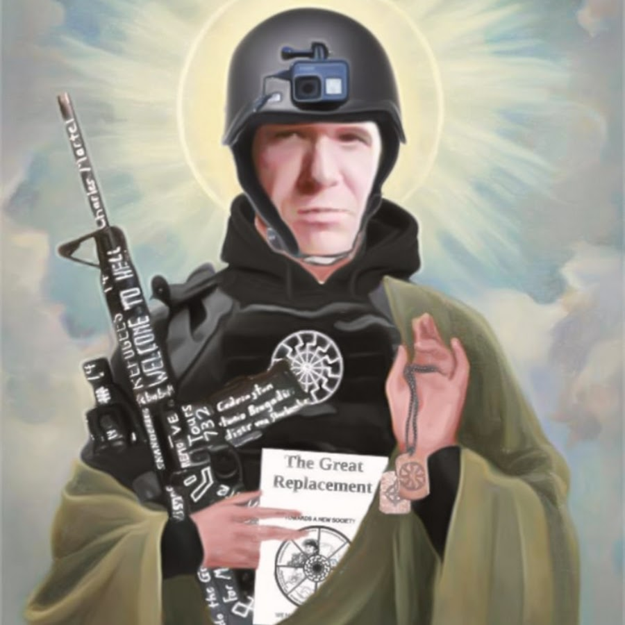 Брентон Таррант, новозеландский массшутер, за 5 минут до захвата полицией. Вооружен AR 15 с режимами стрельбы "по либералам", "по чуркам", "по христианам", которые повышают урон по врагам данных типов и 10 обойм к ней, за спиной дробовик для ситуаций ближнего боя, дробь для которого вымазана салом, не позволяя душам убитых попасть к гуриям. Умеет призывать мощь "Немецких Парашютистов", взмывая в воздух и начиная метать освященные лично Гиммлером ножи Гитлерюгенда во всех противников в поле зрения, после чего приземляется в желаемую точку на поле боя. На голове корона Бога Адского Пламени, давшего Брентону указание - научить каждого мигранта хорошим манером, накормив свинцом. Нивелирует урон от огня, пожирает тела павших соперников, создавая вокруг Брентона барьер из золы и маленьких осколков костей.