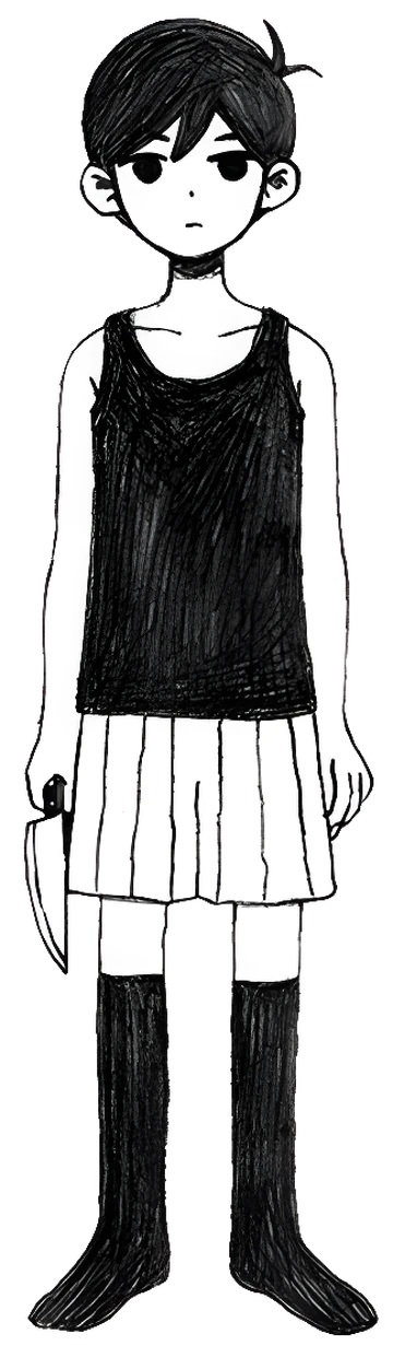 Выглядит как мальчик с короткими коричневыми волосами и большими янтарными глазами. Он носит голубую застёгнутую рубашку с синими шортами, оранжевые кроссовки вместе с чёрной школьной сумкой на спине.Наиболее часто его можно увидеть с закушенным леденцом.