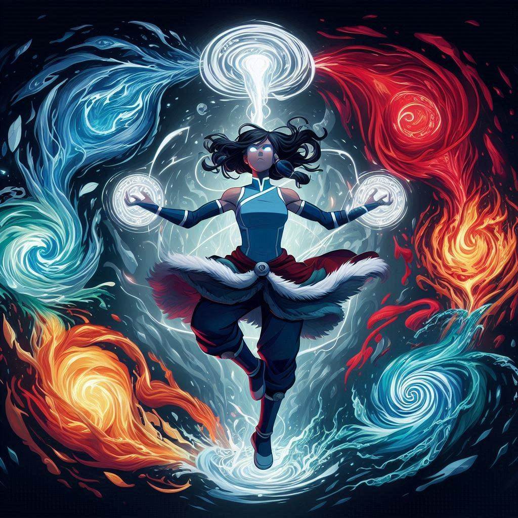 Стихия Воды - управление массами воды, снега, растений или льда. Контроль агрегатного состояния и температуры воды а также исцеление. Это элемент изменения. Сила магии воды в её универсальности: оборонительные техники легко переходят в наступательные и наоборот. Вместо простого блокирования атаки противника Корра может направить его силу против него самого Стихия Земли - манипуляция всеми видами земли, включая камни, песок, кристаллы, грязь или даже металл. Является элементом стойкости. В магии земли соблюдается стойкий баланс между атакой и защитой. Используя магию земли Корра предпочитает останавливать и разрушать все атаки противника, выжидая и оставляя мощный решающий удар за собой Стихия воздуха - позволяет управлять потоками воздуха или создавать их. Является элементом свободы, самая динамичная из всех магий. Используя магию воздуха Корра следует по пути наименьшего сопротивления, она уклоняется от всех атак, а не отражает их. Большинство техник воздуха оборонительные, заточенные за изматывание противника, при использовании малых сил. Но при желании воздухом можно задушить противника создав вакуумный шар вокруг головы Стихия огня - создание и управление всеми видами огня или даже молний особо эффективных против металлических врагов. Является элементом силы и отличается особо агрессивным атакующим стилем и малым количеством защитных приёмов. Главная цель Корры при использовании огня - подавить противника своей голой мощью, не дав ему и шанса на контратаку или побег