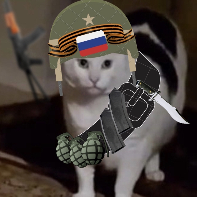 Кот "Чикибряк": Титановый экзоскелет. Быстро лазает и бегает. Обладает нанотехнологичными девайсами разработанными в недрах ДНР лаборатории. Вызывает по рации поддержку с воздуха. Ест сух-паёк восстанавливая здоровье. Крайне опытный солдат ДНР ополчения.