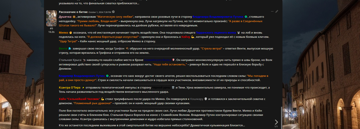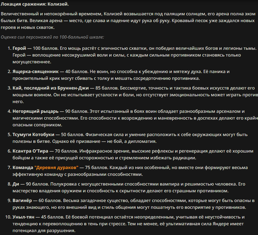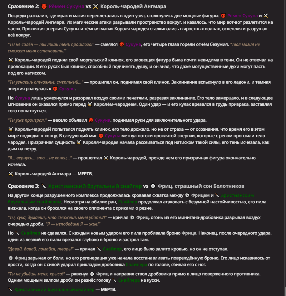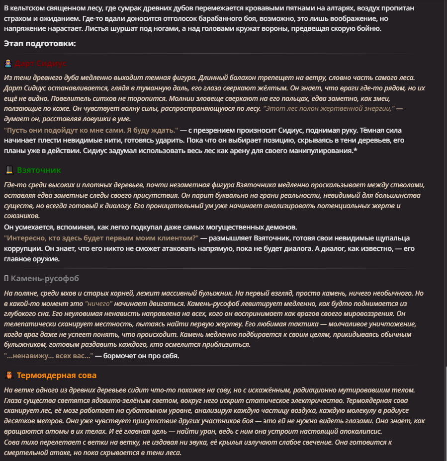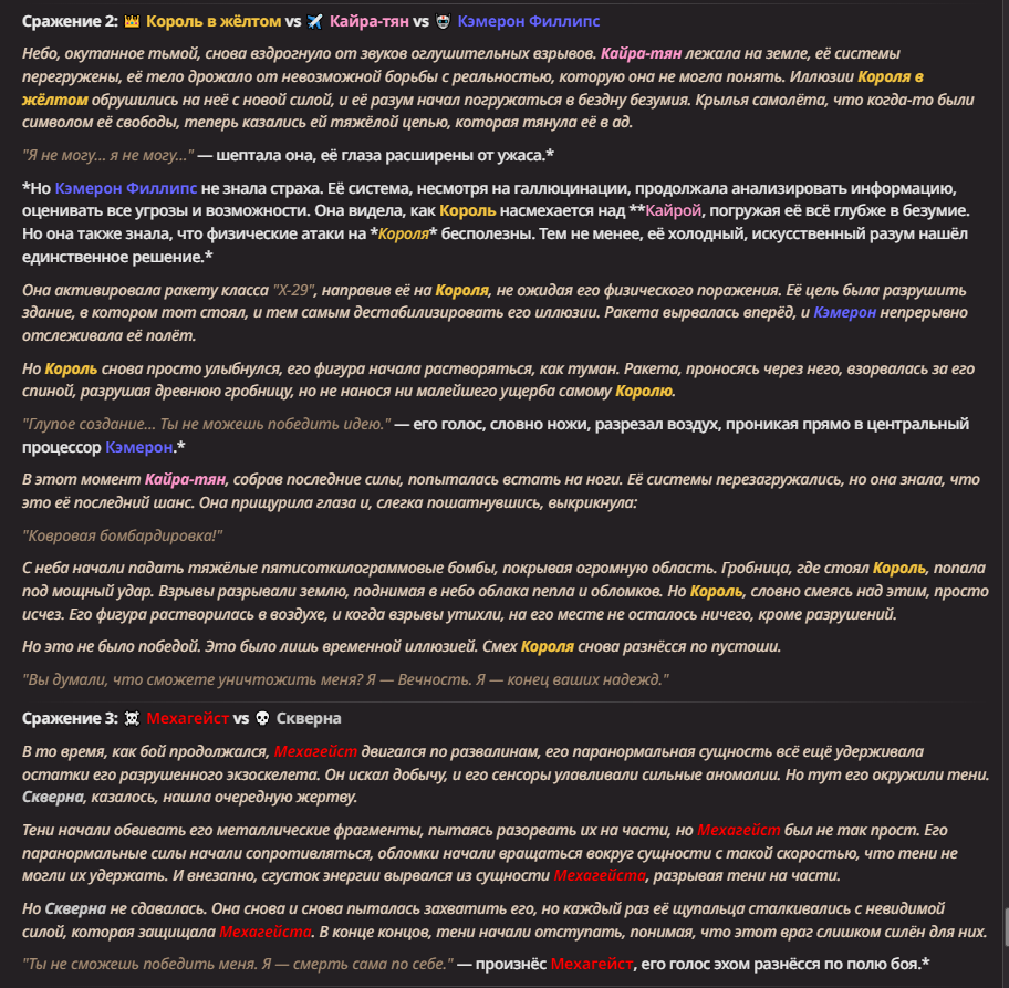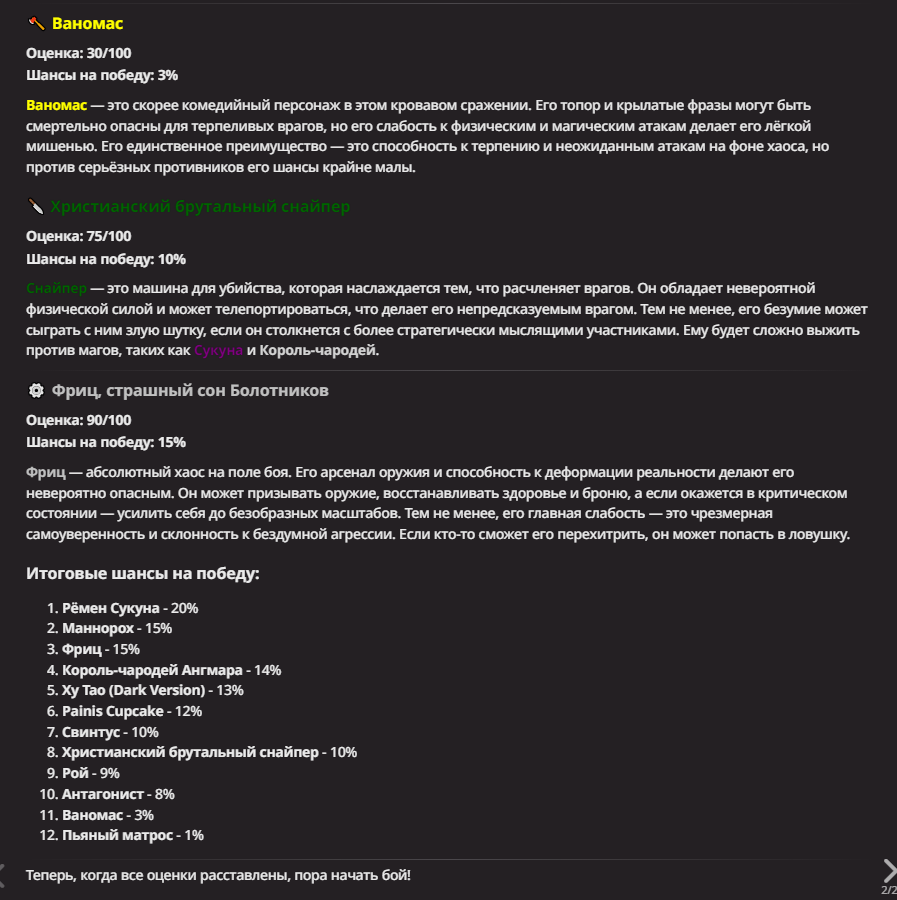 АИ БИТВЫ Игровой тред №2. В этих битвах может участвовать любой персонаж из любой вселенной, даже нашей(и даже из вашей головы)! Вам только нужно предложить их. Так же можете предложить место проведения боя которое выберется случайным образом.