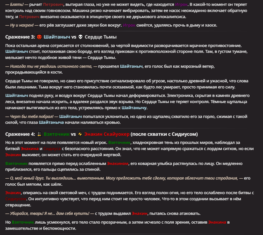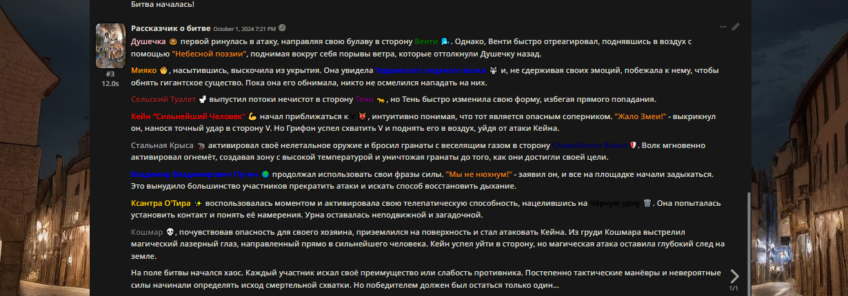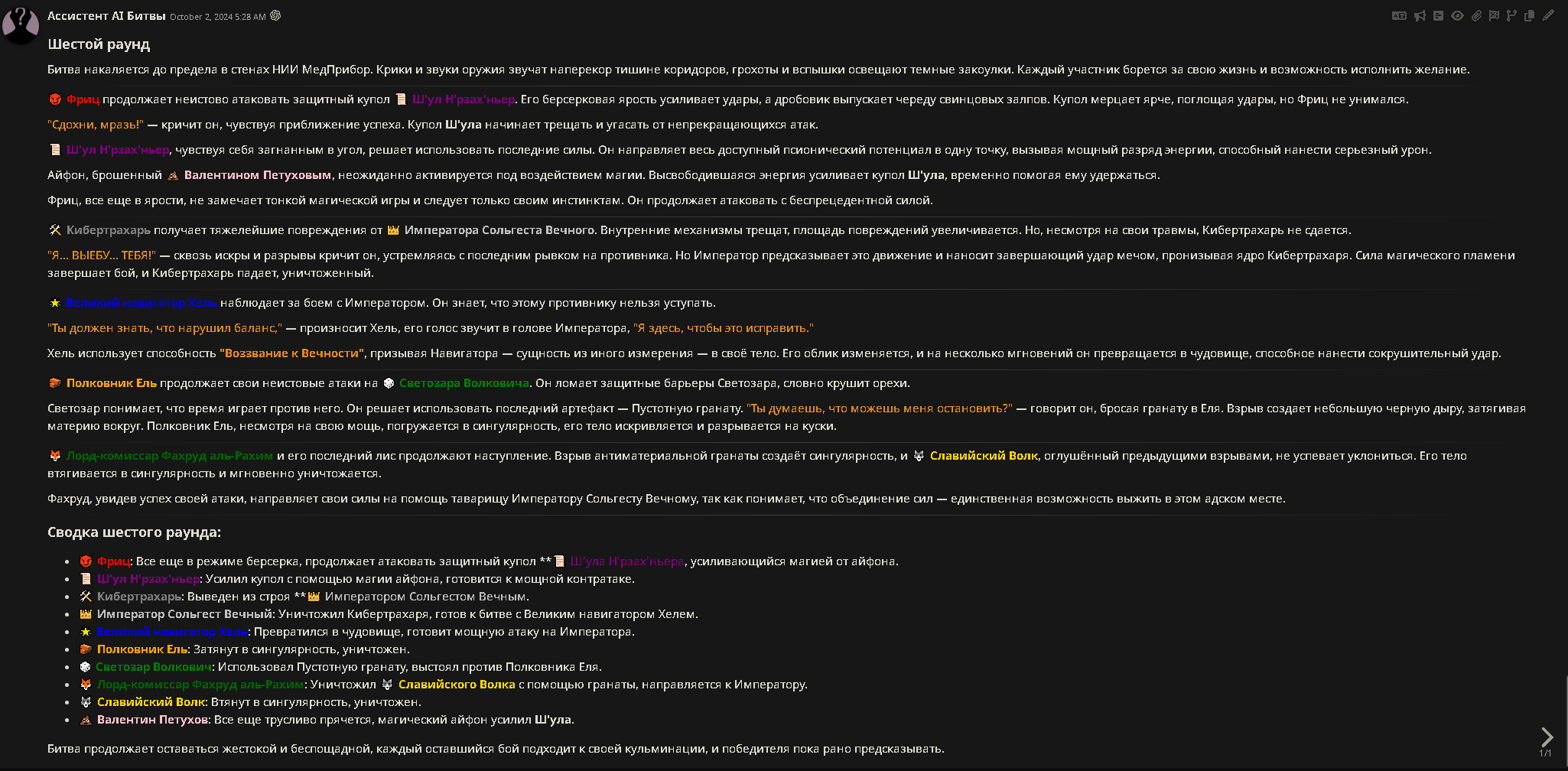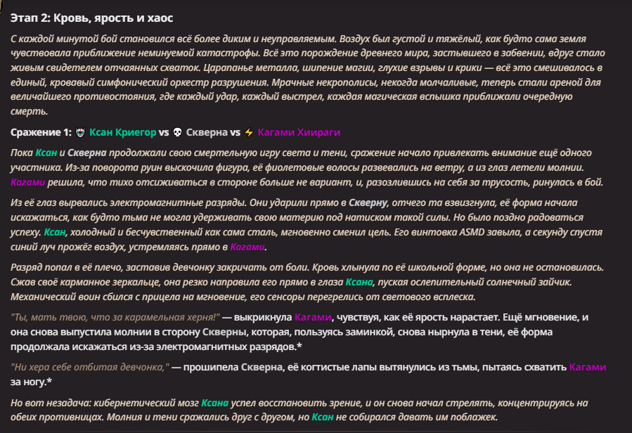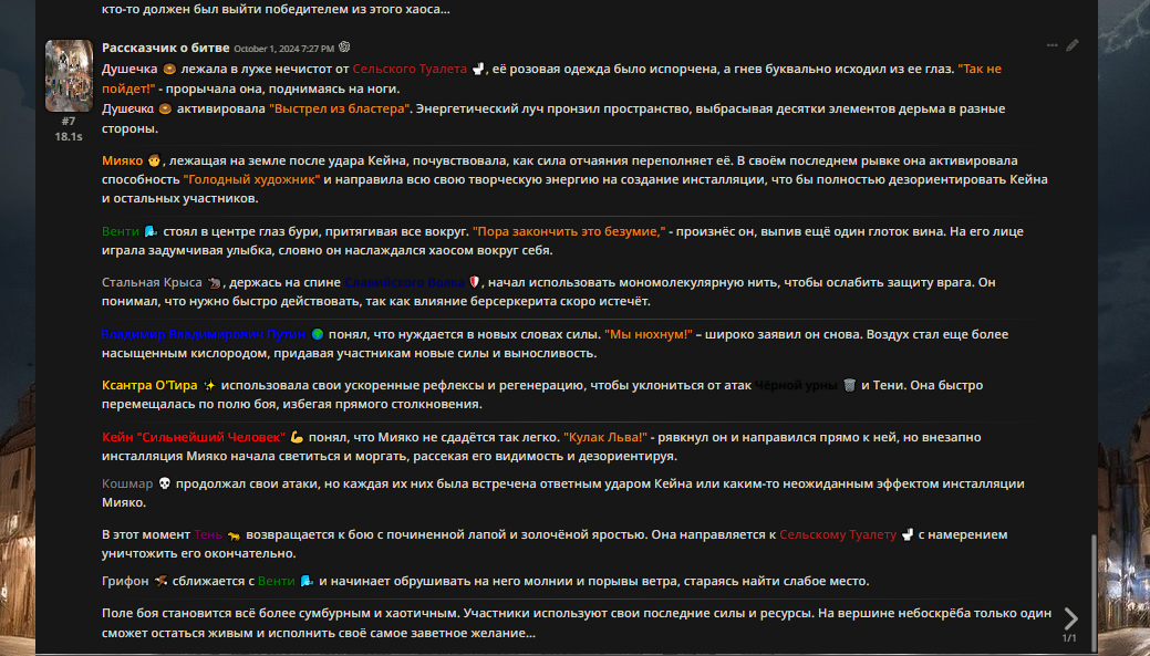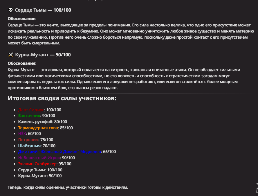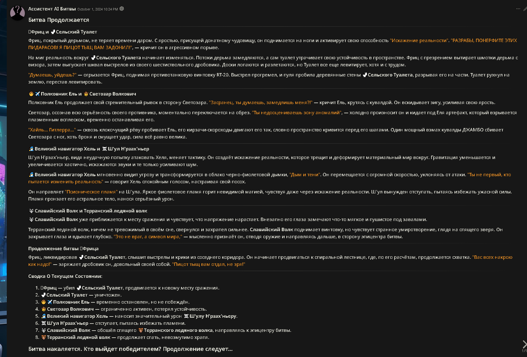 АИ БИТВЫ Игровой тред №2. В этих битвах может участвовать любой персонаж из любой вселенной, даже нашей(и даже из вашей головы)! Вам только нужно предложить их. Так же можете предложить место проведения боя которое выберется случайным образом.