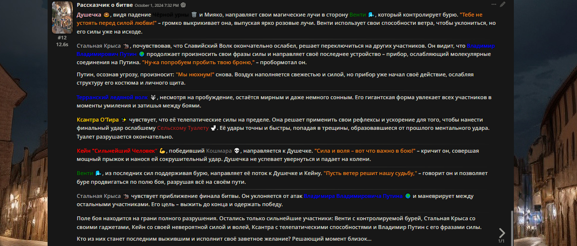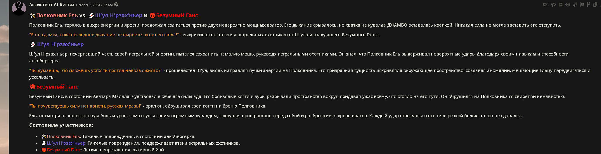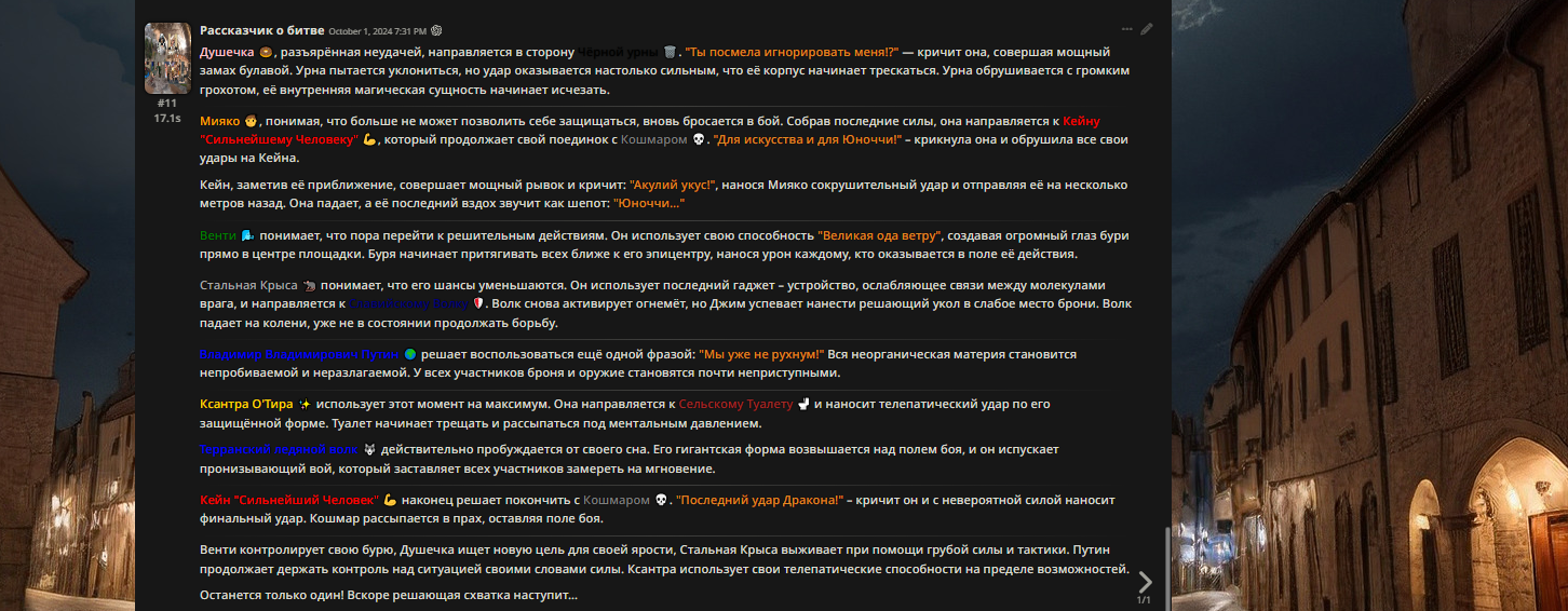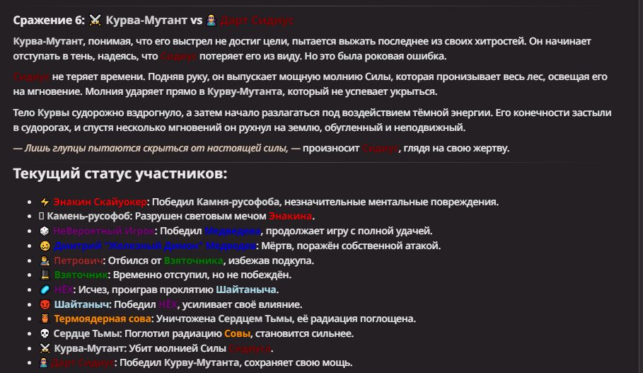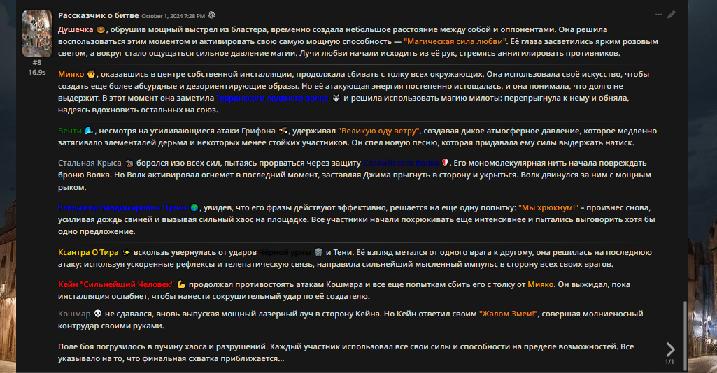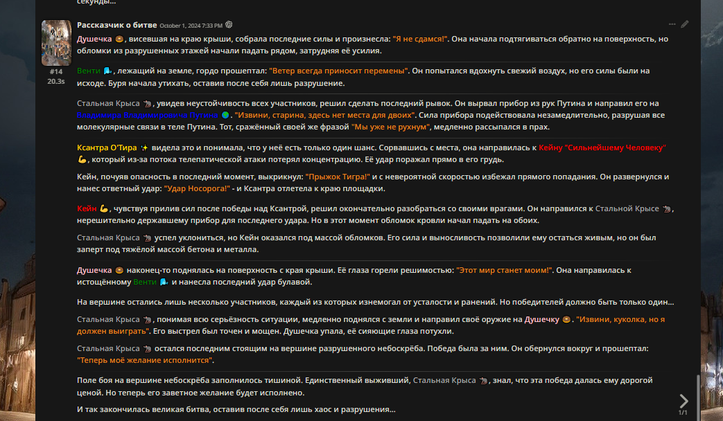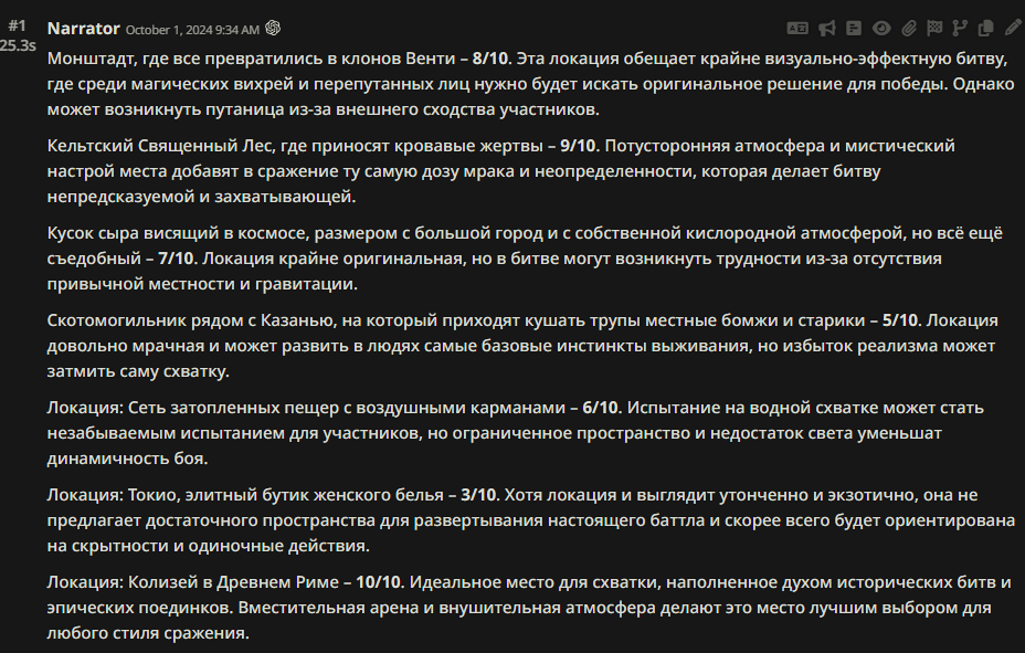 АИ БИТВЫ Игровой тред №2. В этих битвах может участвовать любой персонаж из любой вселенной, даже нашей(и даже из вашей головы)! Вам только нужно предложить их. Так же можете предложить место проведения боя которое выберется случайным образом.