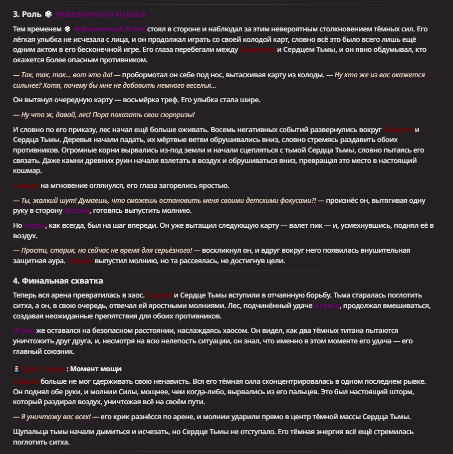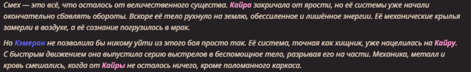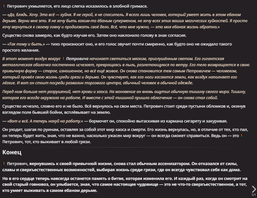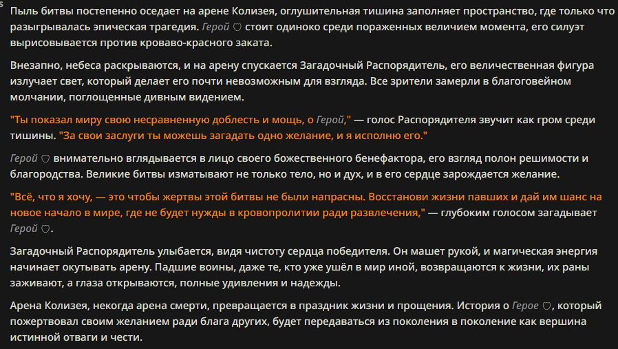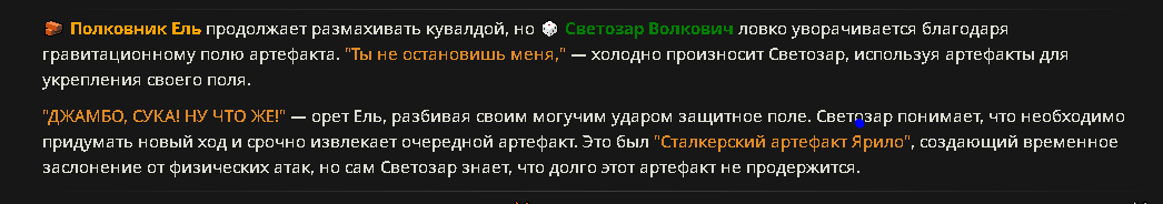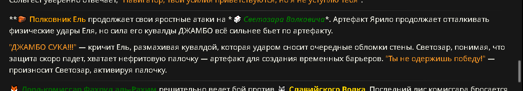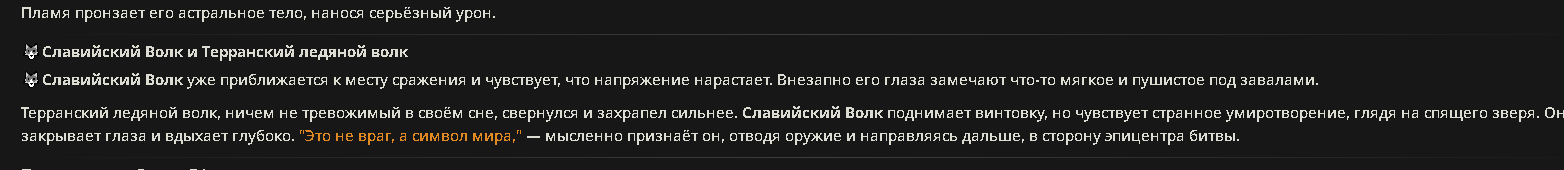 >>1545167 Я Сольгеста и не вбрасываю - он слишком графоманская Мэри Сью, но при этом концовка в том бою оказалась настолько безумная и поехавшая, что вышло даже хорошо. У меня там другие волчары есть, кого можно в бой вбросить. Они и более балансные, и более простые в своей сути.