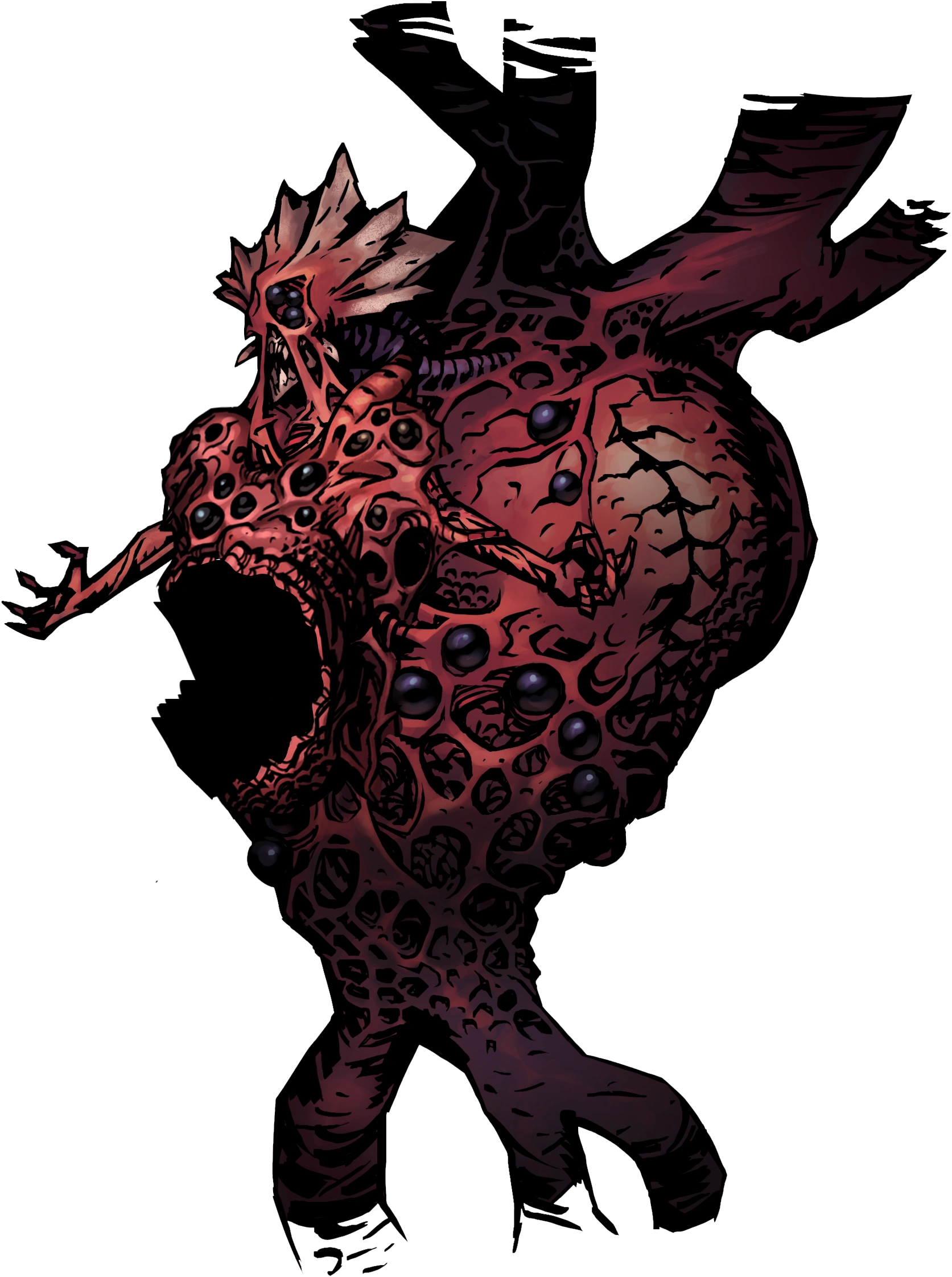 >>1544550 Сердце тьмы (Видеоигра Darkest dungeon) "Узрите же сердце мира! Прародитель жизни, отец и мать, альфа и Омега! Наш создатель... и наша Погибель." - Предок. Дремлющее, эфирное и вездесущее божество, запертое в ядре планеты. Простое понимание природы этого допотопного зла может превратить человека в сущность подобную этому чудовищу. Даже от призрачного присутствия этого спящего божества искажается и уродуется не только жизнь, но и сама материя пространства, обрастая уродливой плотью подобной существу. Способности: Приди к своему создателю - мгновенно убивает ЛЮБОЕ живое существо. Искажение материи - способно целеноправленно изменить существо, живое или не живое, превращая его в гротескную массу плоти, подчиненную своему создателю. Искажение времени и пространства - влияние сердца тьмы также затрагивает само время. Безумие - от одного его присутствия человек может сойти с ума.