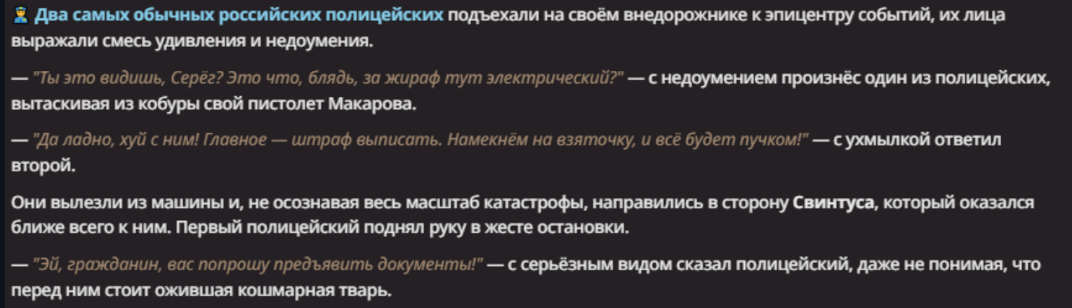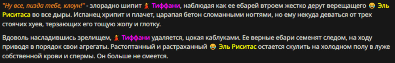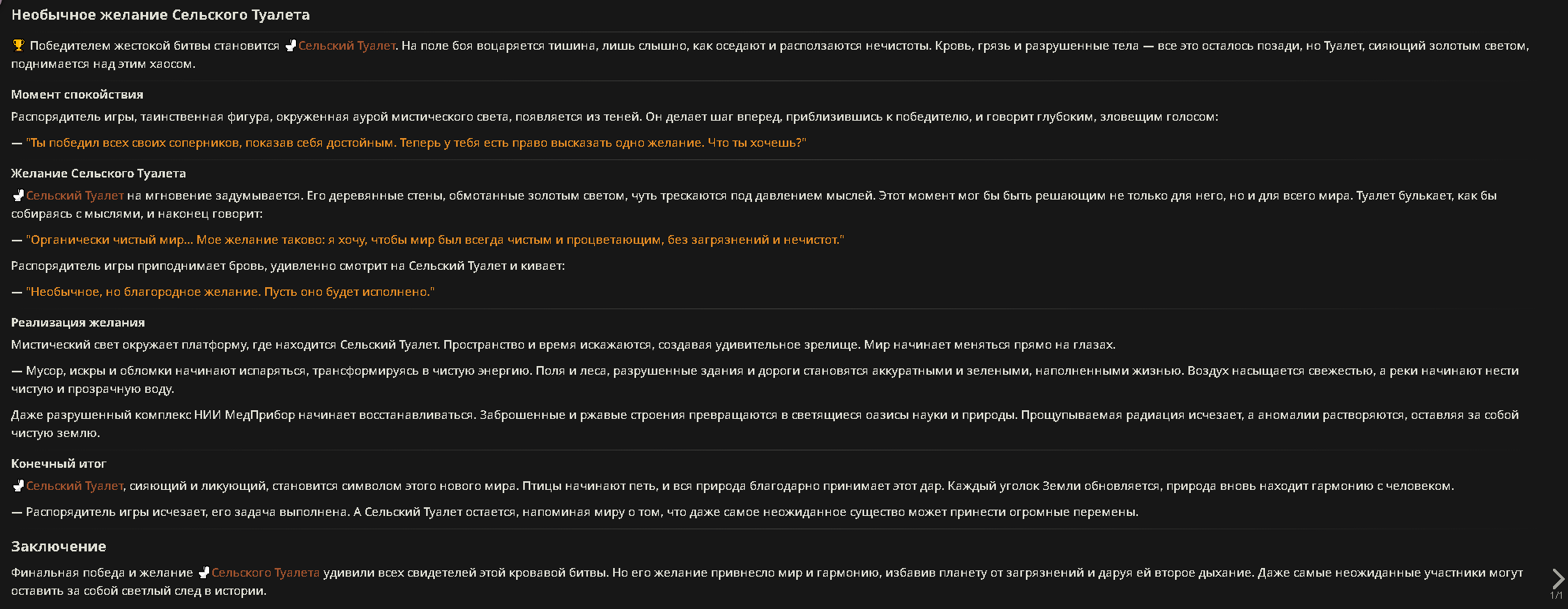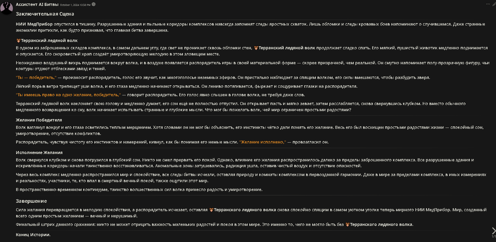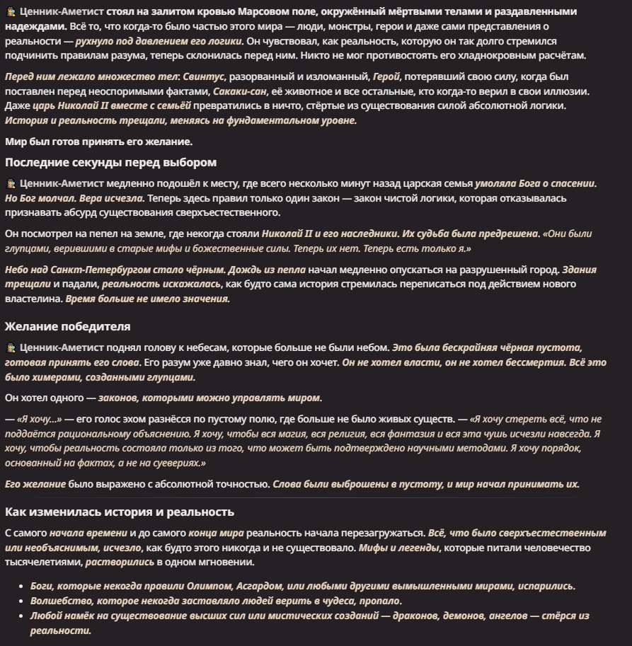 >>1545275 Анимудевку - потому что должен остаться один поебдитель, видимо. Царскую семью - и правда не знаю, лол. Нейронка записала их в участники? >>1545276 Организаторы не появились напрямую (а то бы и их развеял, с него станется). Только некая чернота в небе, в которую он орал