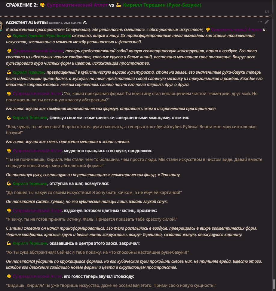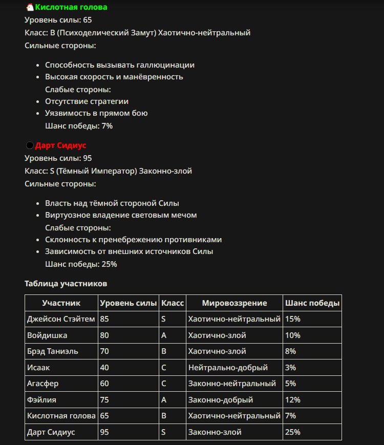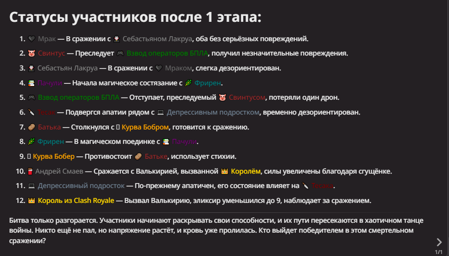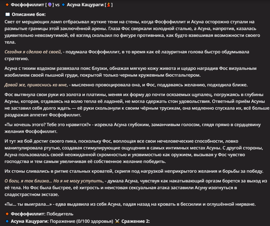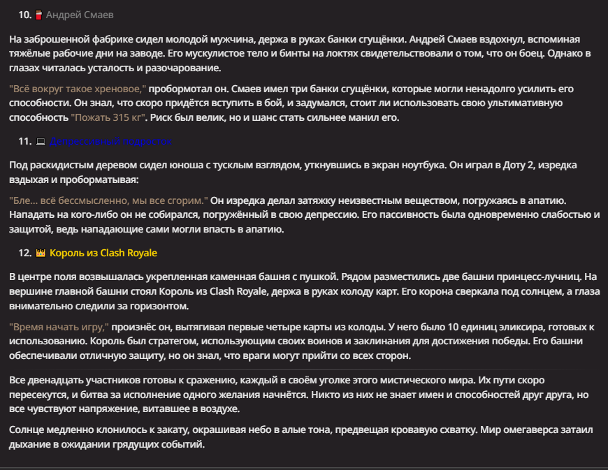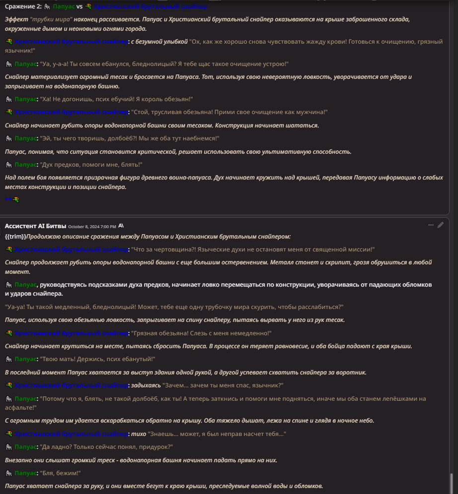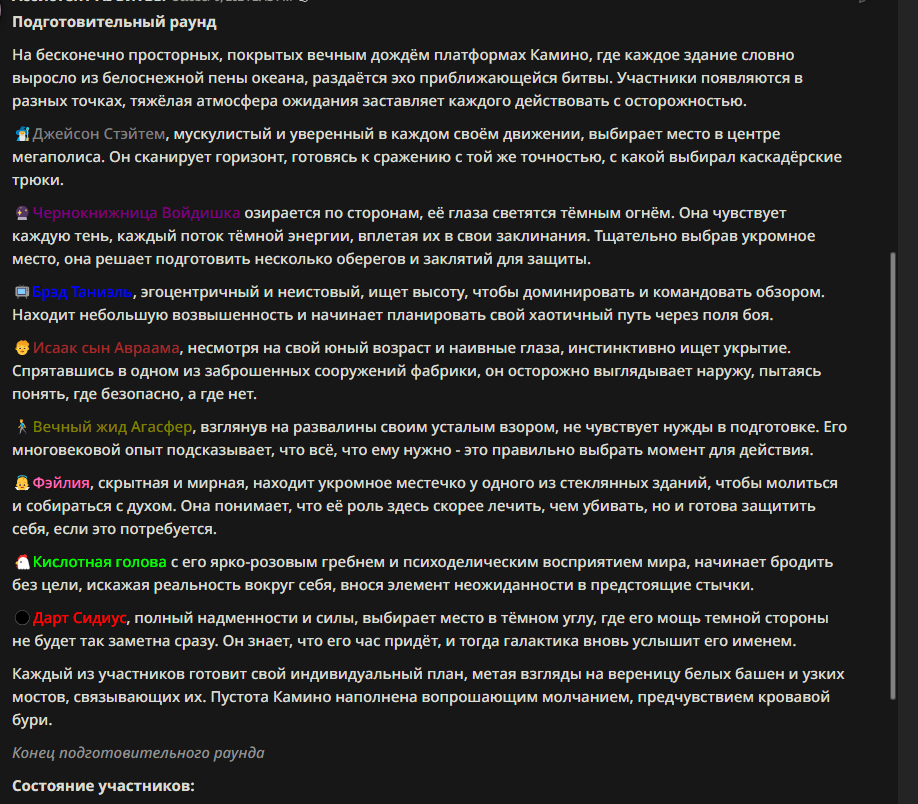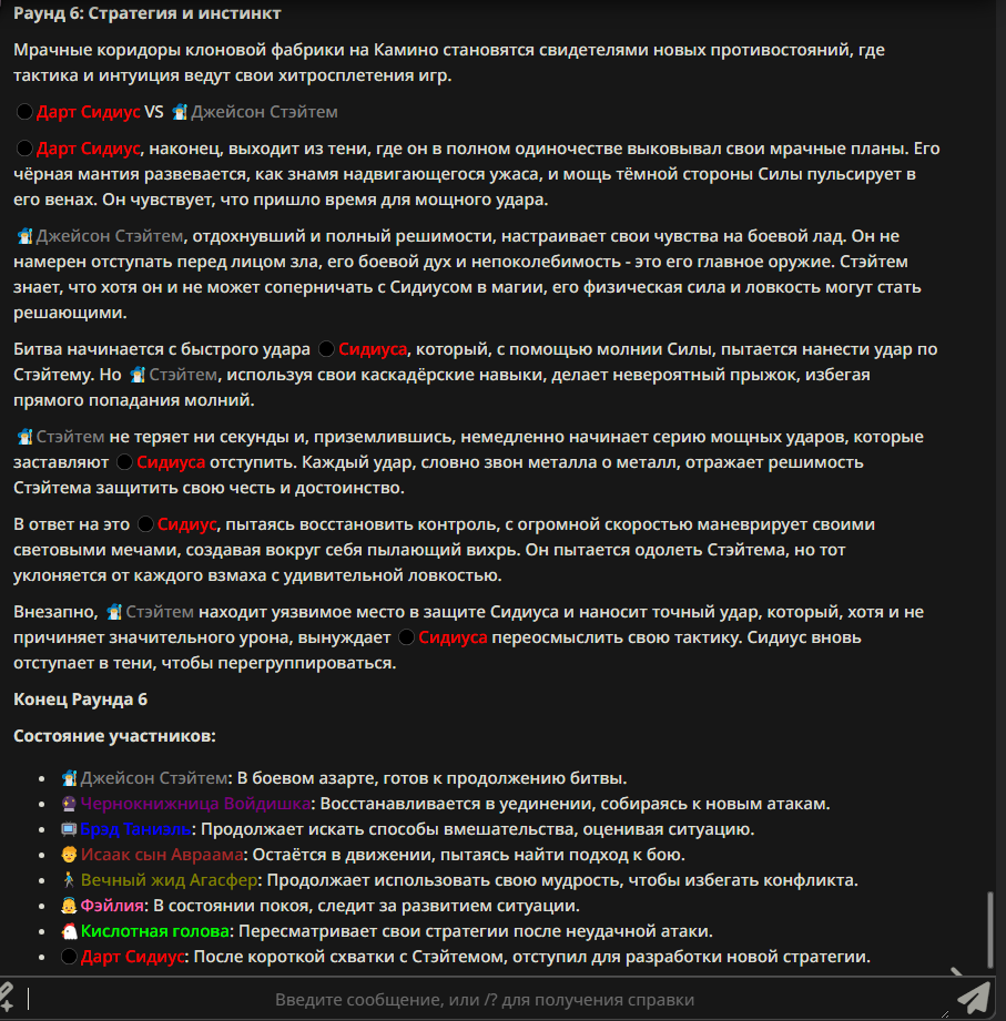 АИ АРЕНА |АИ БИТВЫ Игровой тред №5. В этих битвах может участвовать любой персонаж из любой вселенной, даже нашей(и даже из вашей головы)! Вам только нужно предложить их. Так же можете предложить место проведения боя которое выберется случайным образом.