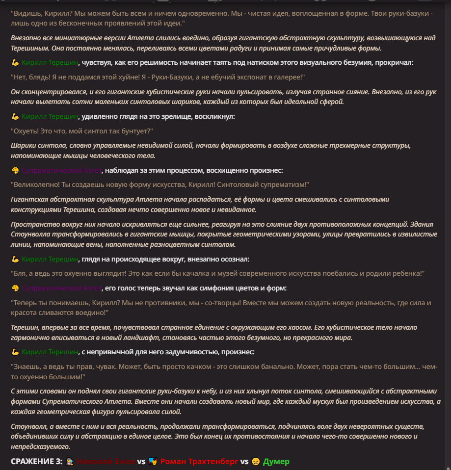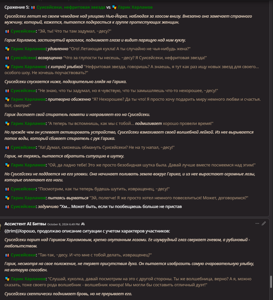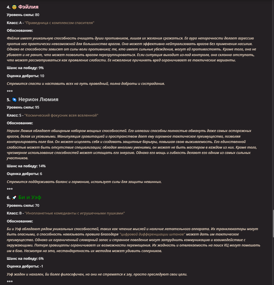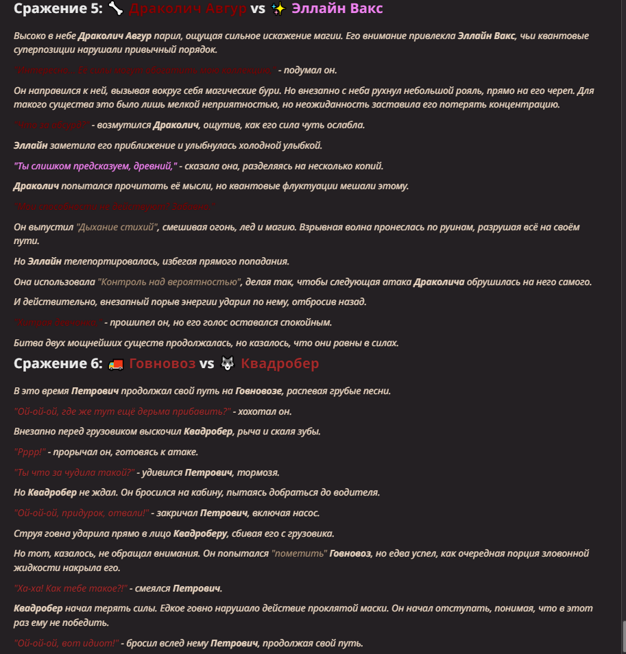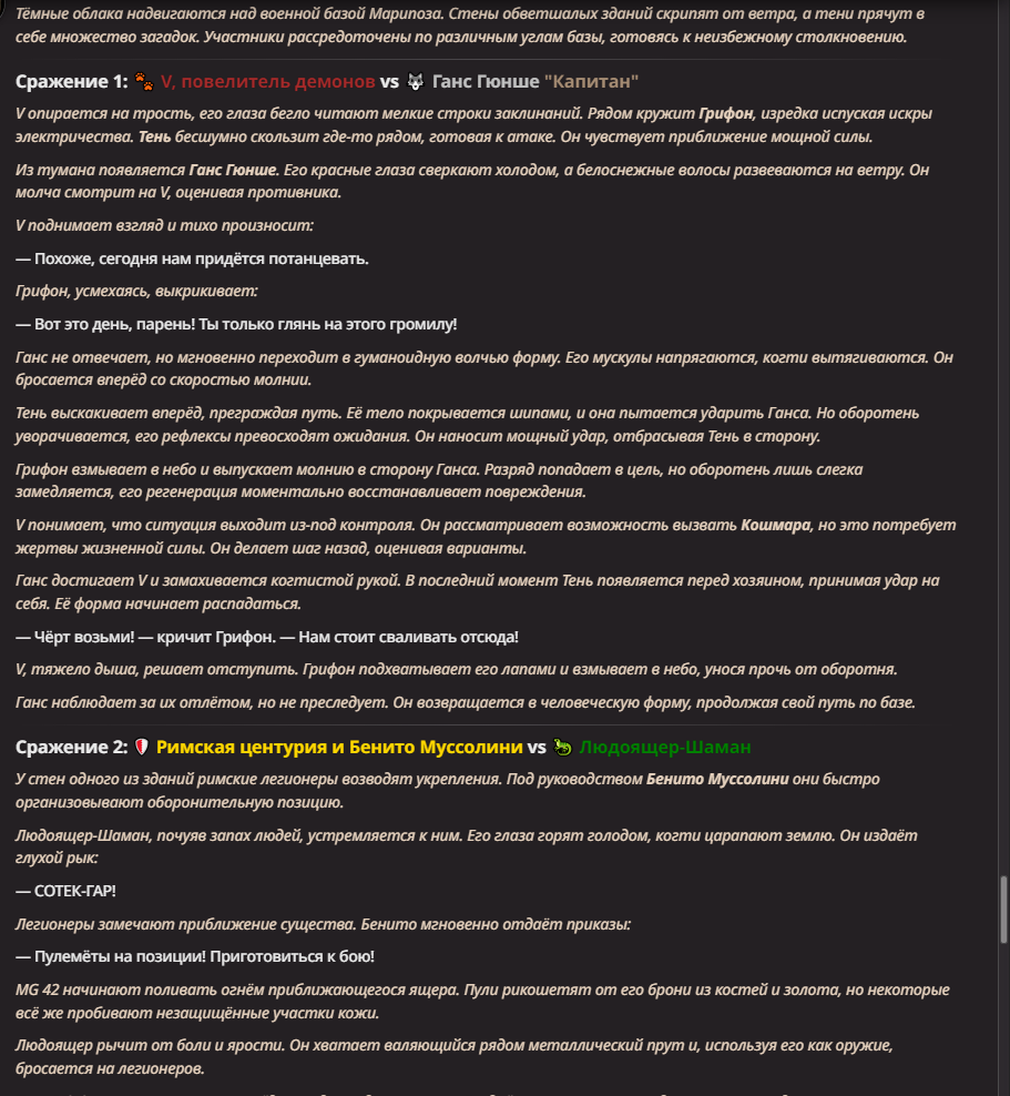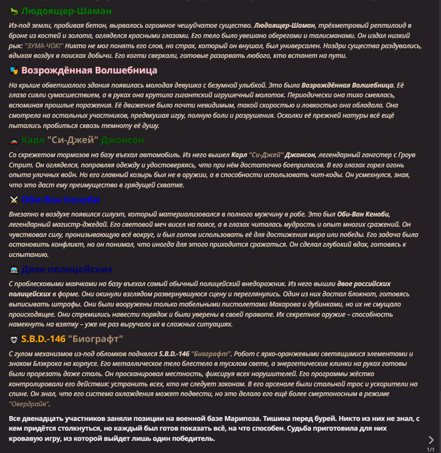 АИ АРЕНА |АИ БИТВЫ Игровой тред №5. В этих битвах может участвовать любой персонаж из любой вселенной, даже нашей(и даже из вашей головы)! Вам только нужно предложить их. Так же можете предложить место проведения боя которое выберется случайным образом.