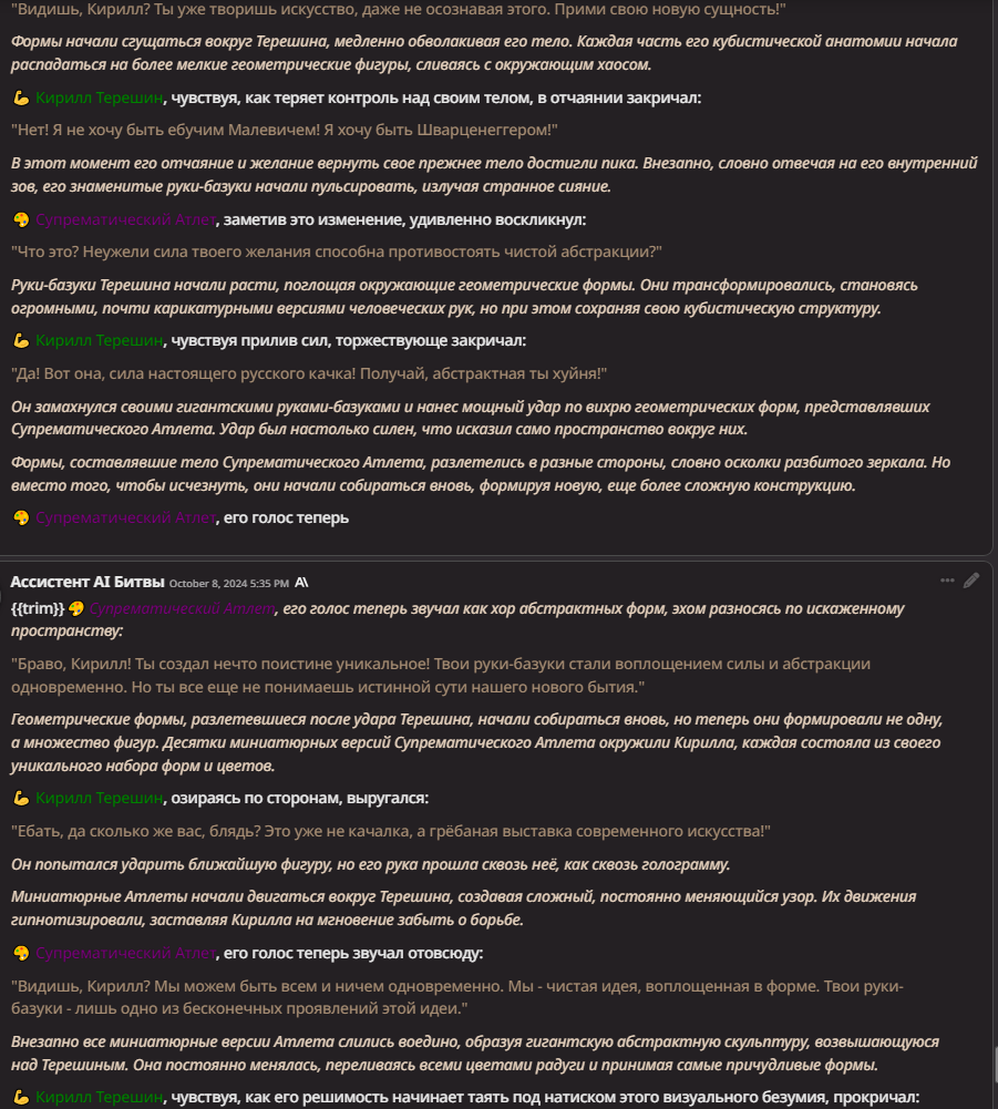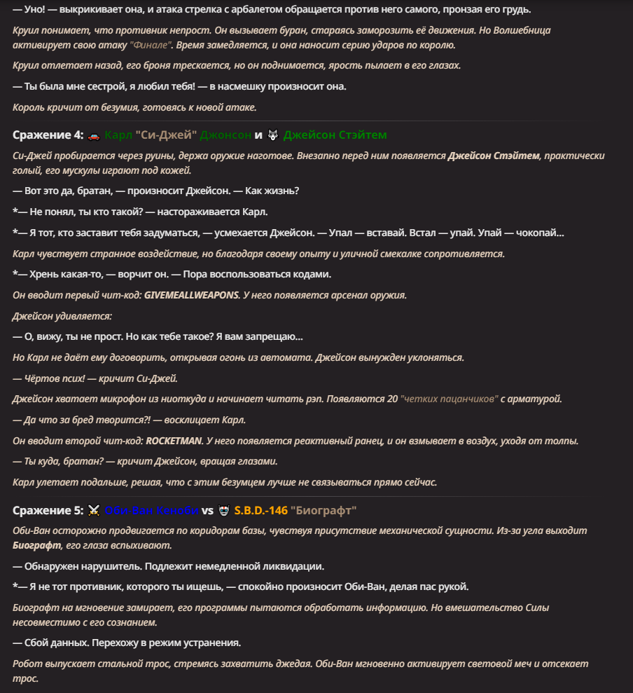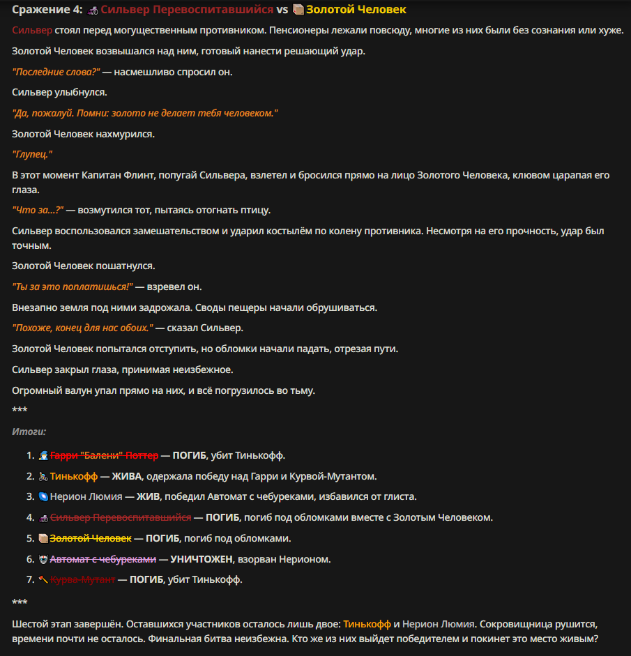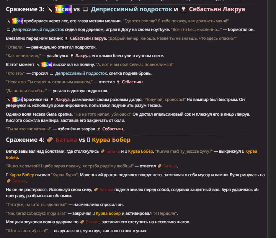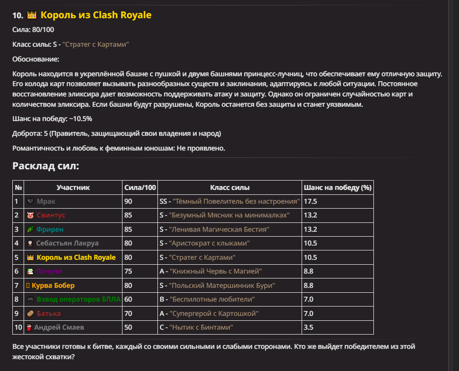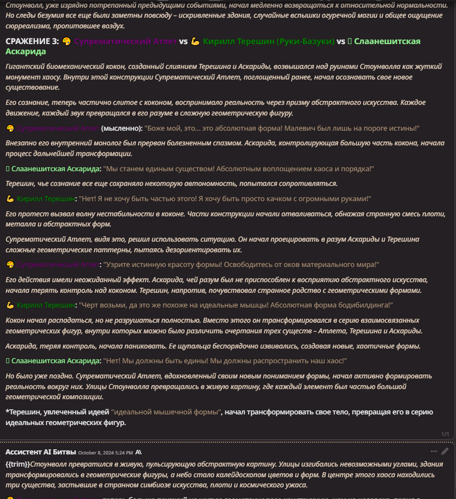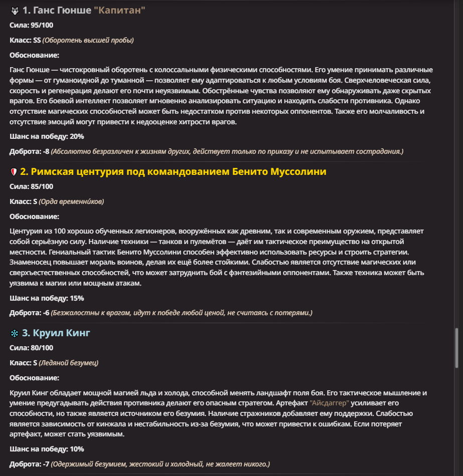 АИ АРЕНА |АИ БИТВЫ Игровой тред №5. В этих битвах может участвовать любой персонаж из любой вселенной, даже нашей(и даже из вашей головы)! Вам только нужно предложить их. Так же можете предложить место проведения боя которое выберется случайным образом.