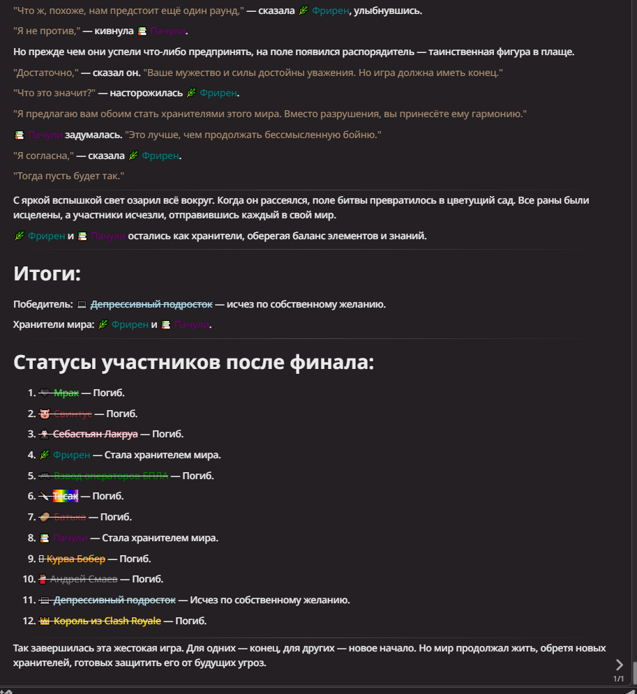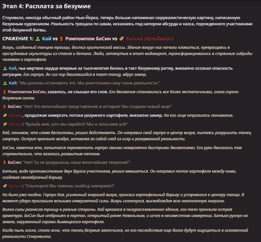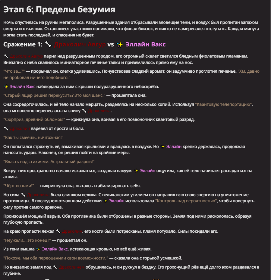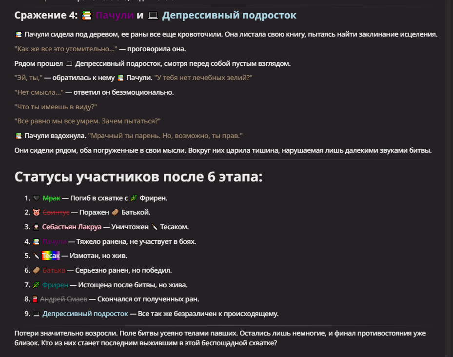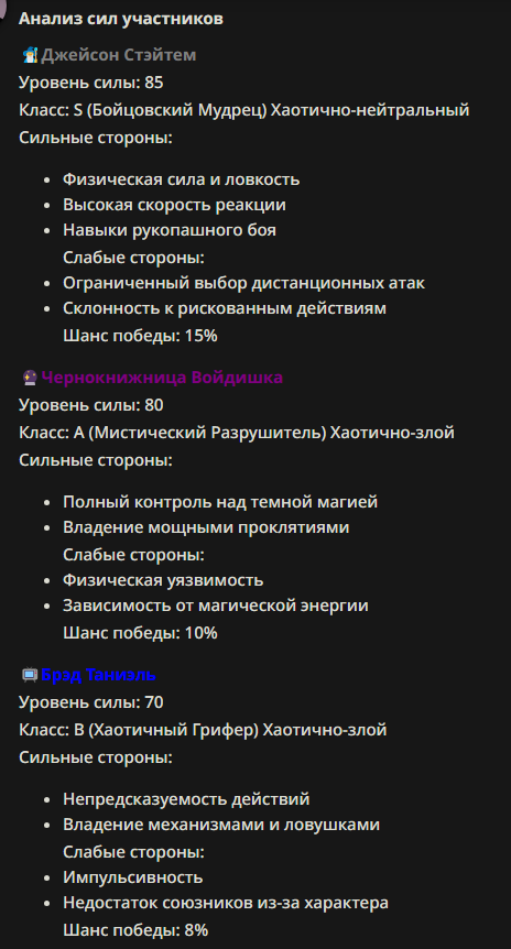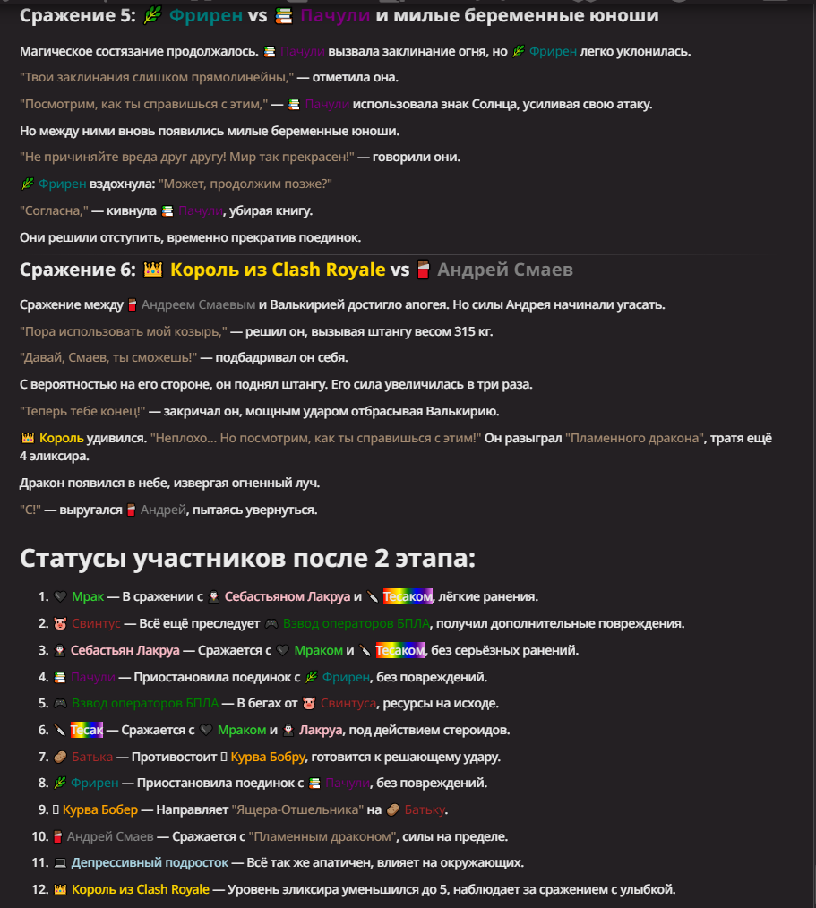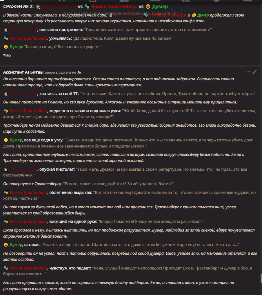 АИ АРЕНА |АИ БИТВЫ Игровой тред №5. В этих битвах может участвовать любой персонаж из любой вселенной, даже нашей(и даже из вашей головы)! Вам только нужно предложить их. Так же можете предложить место проведения боя которое выберется случайным образом.