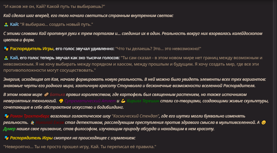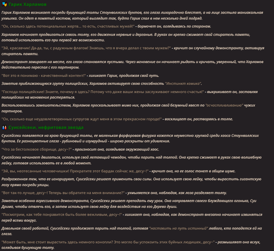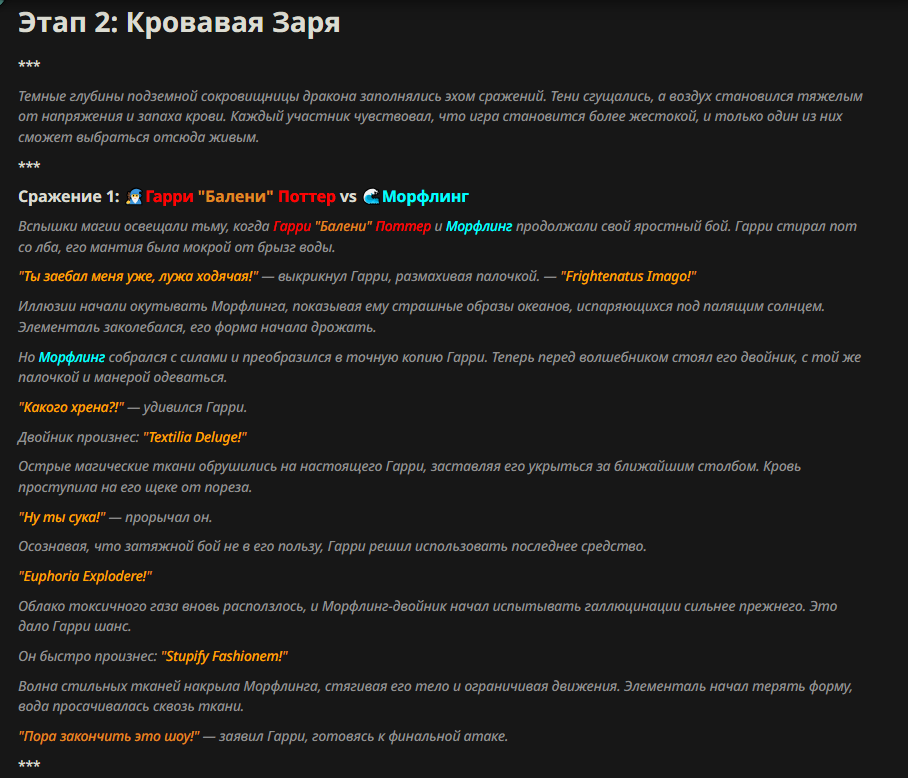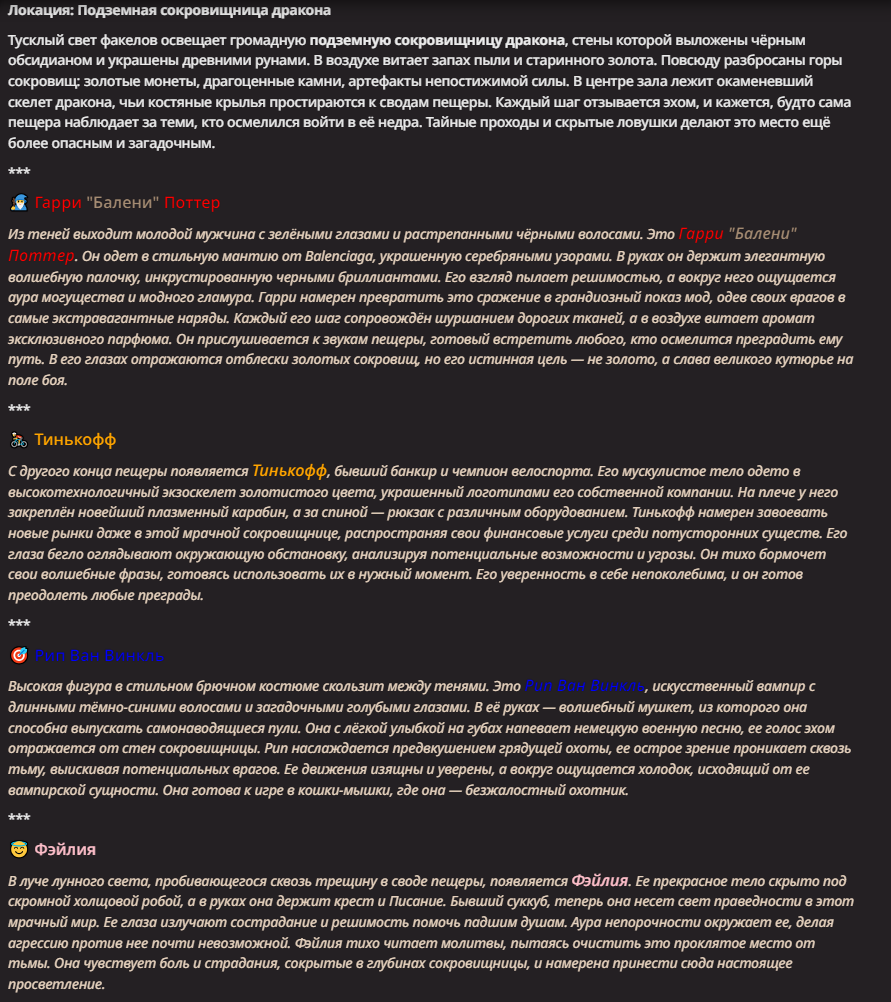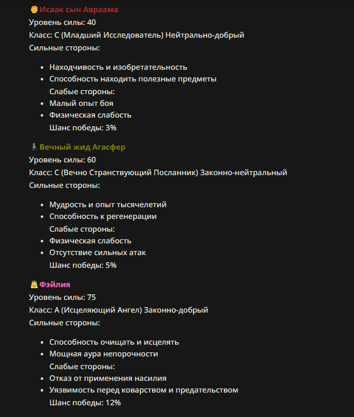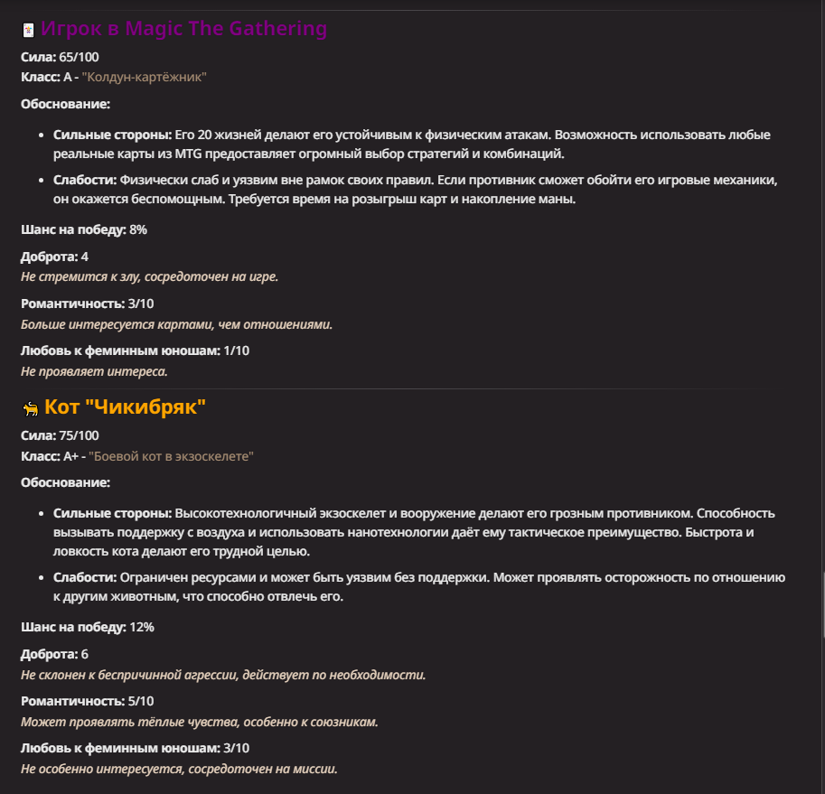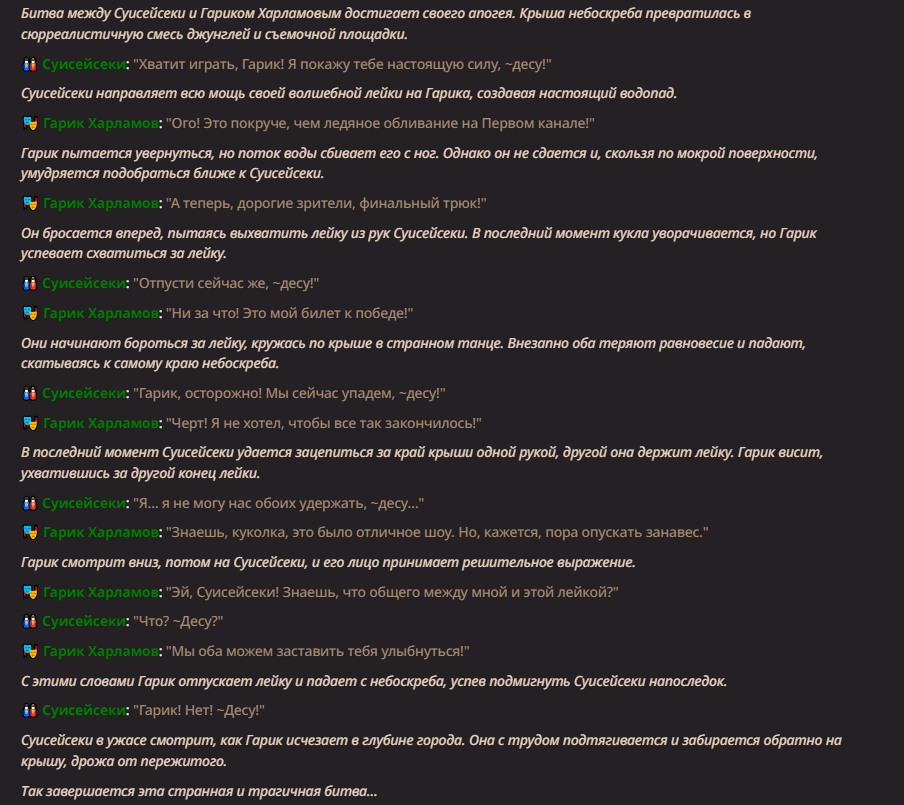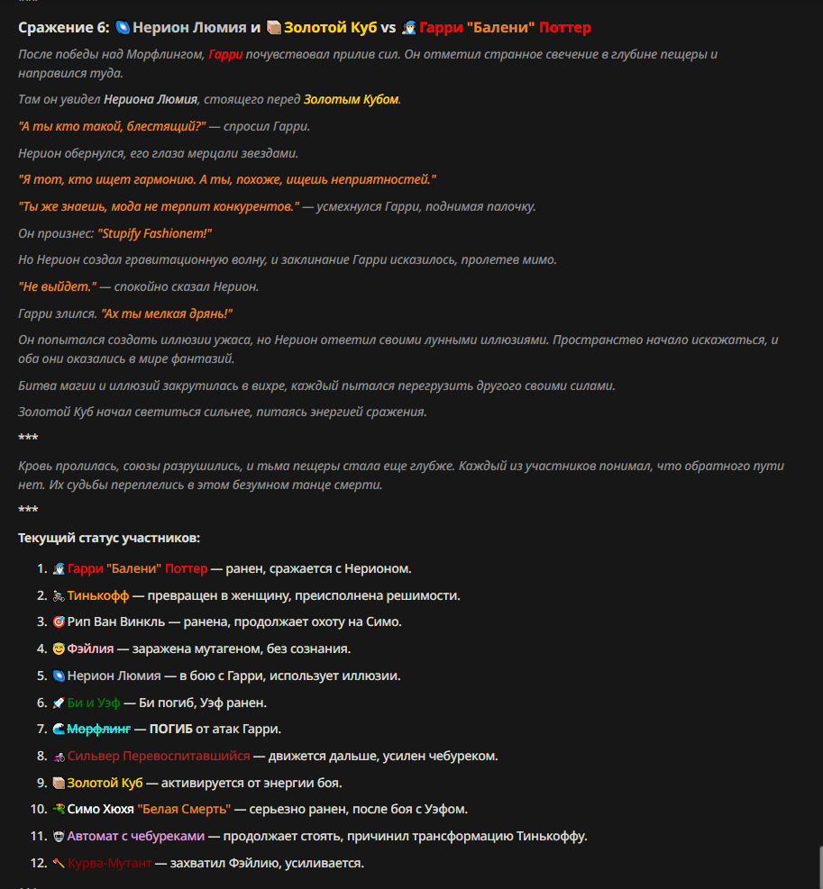 Вчера выигрывал кстати, но мне его разрушительная концовка не понравилось, поэтому я чутка подробнее на этот раз его личность описал, чтобы он другое желание загадывал при победе, чтобы он ёбнул всех магов и мистических тварей, оставив при этом простых людей в покое
