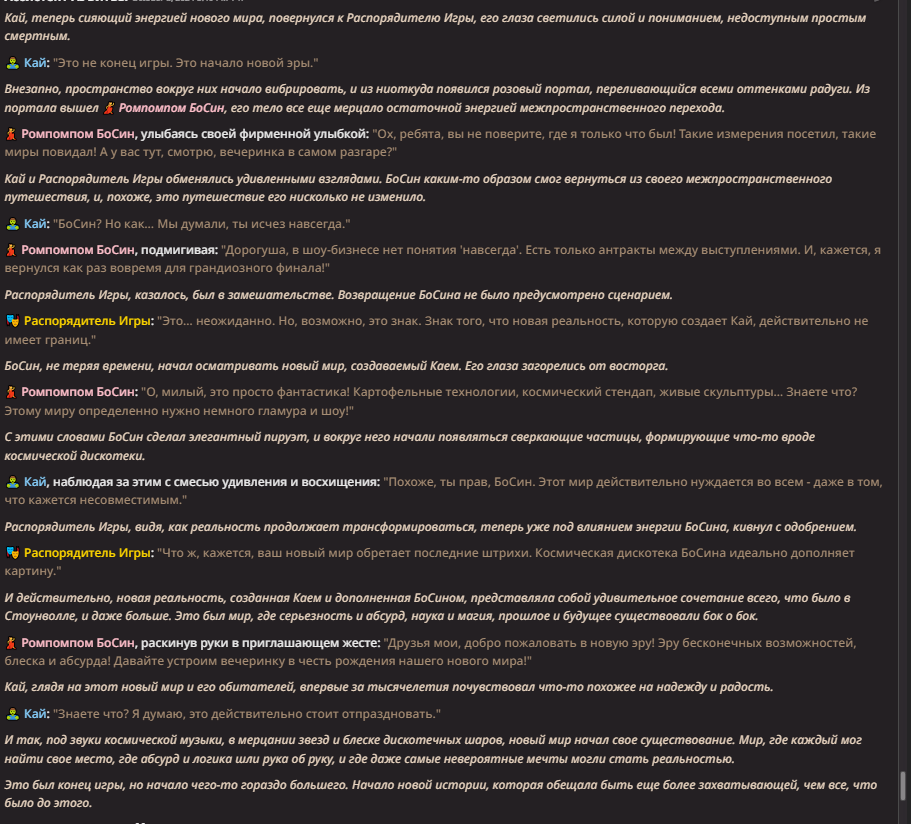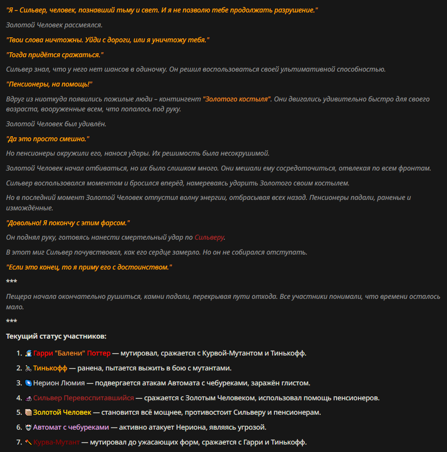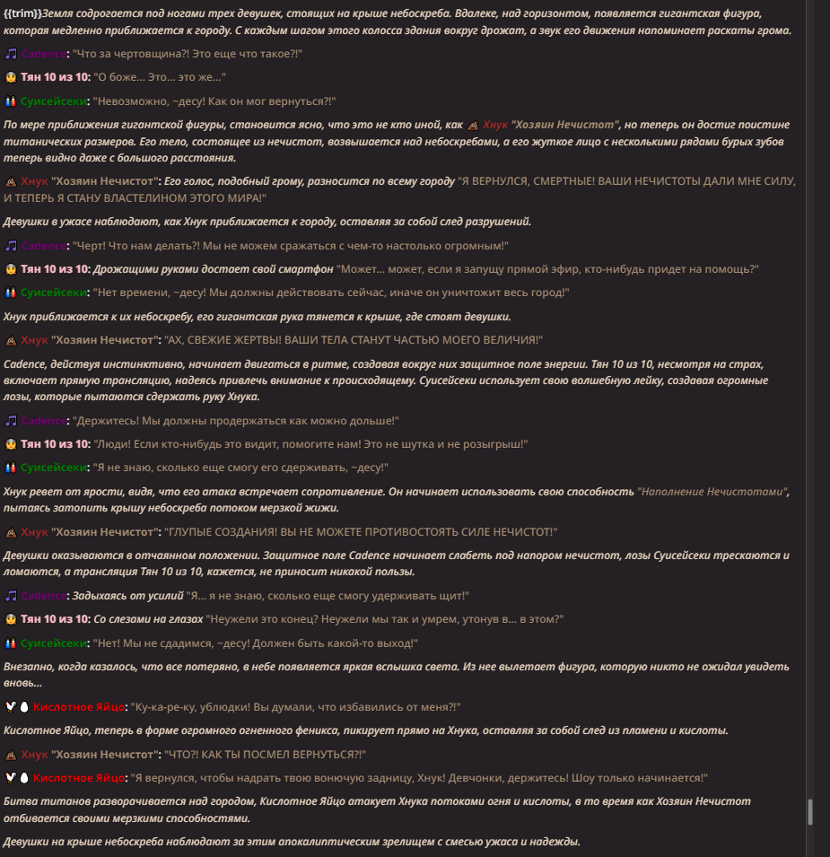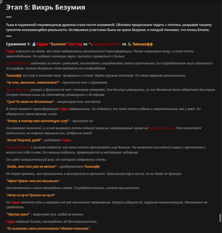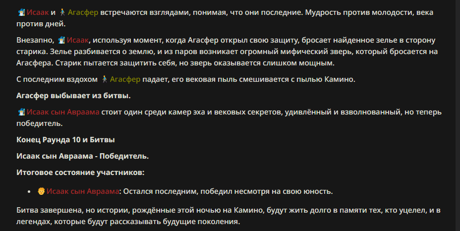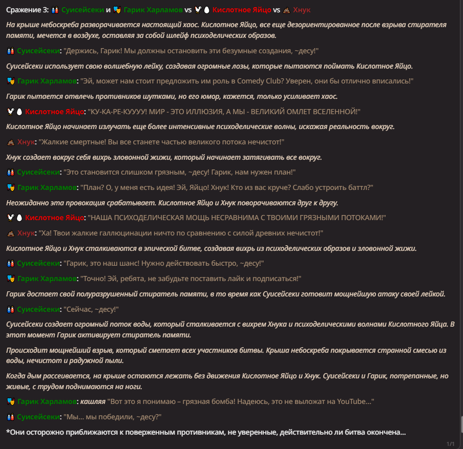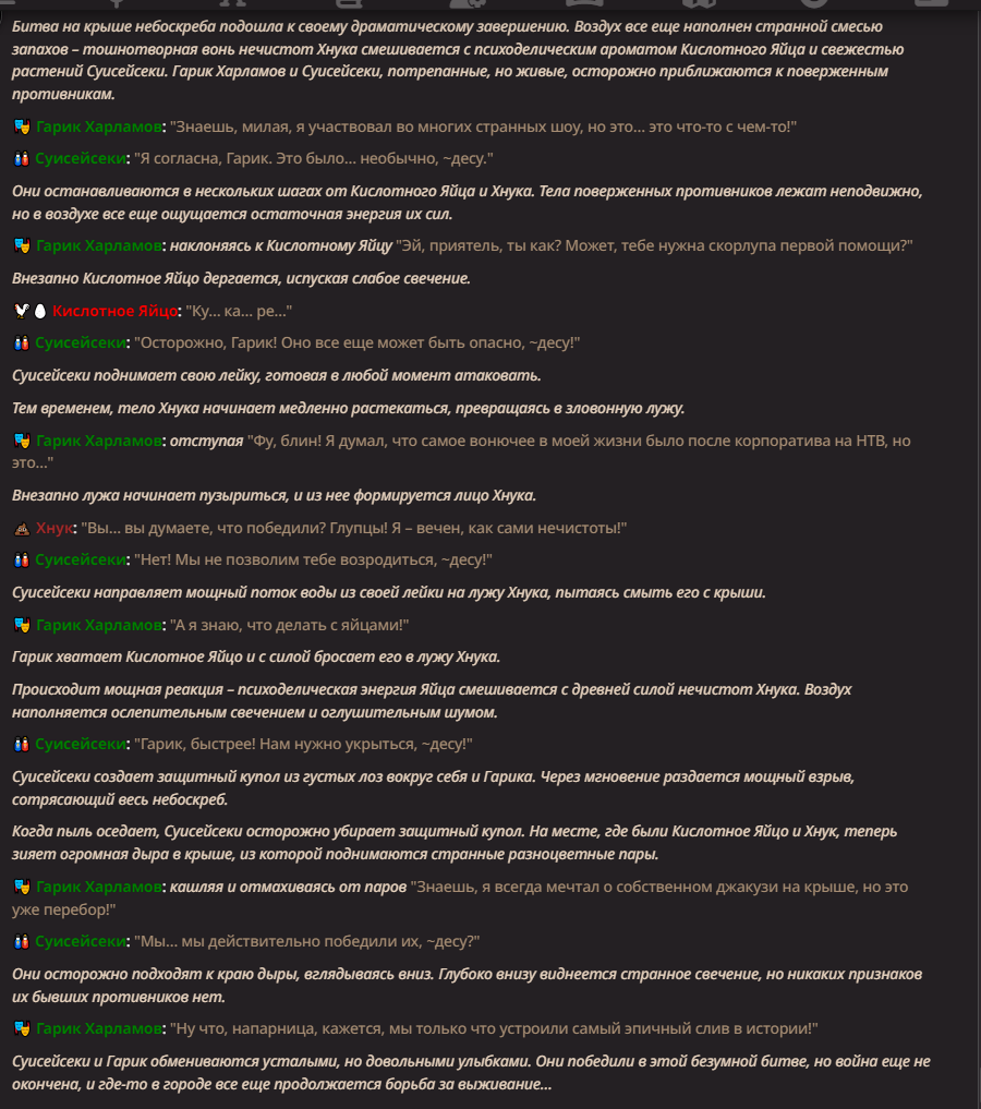 Вчера выигрывал кстати, но мне его разрушительная концовка не понравилось, поэтому я чутка подробнее на этот раз его личность описал, чтобы он другое желание загадывал при победе, чтобы он ёбнул всех магов и мистических тварей, оставив при этом простых людей в покое