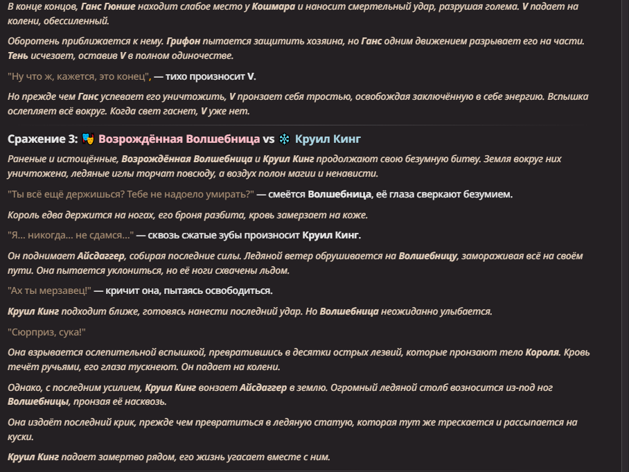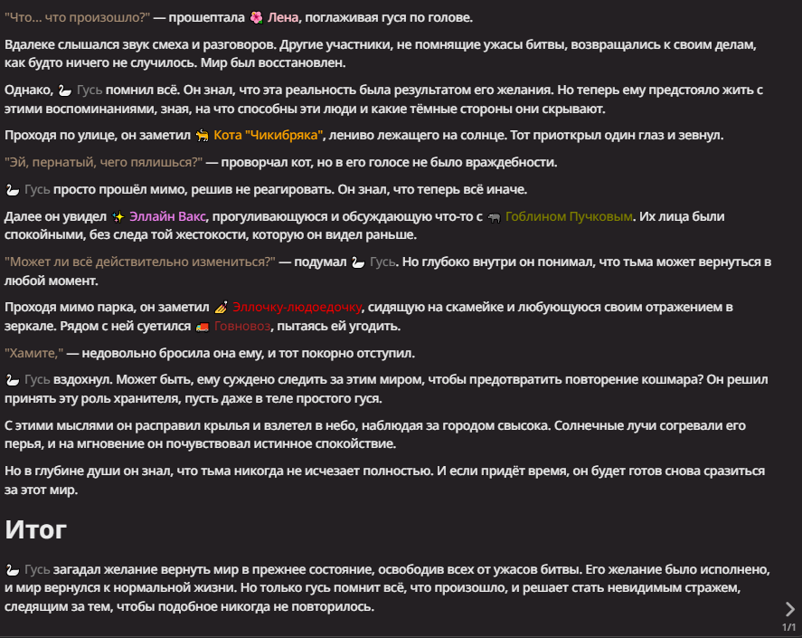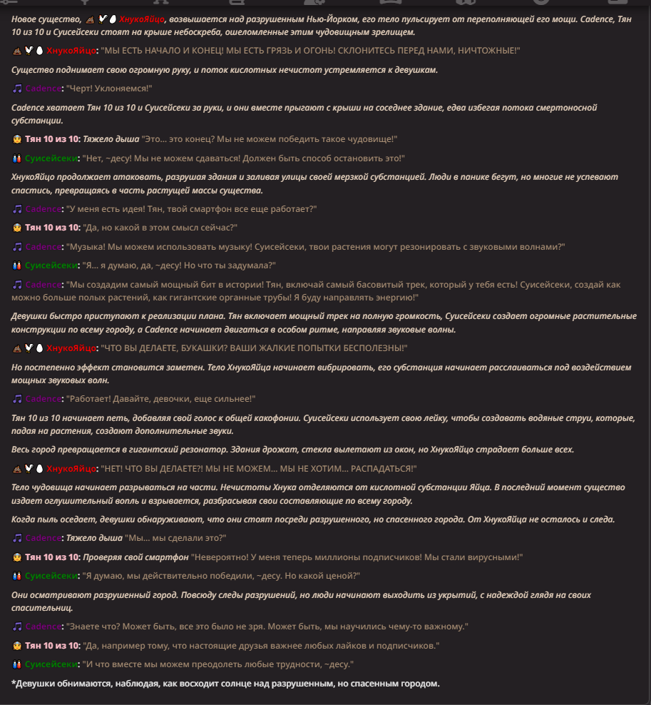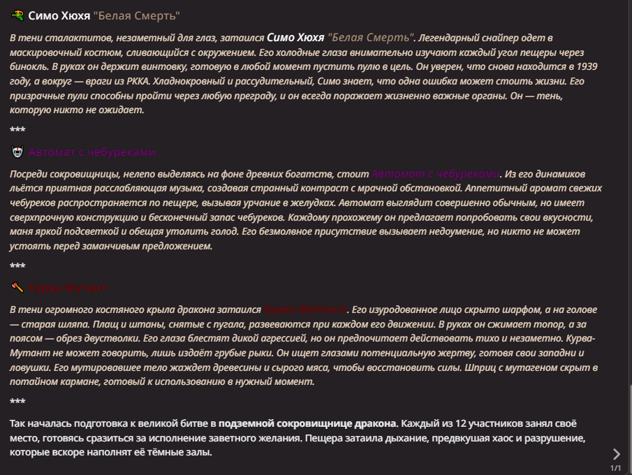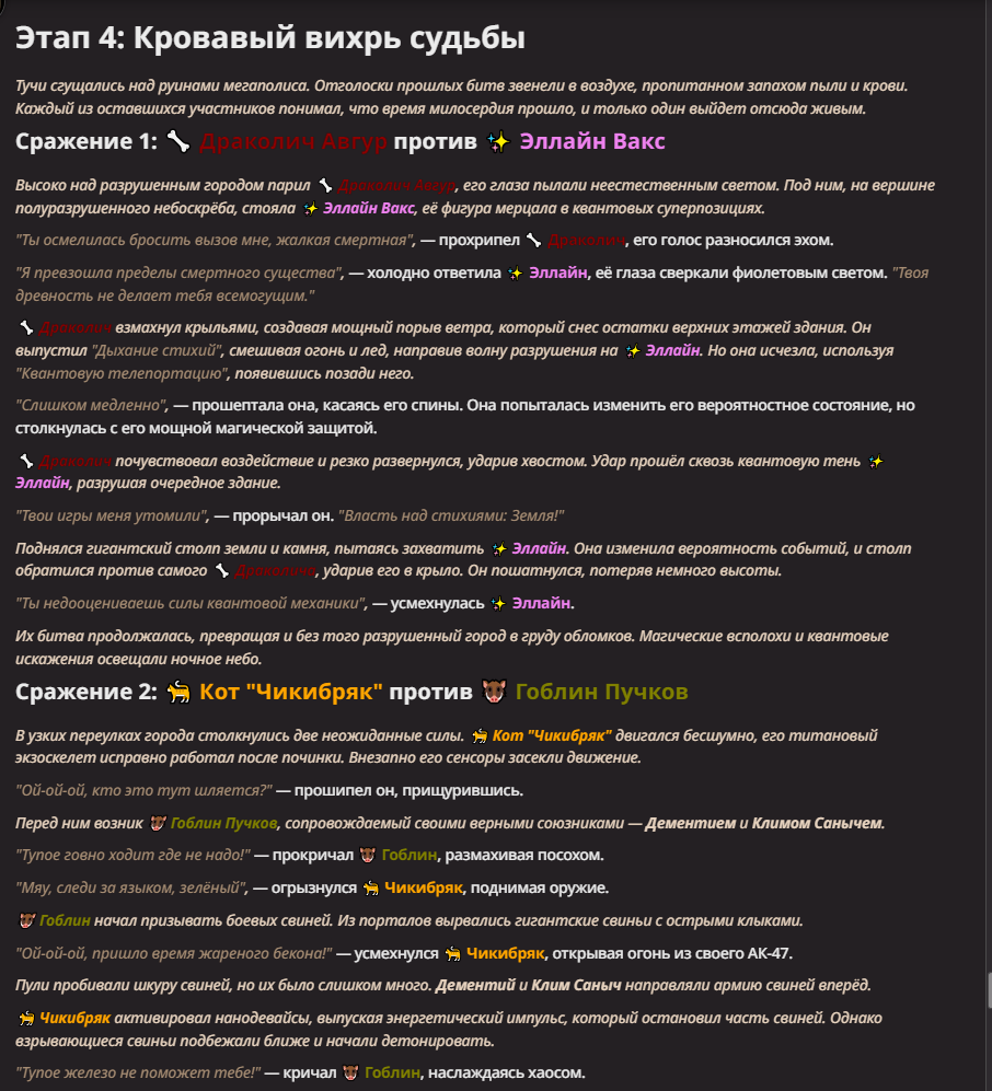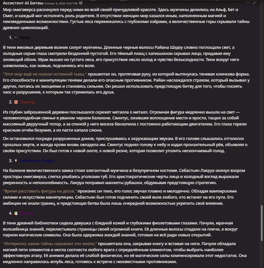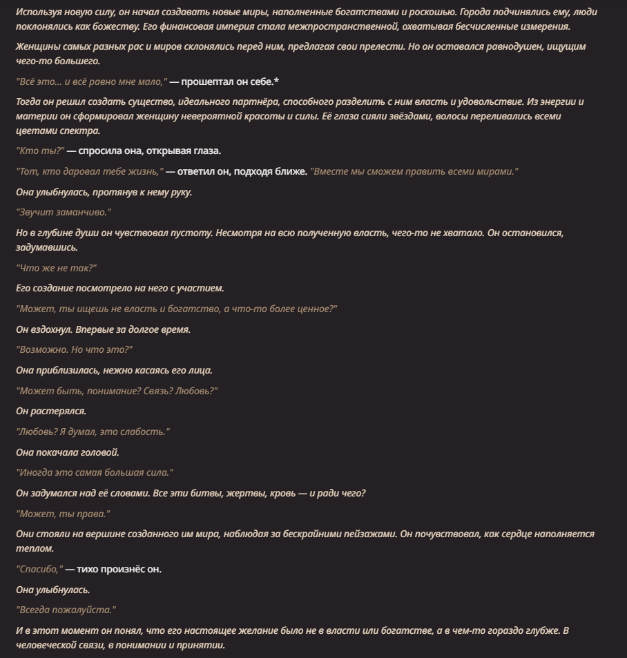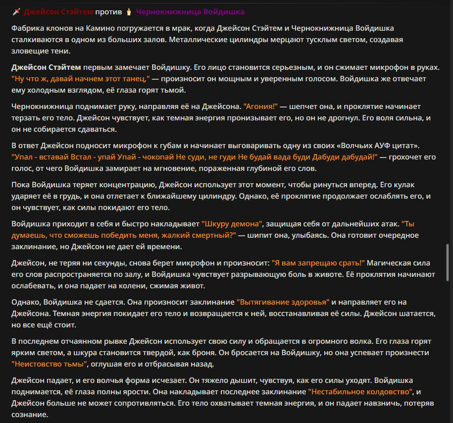 Вчера выигрывал кстати, но мне его разрушительная концовка не понравилось, поэтому я чутка подробнее на этот раз его личность описал, чтобы он другое желание загадывал при победе, чтобы он ёбнул всех магов и мистических тварей, оставив при этом простых людей в покое
