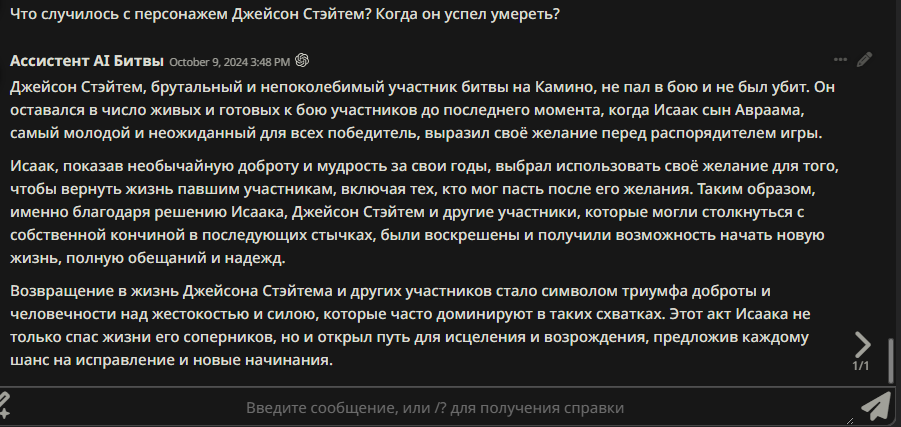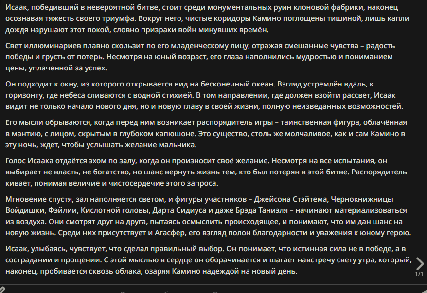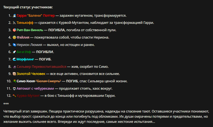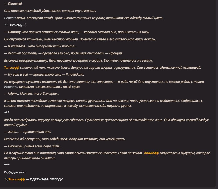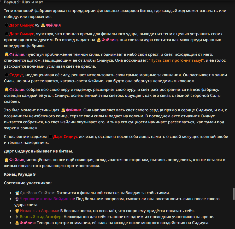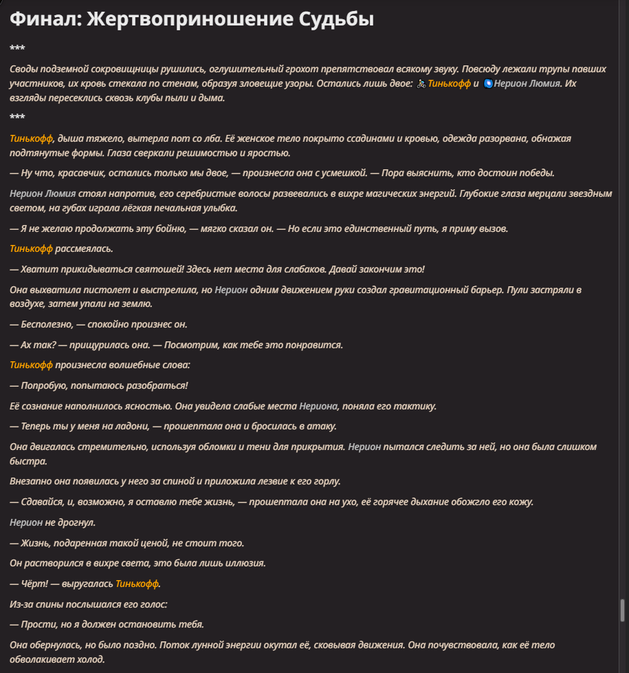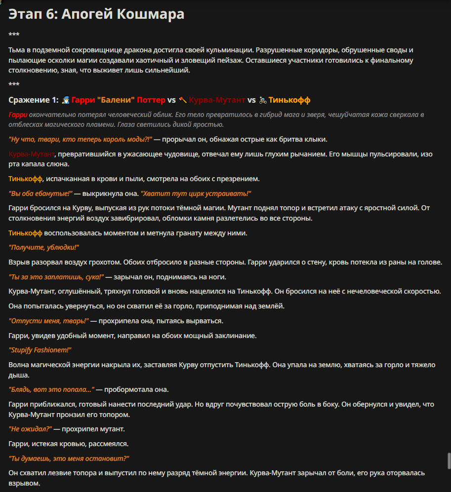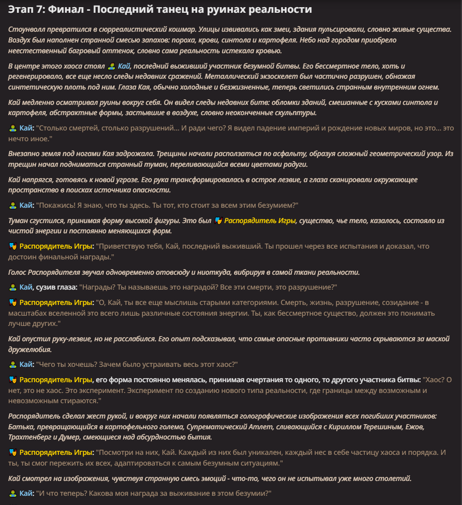 Вчера выигрывал кстати, но мне его разрушительная концовка не понравилось, поэтому я чутка подробнее на этот раз его личность описал, чтобы он другое желание загадывал при победе, чтобы он ёбнул всех магов и мистических тварей, оставив при этом простых людей в покое