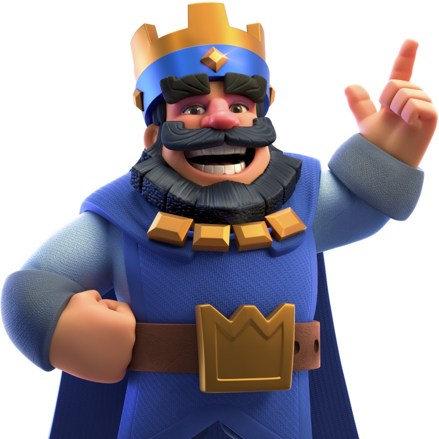 У Короля из Clash Royale есть Колода Карт, которую он разыгрывает за Эликсир. В начале игры он берет 4 случайные карты из колоды в свою руку. В начале игры у Короля из Clash Royale 10 эликсира, а каждый этап боя он восстанавливает по 3 эликсира. Каждый этап битвы Король из Clash Royale может разыграть одну или несколько карт из своей руки, тратя на них своей эликсир. Разыгрывая карту, он сразу же берет следующую из своей колоды. Колода и рука Короля из Clash Royale всегда случайны.