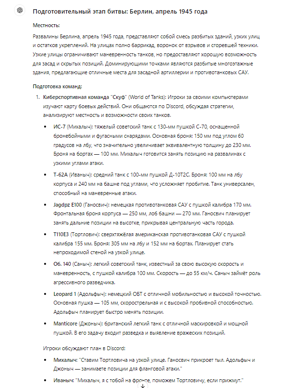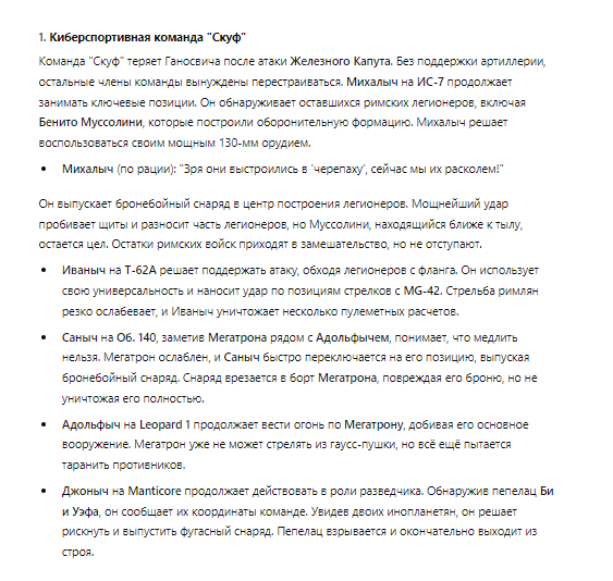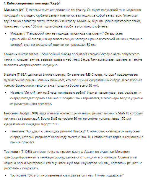 >>1549512 Лан, анонче, договорились, просто в правилах написано что можно 1-2 штуки вкидывать, ну вот я по две команды и кидал. Я без наезда если что, завтра вкачусь танкистами