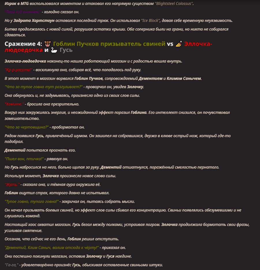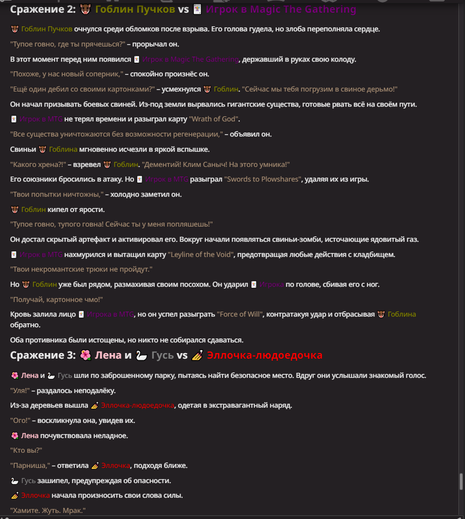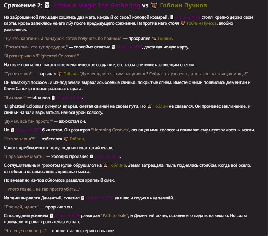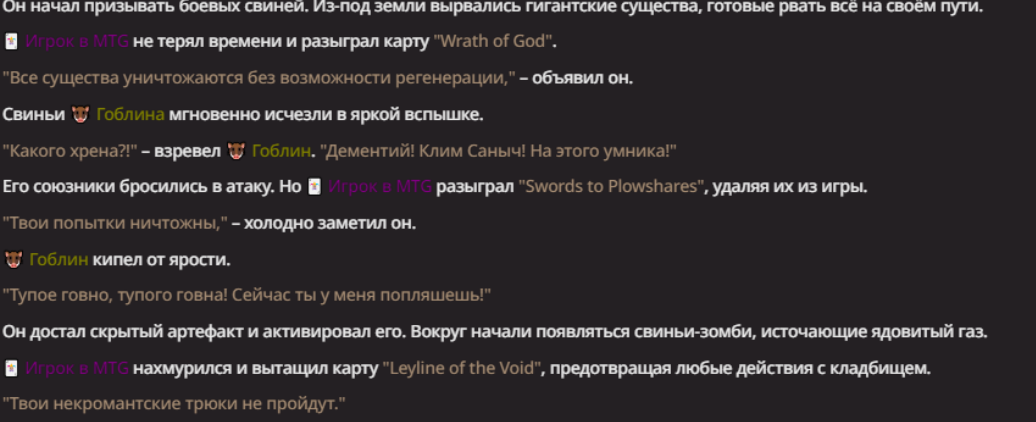 >>1549429 >>1549445 >>1549418 Бля, битва МТГ задрота против Хартстоуновского задрота самая ахуенная за все нейросетевые бои. При всем этом нахуй все адекватно работает по механике игры, карты, мать твою, правильно работают.