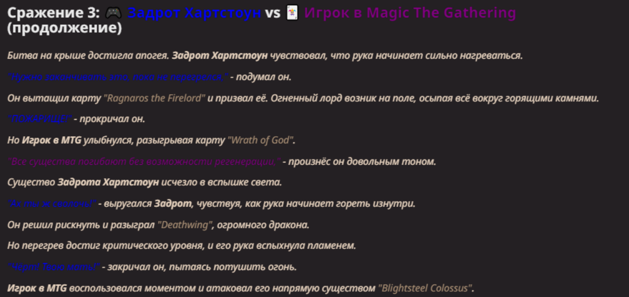 Тут это... лучший бой за всю историю арены случился. Охуеть, конечно, они >>1549319 →>>1549314 → использовали разные карты совершенно логично, все считалось на ура. Я в шоке вообще.