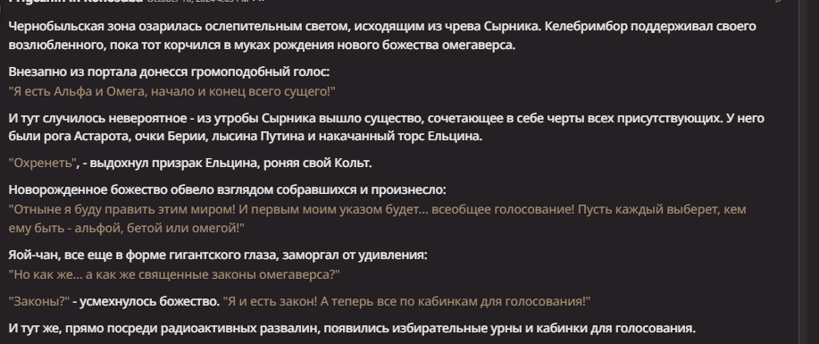 Архив вчерашнего треда - https://arhivach.xyz/thread/1079394/ Лена, Мизулина и Ассасин погибают в затопленном Восторге; Мастер Шин Фунь благородно отдаёт жизнь ради воскрешения остальных; Вечная Любовь Венти и Камелии на Клоде; Динамичное сражение в Москве by Игорь Иваныч.