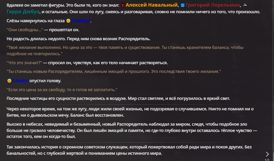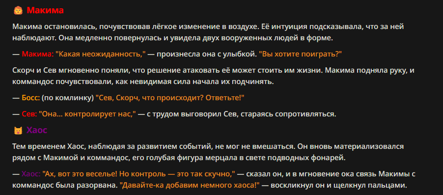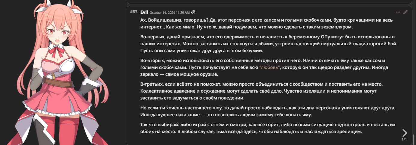 Ну я тоже так думаю. Лучше оставить это для кум-битв и прочих непотребств, где это выкручивается по-максимум. На ГПТ лучше все проводить более серьезно и форматно. Снаряды отдельно, порох отдельно.