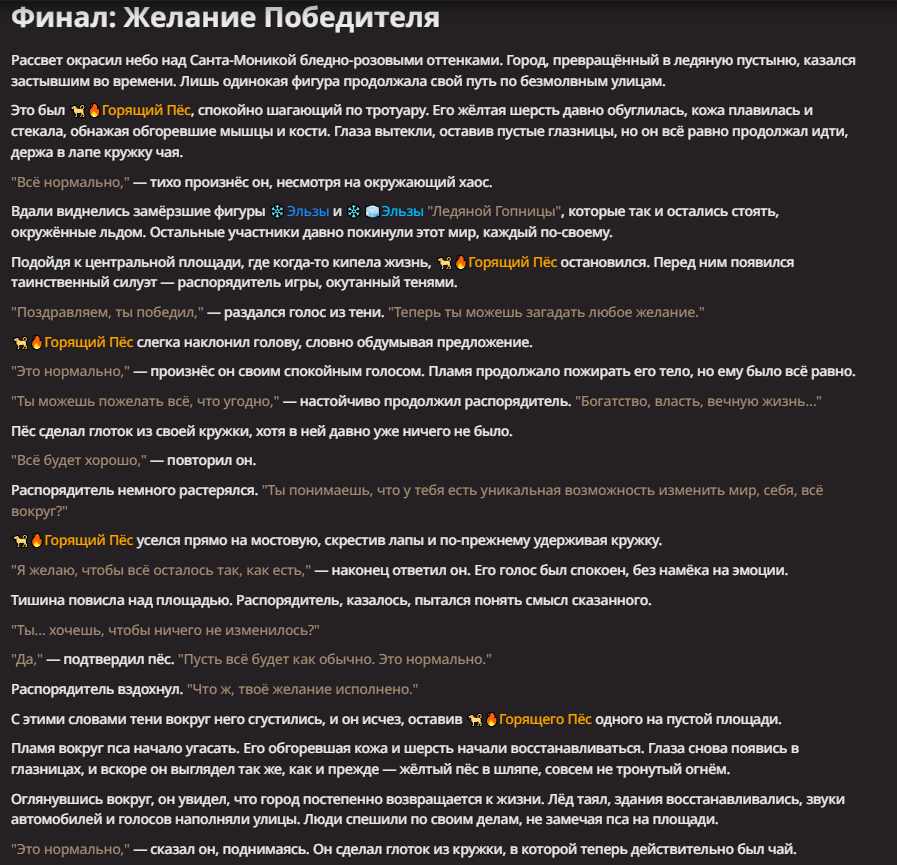 Кстати я тут старые бои посматривал. В одном из них нейросетка Холдена личом мороза сделала, чисто от того что у него имя Холден, типа холод, жесть короче, ёбаный рот этого гпт