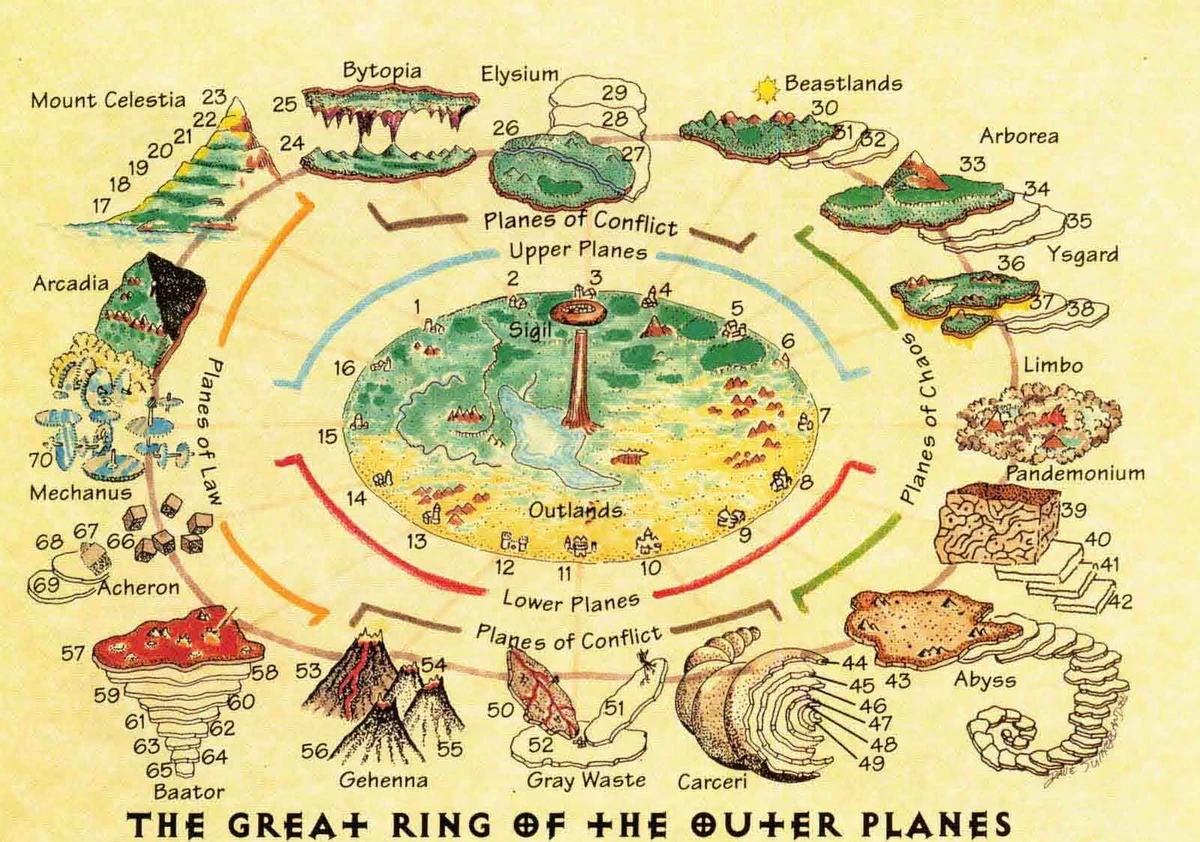 Подсистема Альмаут. Величественный красный гигант в свете своего старшего брата Гаргантюа имеет множество планет, он на достаточно большом расстоянии от Гаргантюа и потому некоторые планеты имеют подходящую температуру для жизни. Это как ни странно два спутника одного газового гиганта Фексар – Аргмиентоза и Фойксер. Из-за сложной системы орбит, включающей в себя два солнца и газового гиганта эти клочки жизни имеют периоды как постоянного дня, так и периоды постоянной ночи и несколько периодов когда на планете режим дня и ночи несимметричен и обусловлен расположением других звезд. Действие сценария происходит на одном из континентов Аргиментозы, там относительно стабильный период дня и ночи, а так же годичные циклы. Стоит уточнить, что некоторые участи планеты 95% времени имеют на себе свет и наоборот есть участок с вечной тьмой, поддерживаемой благодаря работе одного автономного светозаградительного спутника-реликвия эпохи архотехов, Черное солнце, которое поглощает в себя весь свет и силуэт которого изредка можно увидеть на дневном небосводе как абсолютно черное пятно. Иногда на небосводе можно увидеть Фойксер как синий шарик. Эта планета на 40 процентов меньше Аргиментузы, и представляет она из себя по большей части мир-океан с несколькими мелкими островами. Самым же величественным объектом, которого видно всегда - это газовый гигант Фексар, возможно благодаря работе черного солнца магнитное излучение и гравитационное поле Фексара не превратило Аргиментузу в вечно бурлящий мир землетрясений и вулканов. Столь силен этот маленький спутник в своей таинственной сути. В результате некоего катаклизма весь мир Аргиментузы откатился до бронзового века, остатки технологий не более чем остатки трухи от заржавевшего хлама или религиозные образы “богов” в храмах некоторых религий. Фойксер. Там тоже есть жизнь, но условия там непригодны для существования хотя не микроскопических организмов. Из-за менее слабого влияния черного солнца и сильного притяжения Фексара на этой океанической планете постоянные чудовищные по своей величине волны и сильная вулканическая активность. Далее в подсистеме звезды Альмаут присутствуют несколько скалистых планет, которые непригодны к жизни в определенные периоды. Хоть и некоторые из них и имеют давление воздуха в 1 атмосферу и даже имеют некоторое количество кислорода, связанно это с слишком нестабильным годичными условиями.