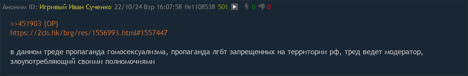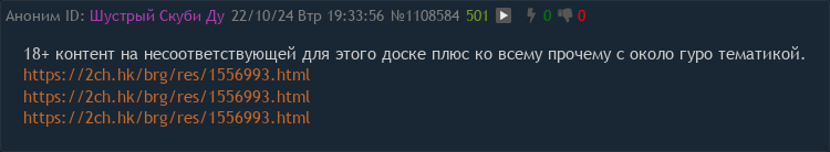 >>1559658 Гуро - мерзко, пошлость - мерзко, шутки над смертью - мерзко, картинки с говном - мерзко, изнасилование - мерзко, скудоумие и школьный юмор - мерзко, сидеть на подментованной и подчинённой гос. корпорации площадке, админ которой выдаёт IPшники - мерзко.