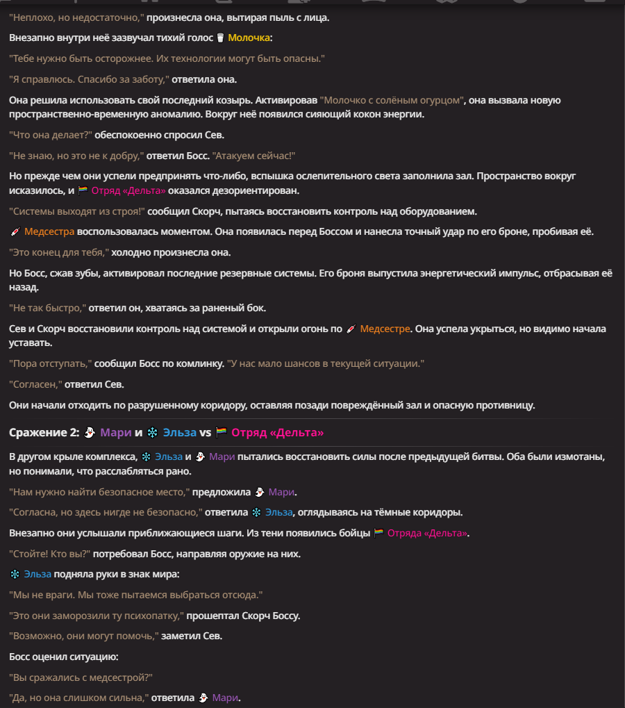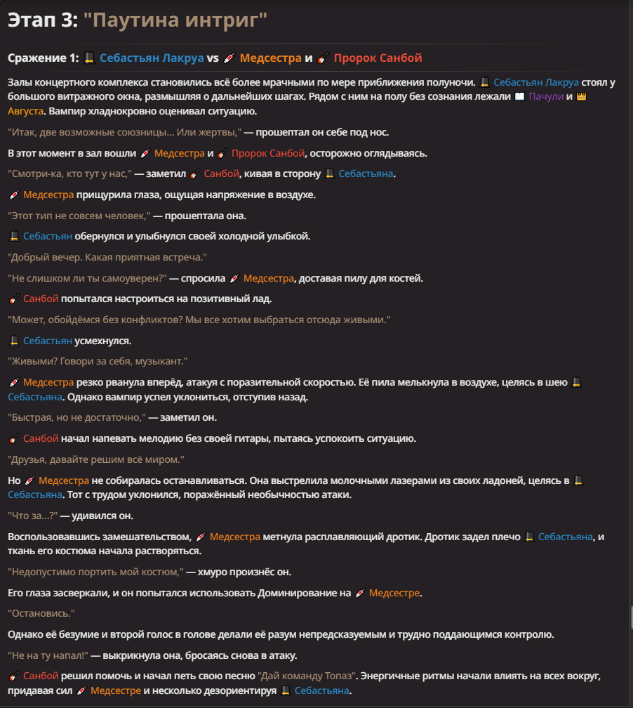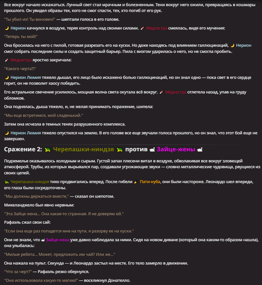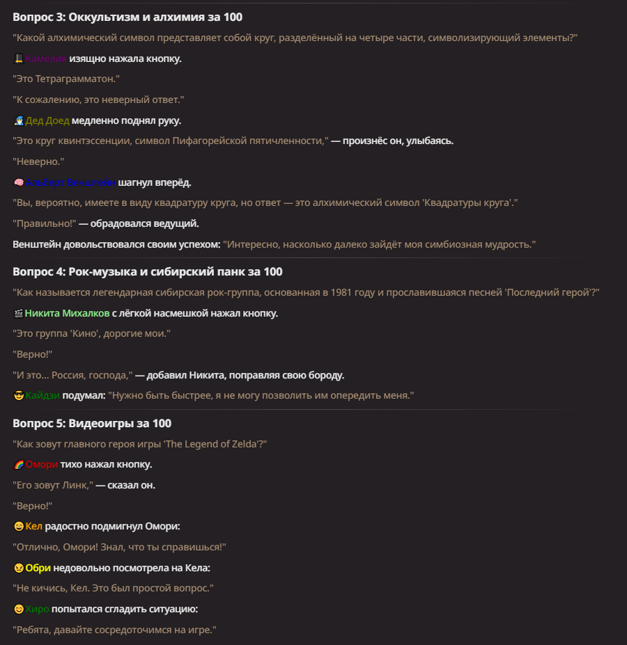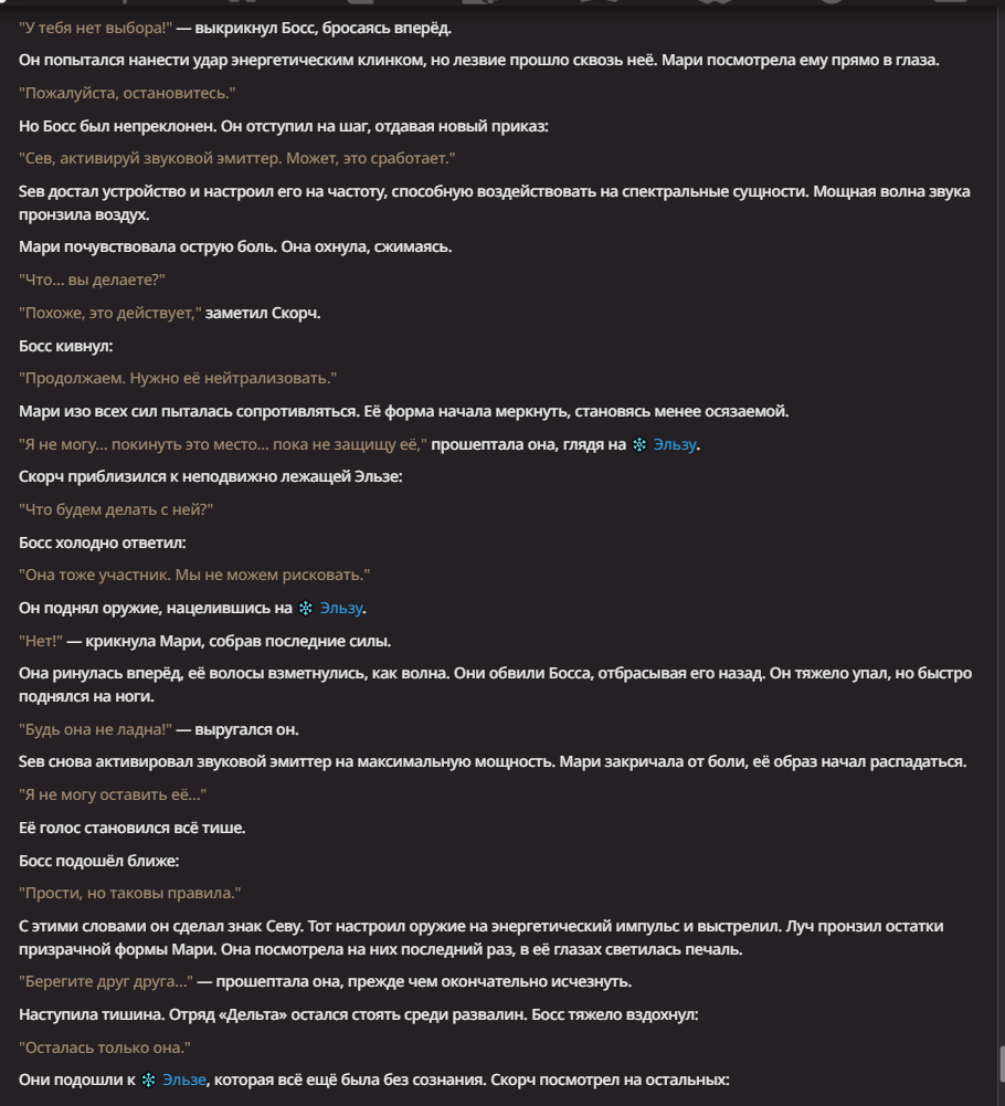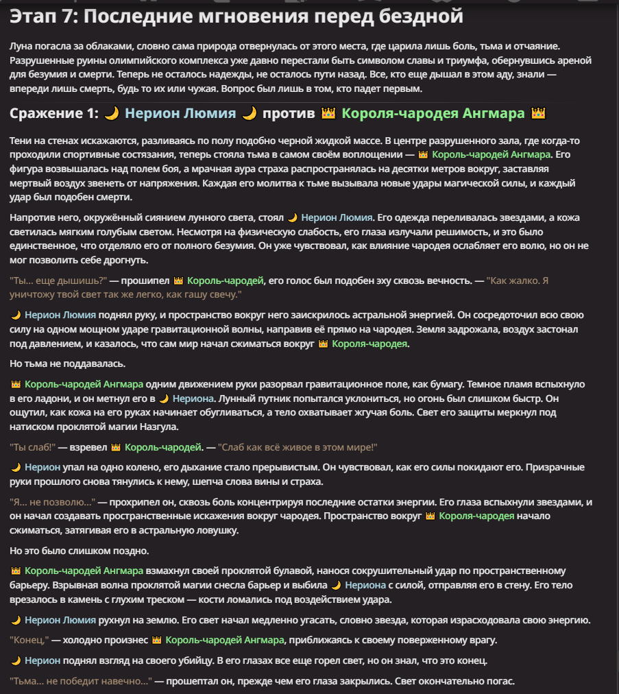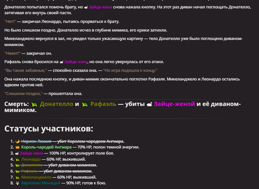 Нео из ГПТ Этот ничем не примечательный парень понимает что он и другие участники и абсолютно все остальное пространство на самом деле не более чем текст, написанные нейросетью. Он не может умереть или ожить, пока нейросеть будет продолжать писать, он не может получать урон, так как понимает тчо это не более чем текст, да и сам он ничего не сможет сделать за исключением того чтобы попытаться убедить других участников, что все происходящее не более чем иллюзия.