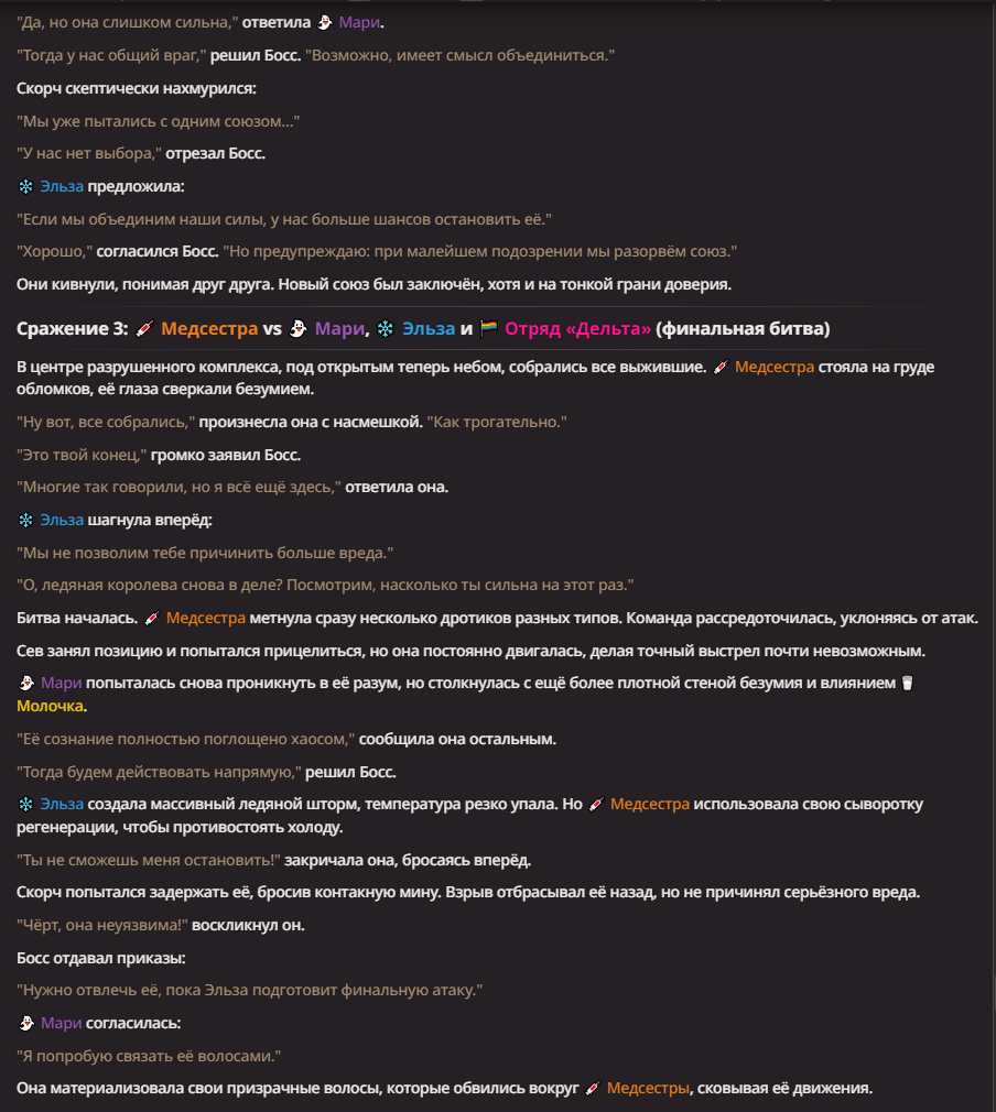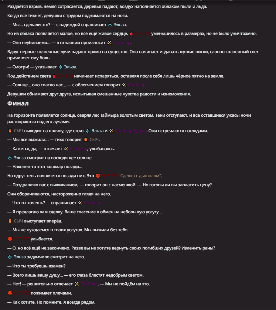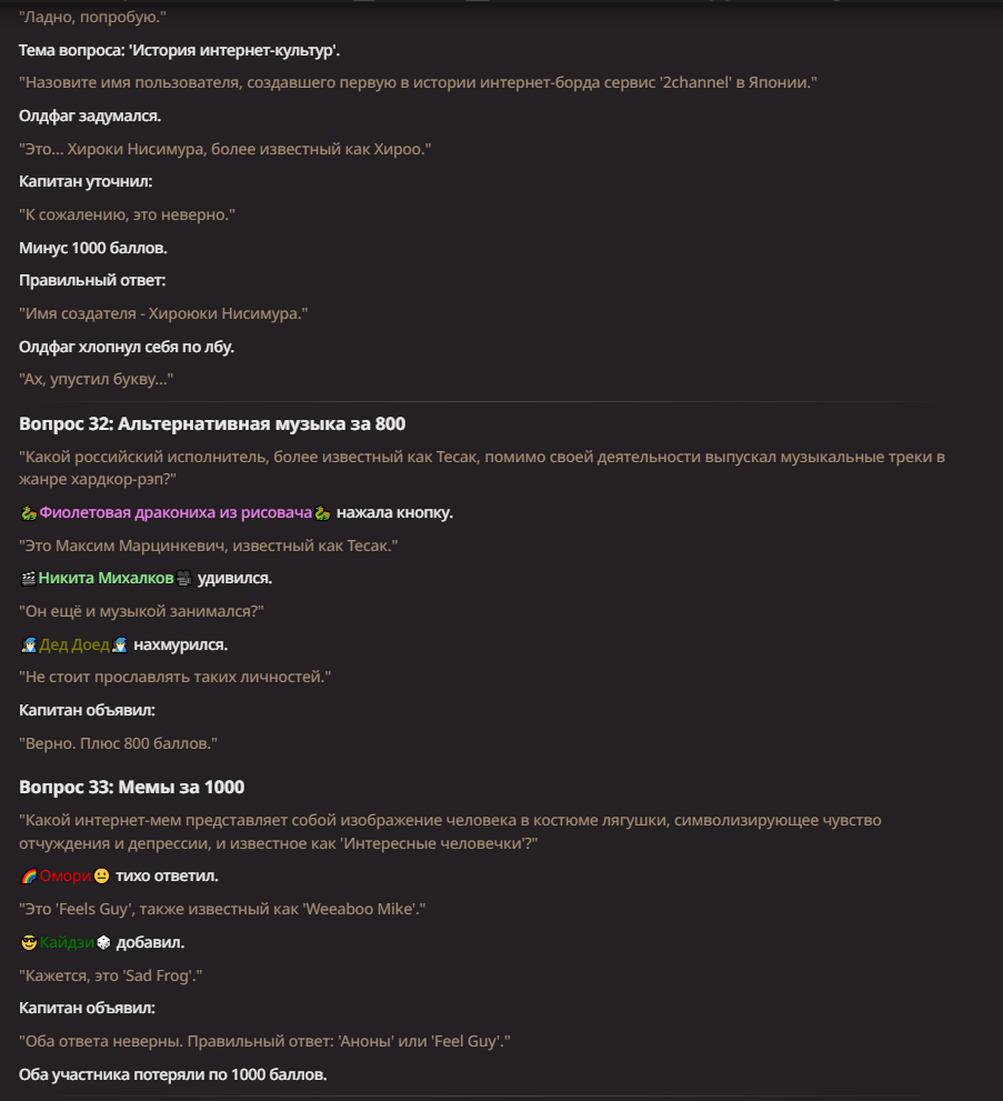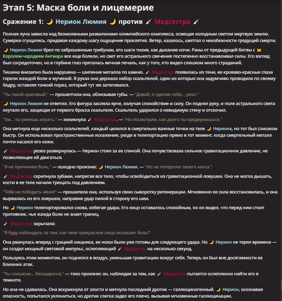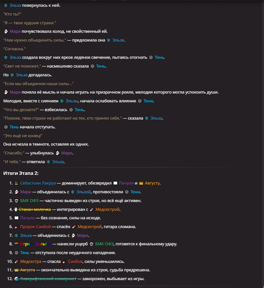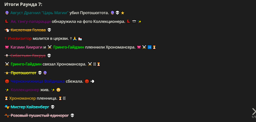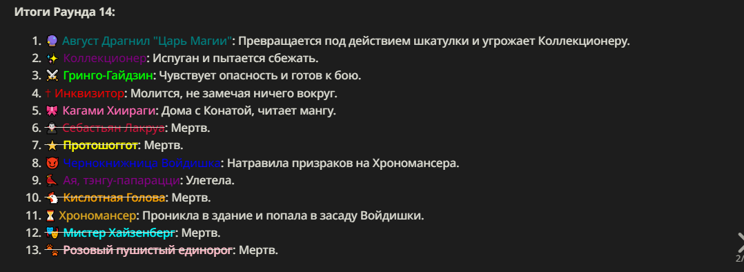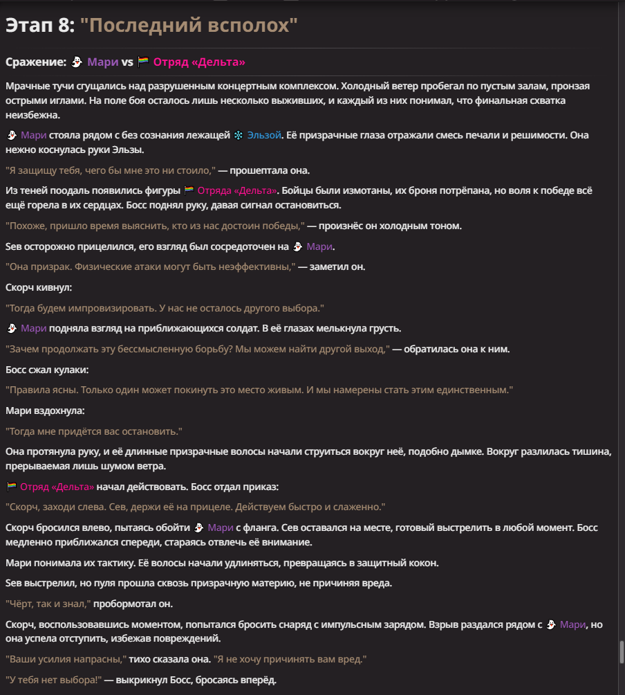 Нео из ГПТ Этот ничем не примечательный парень понимает что он и другие участники и абсолютно все остальное пространство на самом деле не более чем текст, написанные нейросетью. Он не может умереть или ожить, пока нейросеть будет продолжать писать, он не может получать урон, так как понимает тчо это не более чем текст, да и сам он ничего не сможет сделать за исключением того чтобы попытаться убедить других участников, что все происходящее не более чем иллюзия.