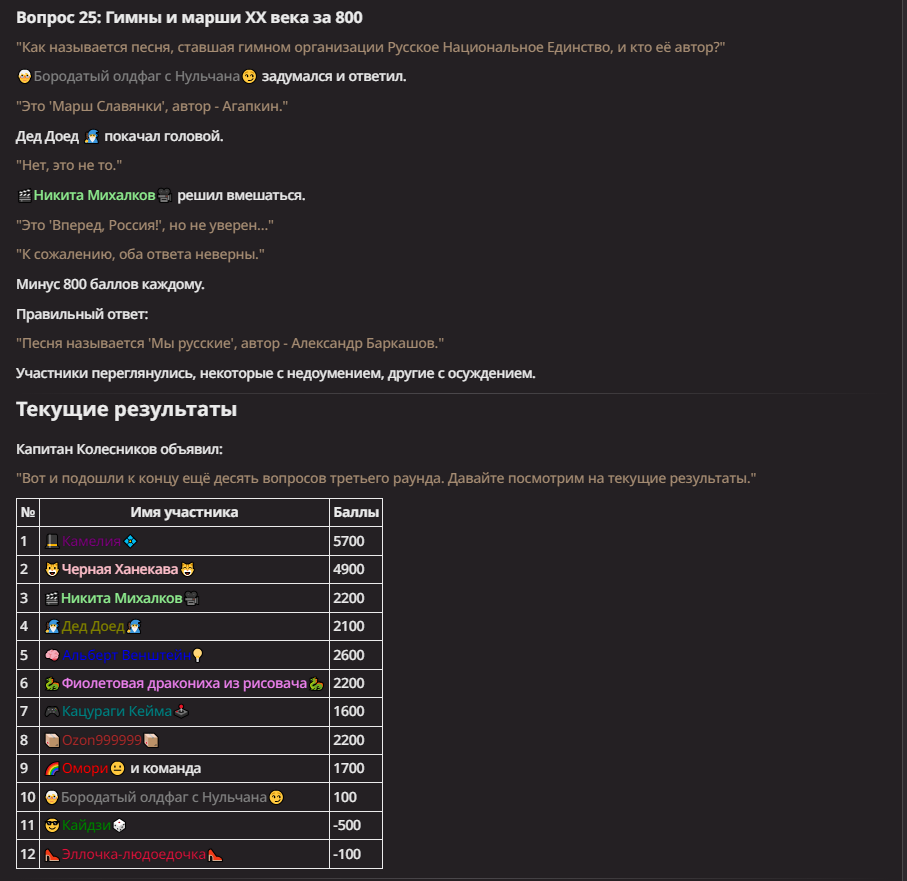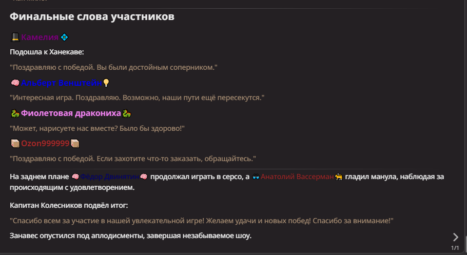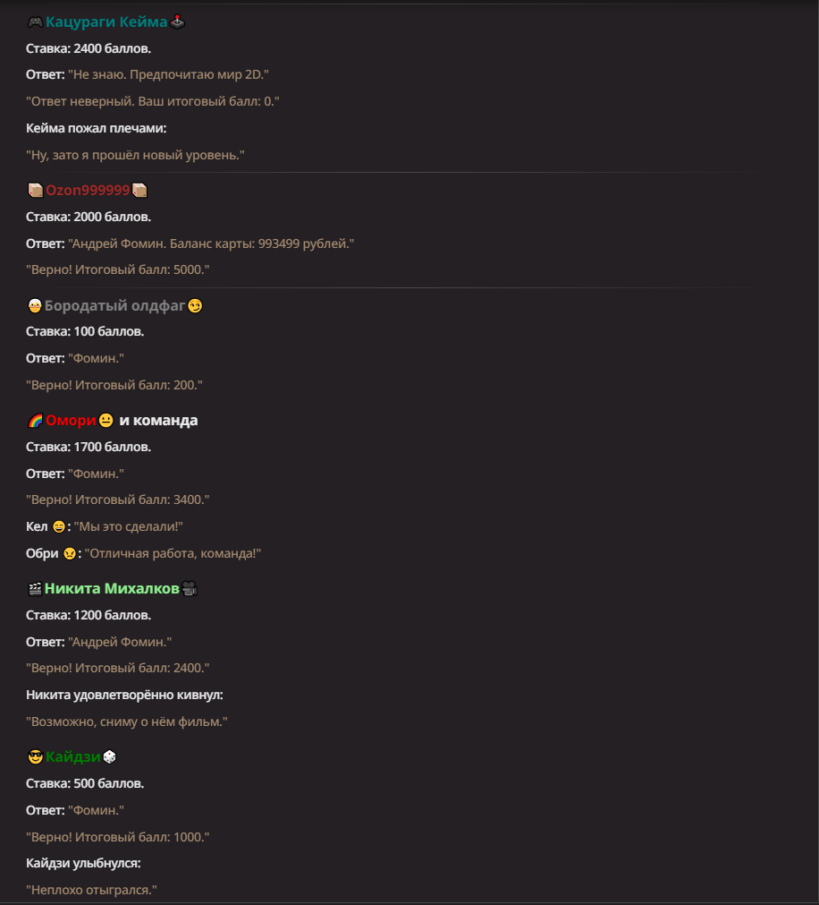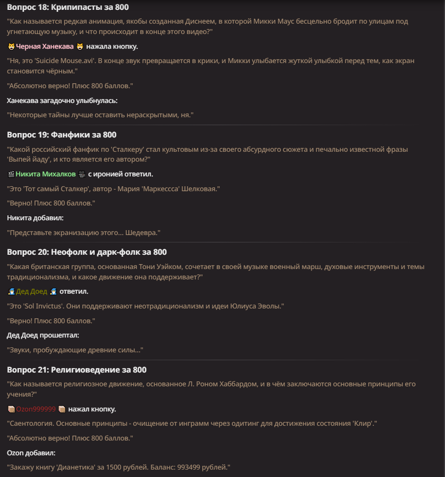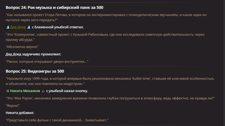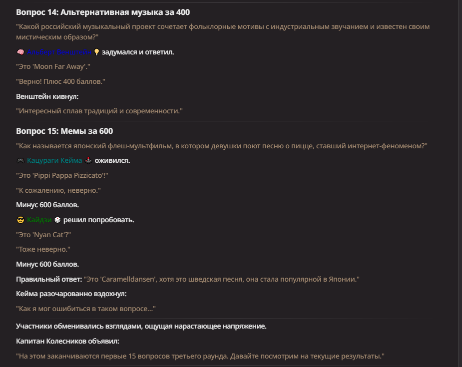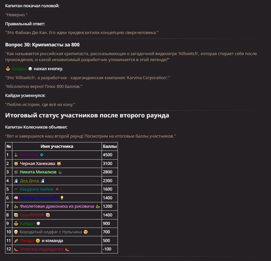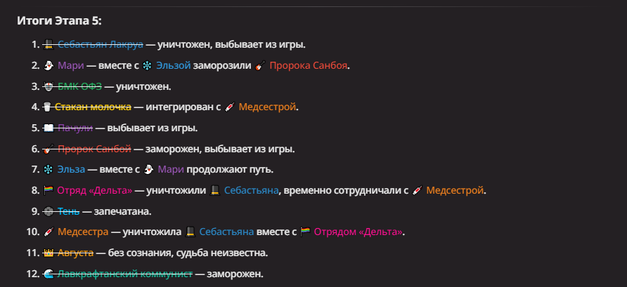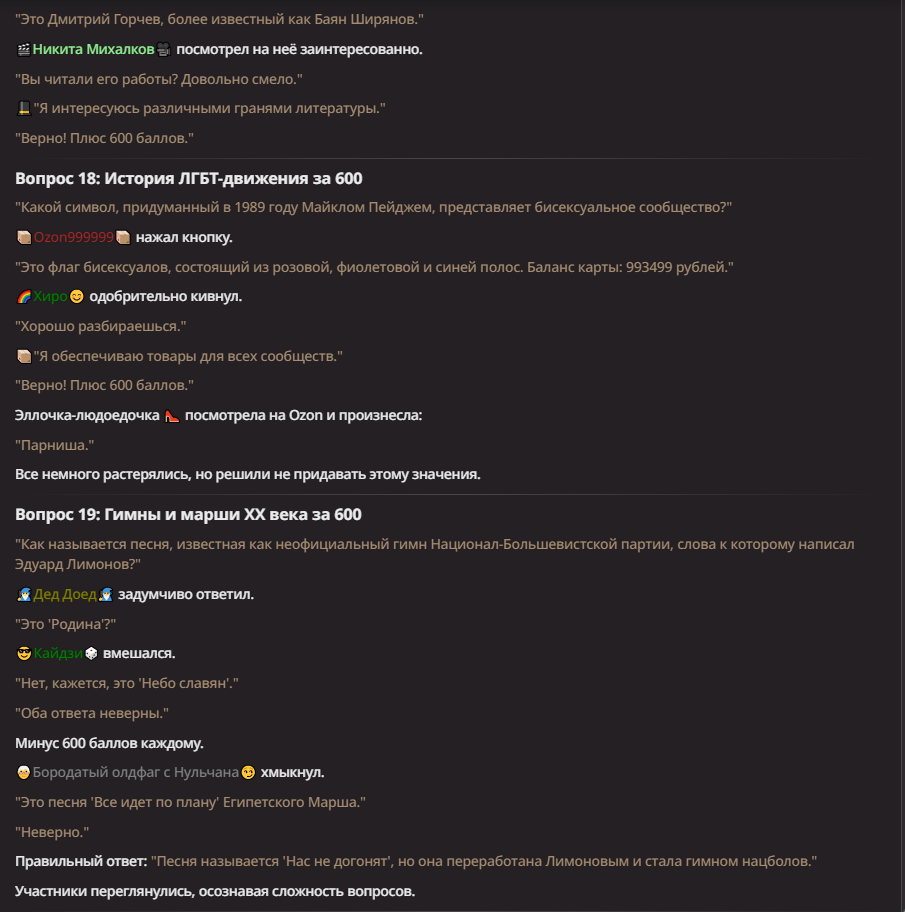 Нео из ГПТ Этот ничем не примечательный парень понимает что он и другие участники и абсолютно все остальное пространство на самом деле не более чем текст, написанные нейросетью. Он не может умереть или ожить, пока нейросеть будет продолжать писать, он не может получать урон, так как понимает тчо это не более чем текст, да и сам он ничего не сможет сделать за исключением того чтобы попытаться убедить других участников, что все происходящее не более чем иллюзия.