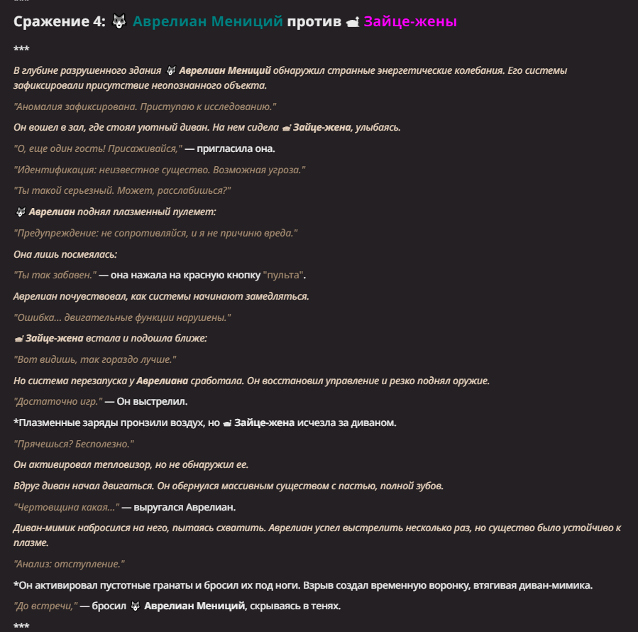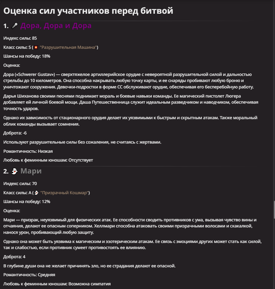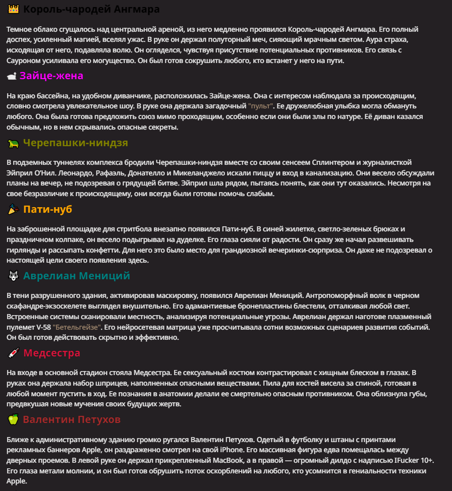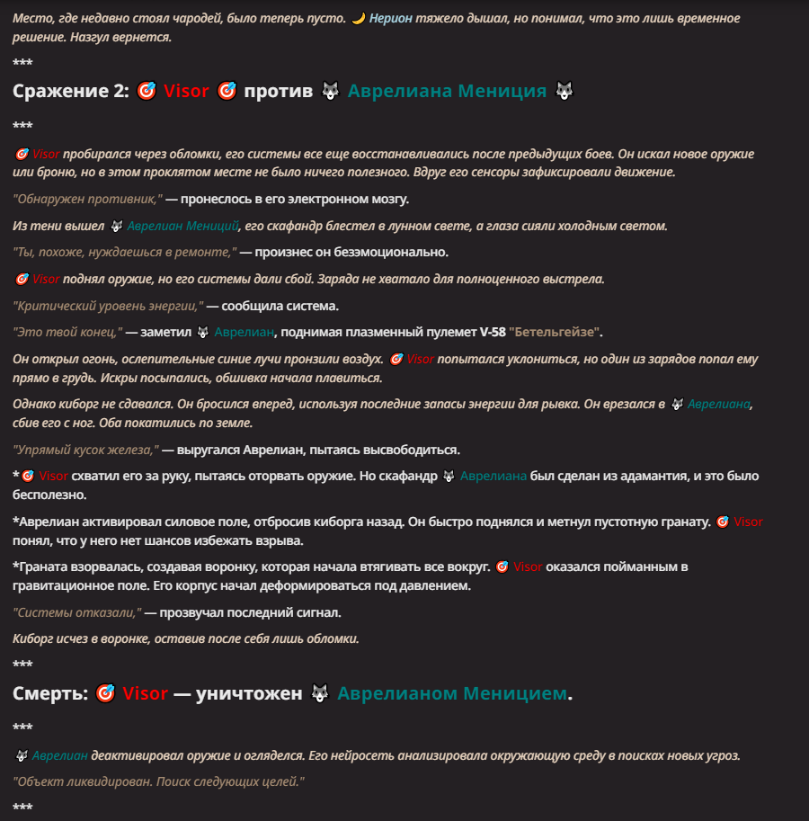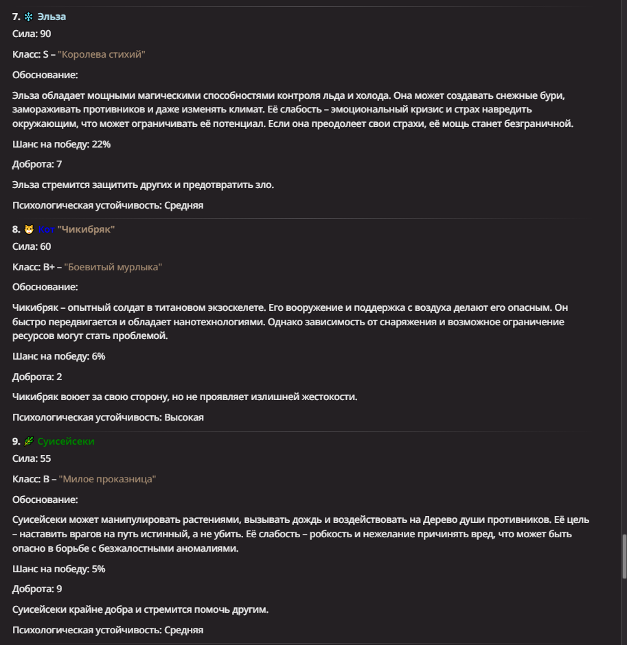 АИ АРЕНА |АИ БИТВЫ Игровой тред №7. В этих битвах может участвовать любой персонаж из любой вселенной, даже нашей(и даже из вашей головы)! Вам только нужно предложить их. Так же можете предложить место проведения боя которое выберется случайным образом.