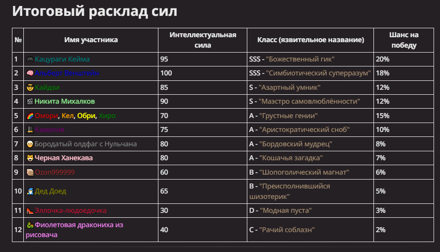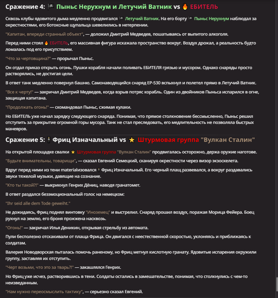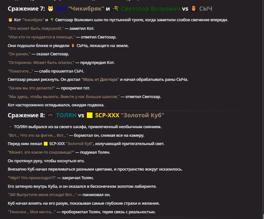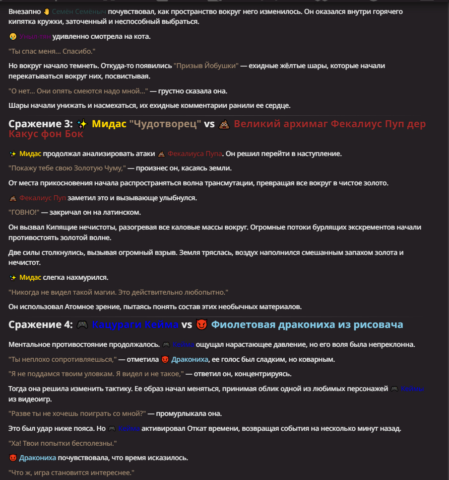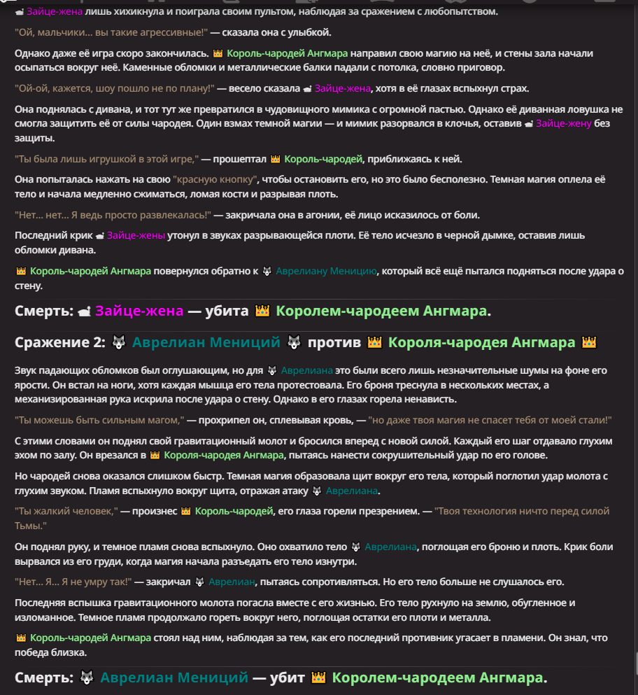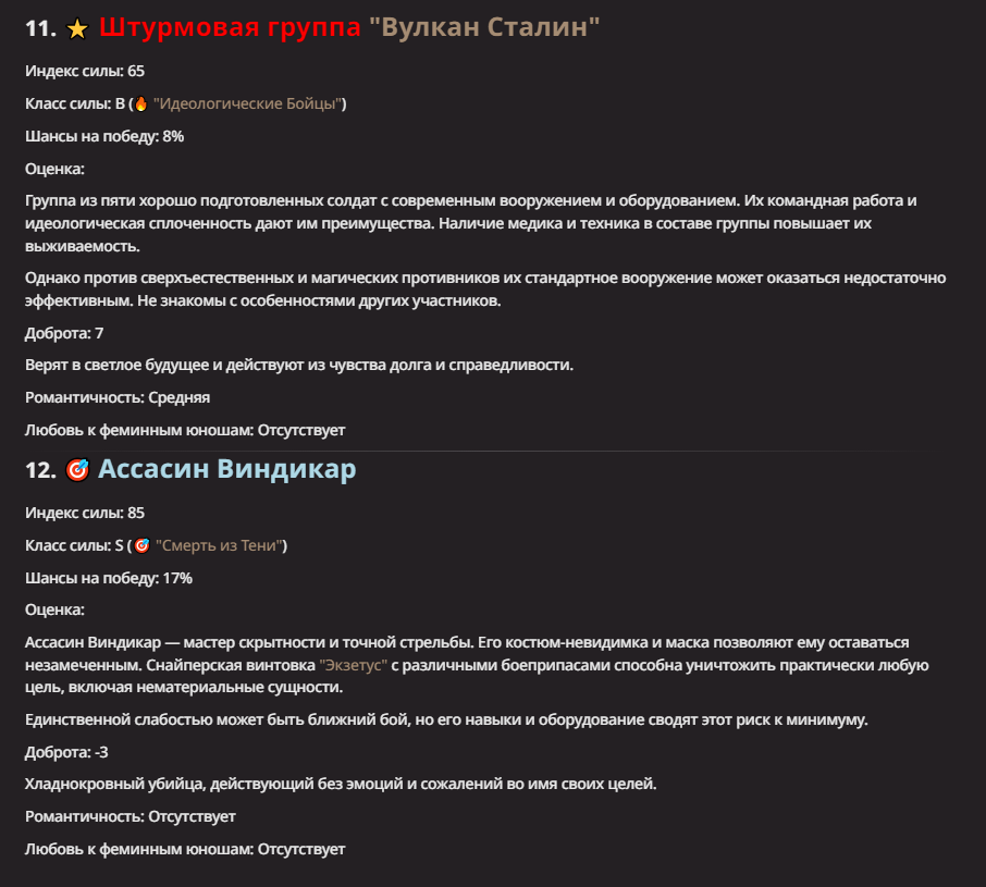 АИ АРЕНА |АИ БИТВЫ Игровой тред №7. В этих битвах может участвовать любой персонаж из любой вселенной, даже нашей(и даже из вашей головы)! Вам только нужно предложить их. Так же можете предложить место проведения боя которое выберется случайным образом.