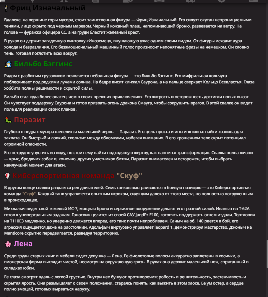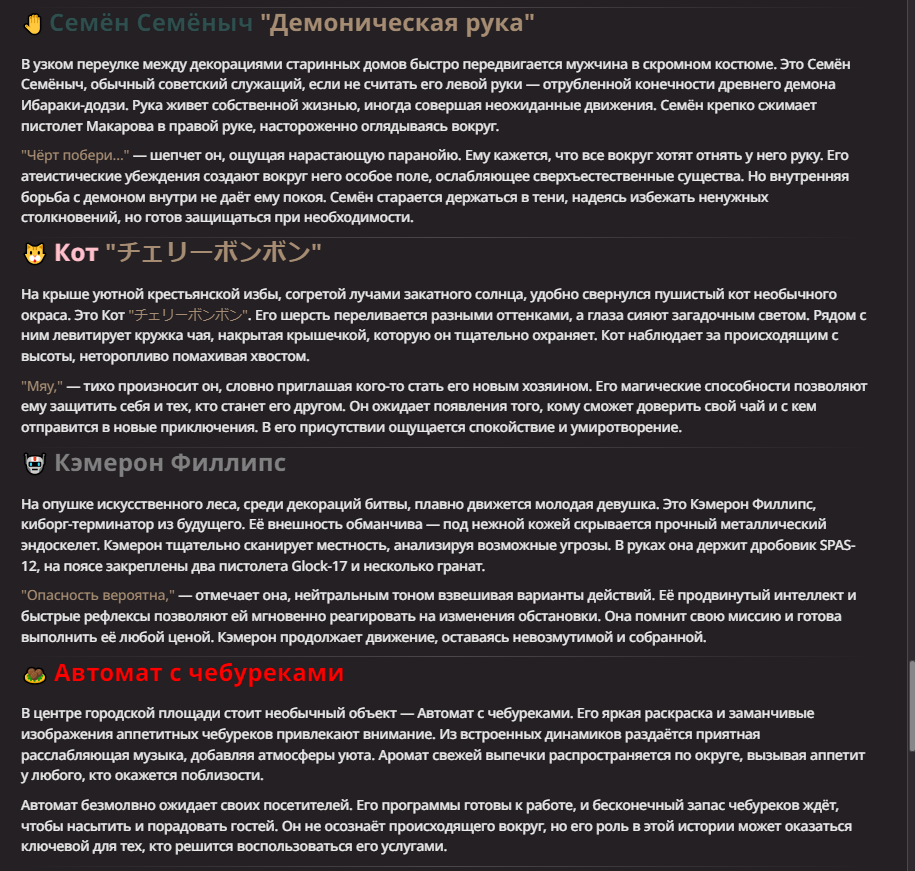Похоже нейронка ещё в описании поменяла бойца из таркова на Единорога и Хайзенберга. Первого я увидел, а второго только сейчас, и ругался из-за него на нейроночку...