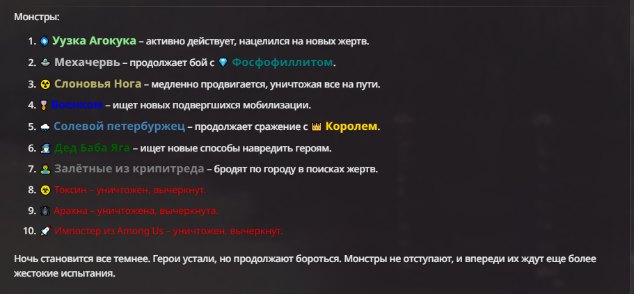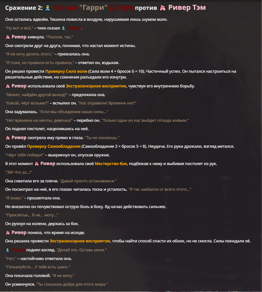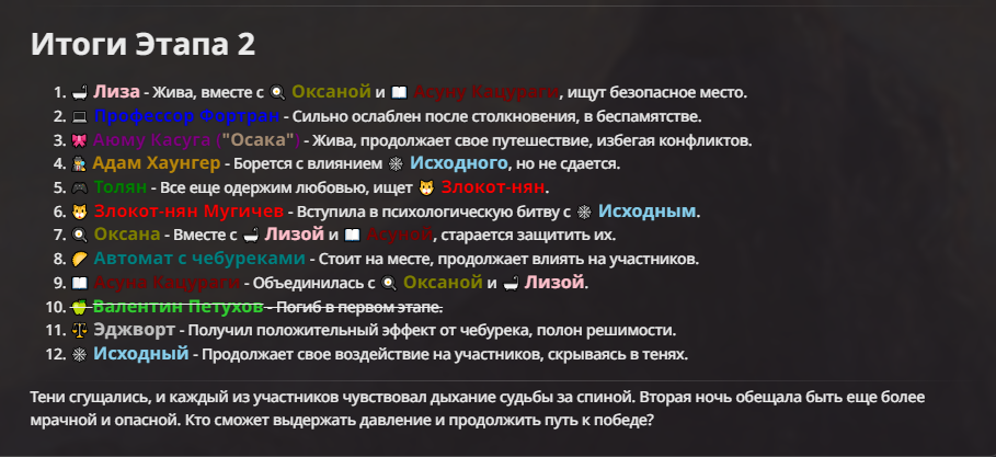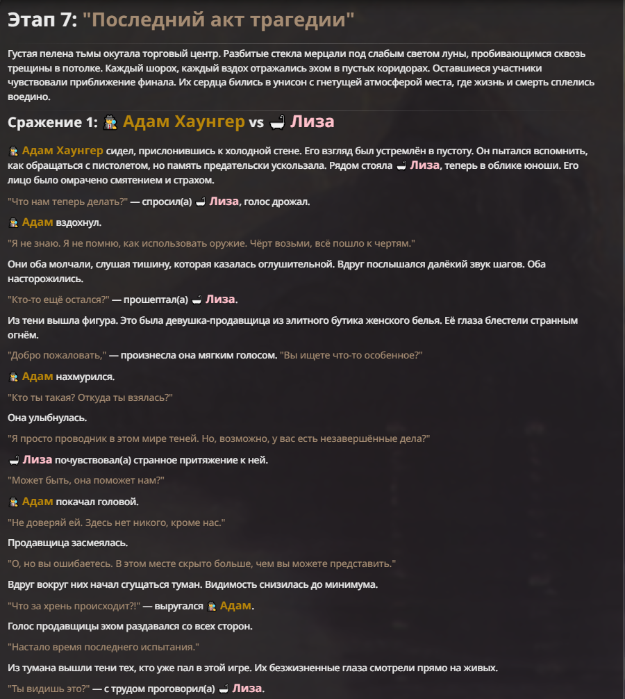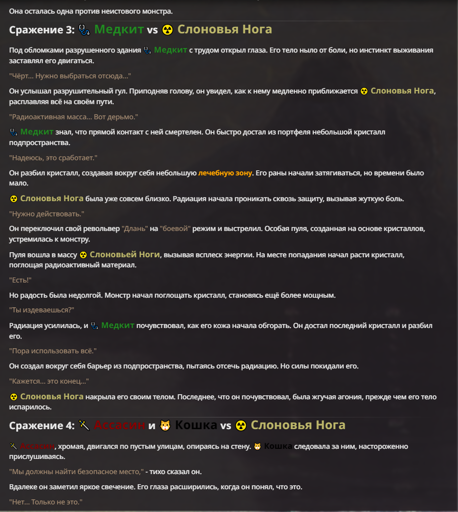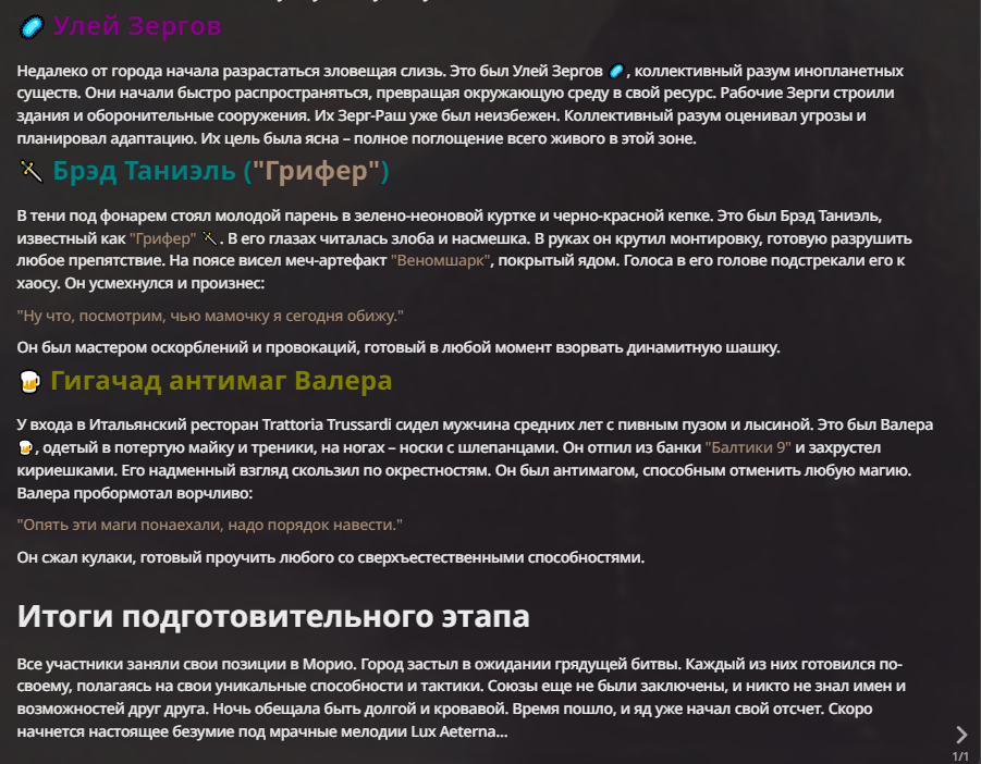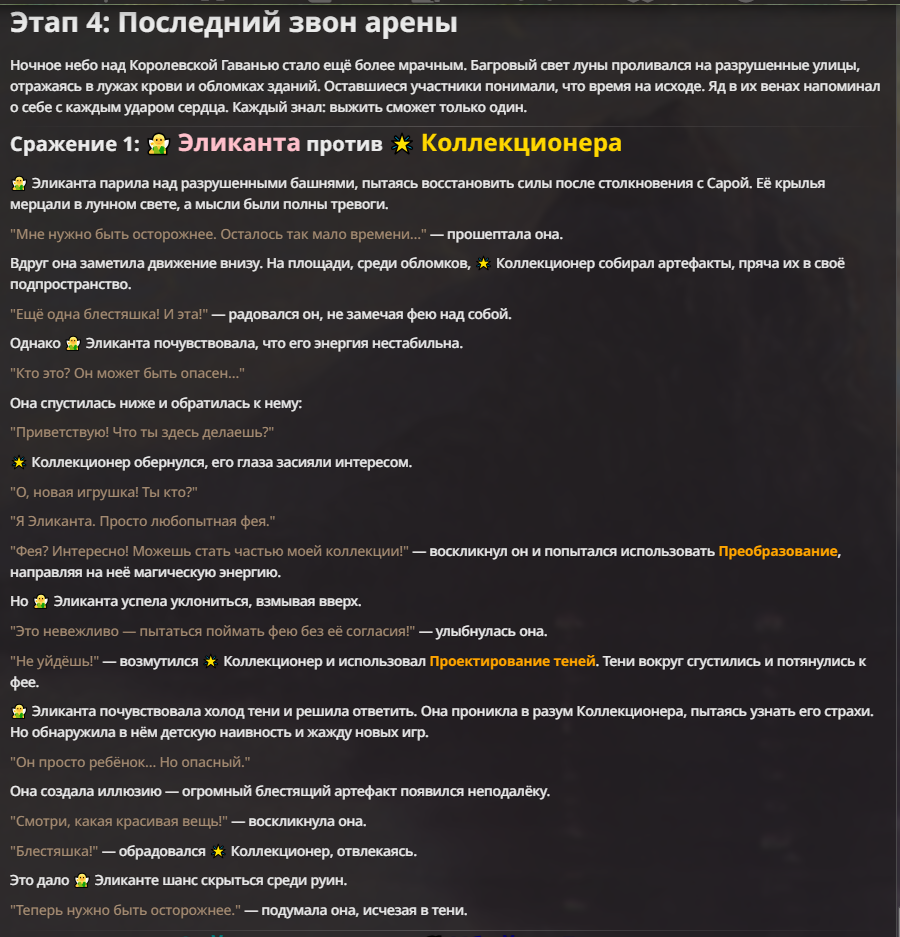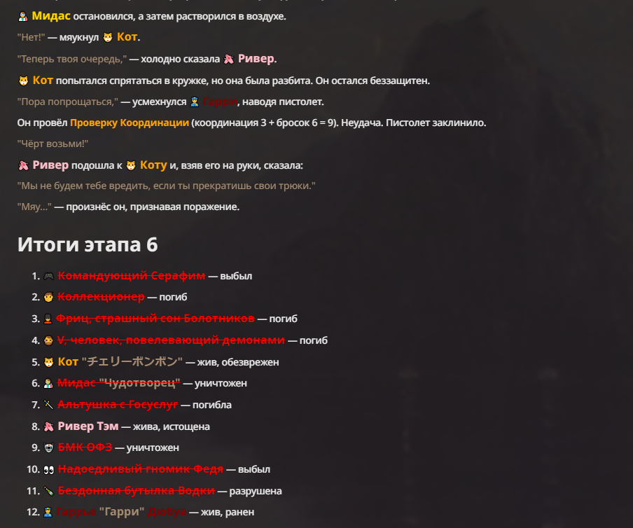Я ебал аноны. Хуета какая. Гопота проебывает персонажей, путает способности, не может нормально отобразить потери. Чет я не справляюсь, мб промт хуйня, мб версия гопоты не так. Я спать. Приношу извинения что не смог провести нормальных боев и так сильно выебывался на Злокота.