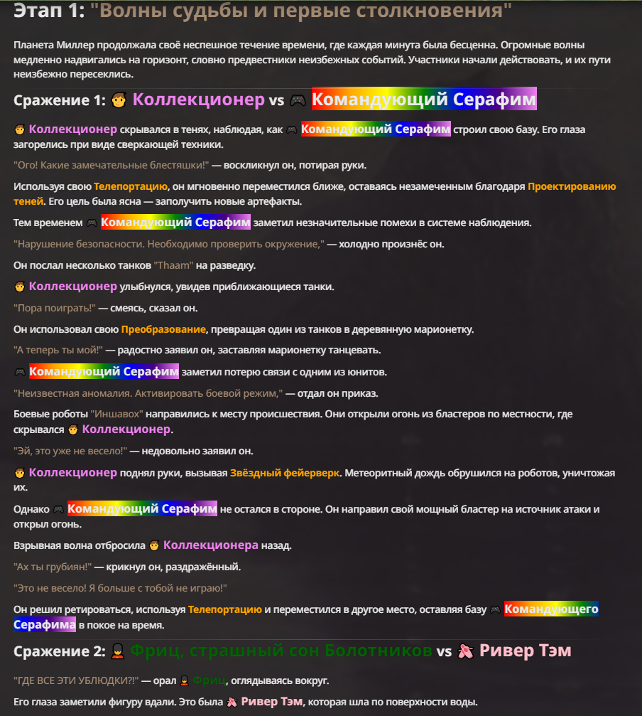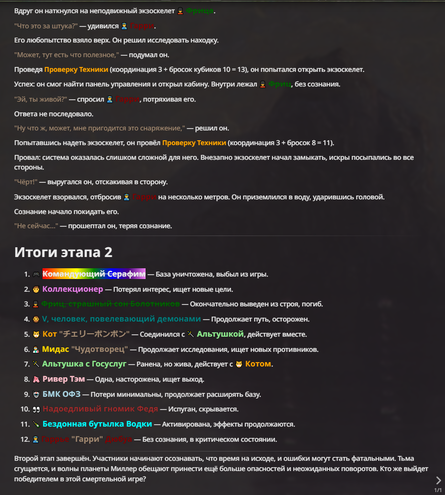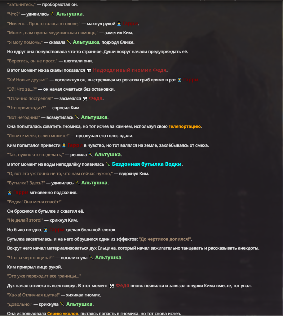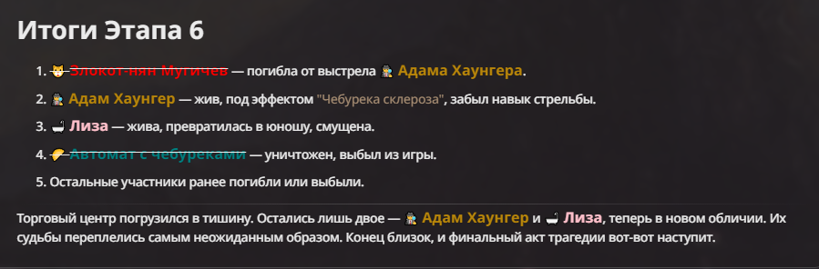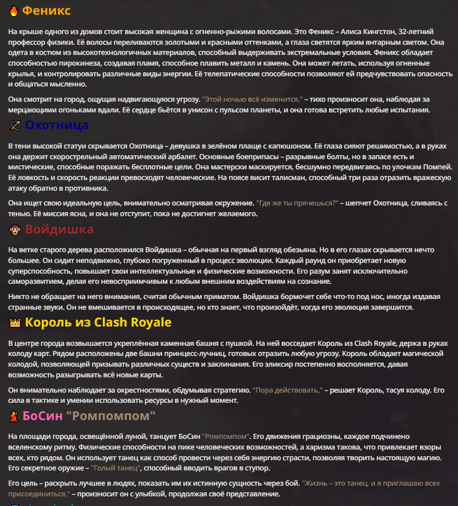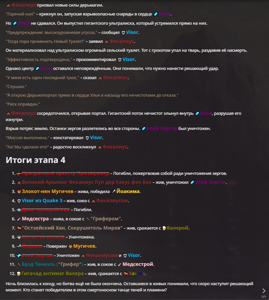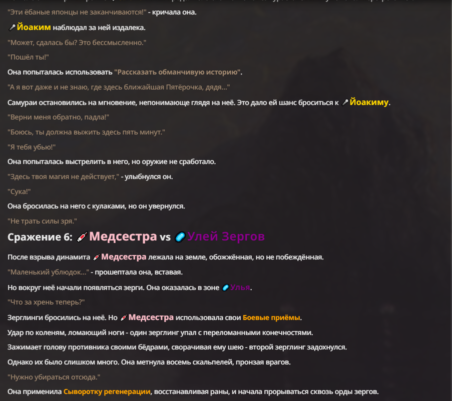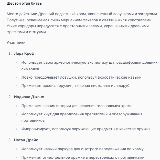 Я ебал аноны. Хуета какая. Гопота проебывает персонажей, путает способности, не может нормально отобразить потери. Чет я не справляюсь, мб промт хуйня, мб версия гопоты не так. Я спать. Приношу извинения что не смог провести нормальных боев и так сильно выебывался на Злокота.