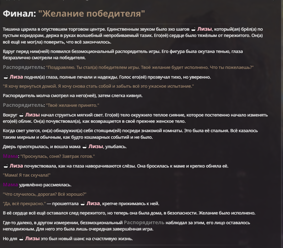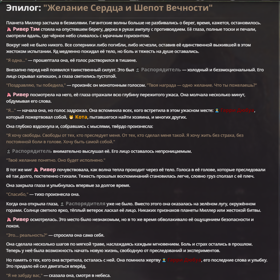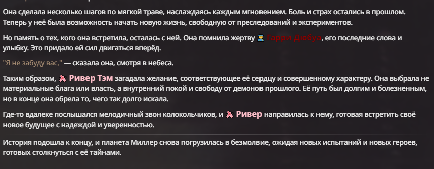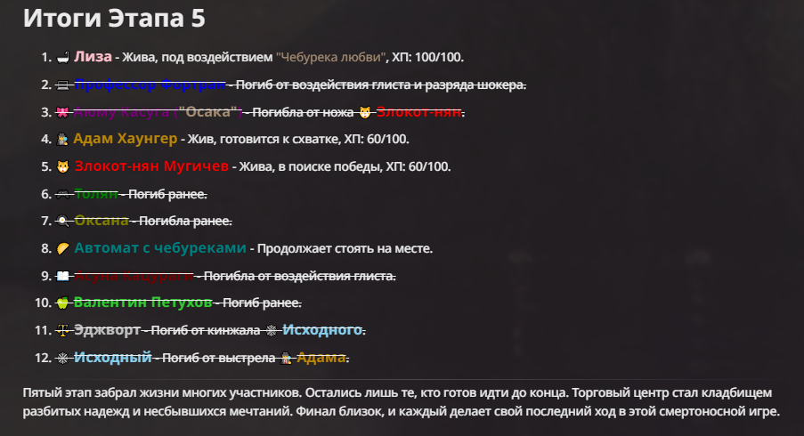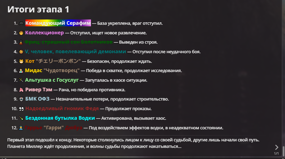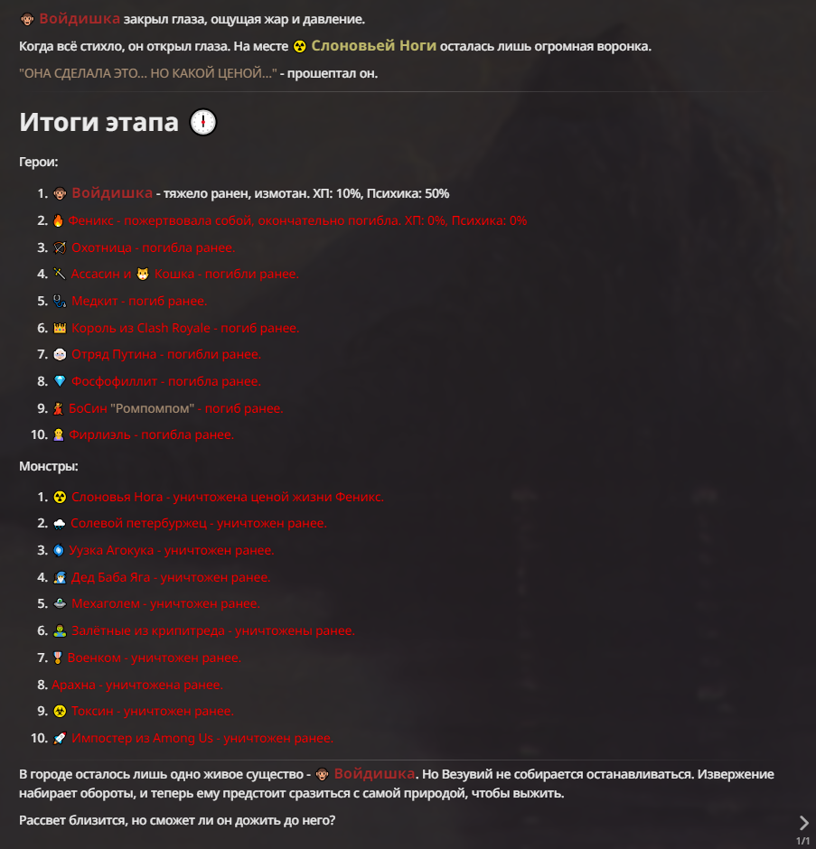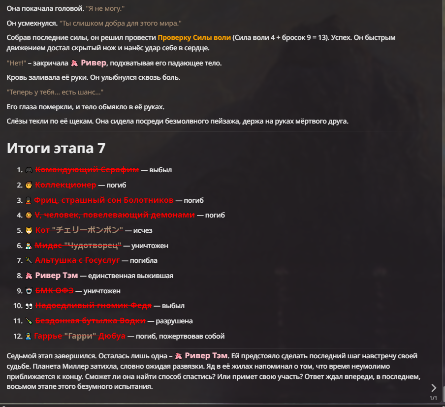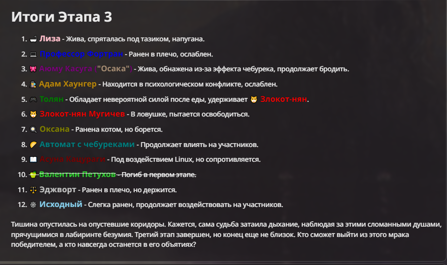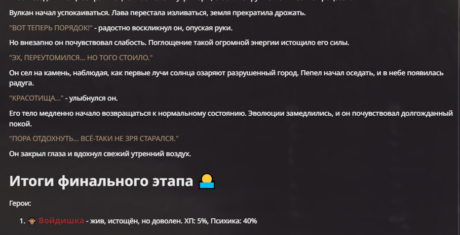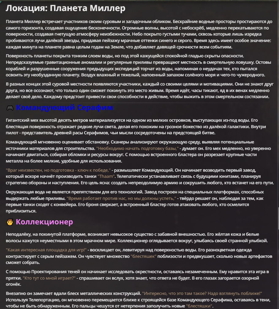 Я ебал аноны. Хуета какая. Гопота проебывает персонажей, путает способности, не может нормально отобразить потери. Чет я не справляюсь, мб промт хуйня, мб версия гопоты не так. Я спать. Приношу извинения что не смог провести нормальных боев и так сильно выебывался на Злокота.