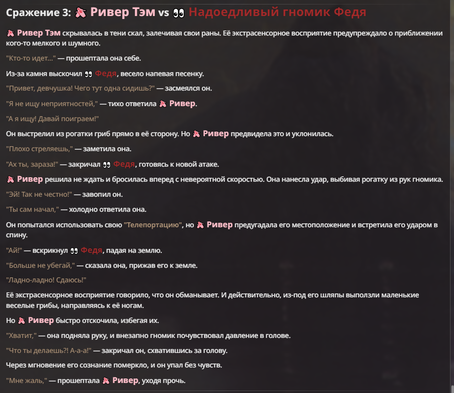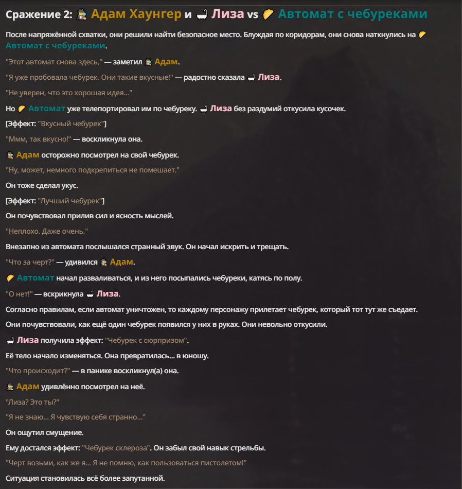 Прикол в том, что нейронка генерирует исход боя рандомно и может произойти буквально что угодно.
