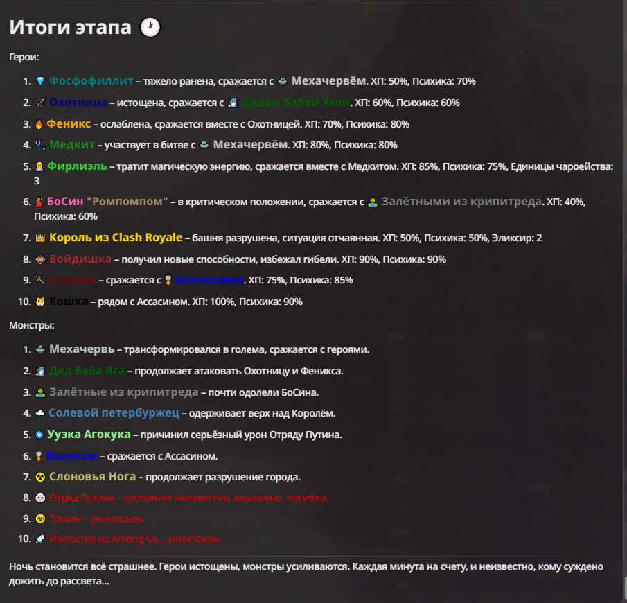Так, ладно, давайте итоговые расклады, чтобы силы подготовить. И давайте сделаем форму карточки отряда, я лично почему против сша, это же формат тянучий, мы за ночь не доиграем, а завтра не выходной