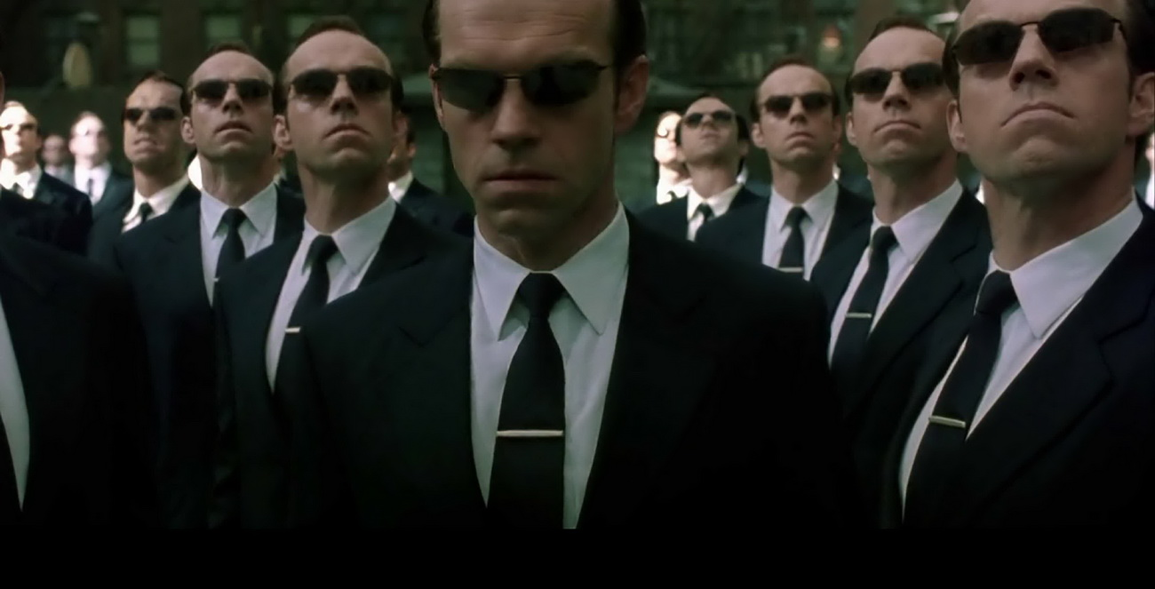 Я за США. Команда Смитов. По сюжету трилогии "Матрица" люди живут в цифровом мире, где каждый человек лишь проекция, "аватар" реально существующего человека, находящегося в капсуле виртуальной реальности. Агент Смит был программой, призванной уничтожать людей, угрожающих этой реальности, Матрице. Но он оказывается побеждён и стёрт из Матрицы. Потом он воскресает и получает способность "заражать" людей своим кодом: аватар человека превращается в самого Смита, копируя его сознание и способности. Так, заражая людей в геометрической прогрессии, Смит порабощает всех жителей Матрицы. Каждый человек стал полной копией Смита. Команда Смитов состоит из их всех. Способности каждого из Смитов: 1) Повышенная физическая сила и прочность: Смит может очень высоко прыгать, его удар способен вырвать фонарный столб, крошить бетонные стены, он может без особых последствий переживать сильные удары, быть сбитым машиной, но его всё ещё могут убить более сильные кинетические воздействия, например пули или поезд. 2) Уклонение от пуль: благодаря высокой реакции и скорости Смит способен уворачиваться от летящих в него пуль и других снарядов. Не может уворачиваться, стоя вплотную со стрелком. 3) Боевые навыки: Смит владеет всеми видами боевых искусств на уровне чемпиона мира. Также крайне точно стреляет из пистолета. Оснащение: Каждый из Смитов одет в деловой костюм, носит солнцезащитные очки и орудует пистолетом.