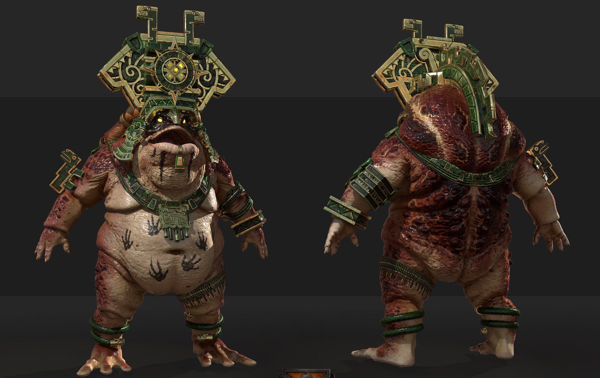Жабий Босс "Пепезума" Один из древних правителей Цивилизации Ящеров, восстал из своего мавзолея где-то в Сибирских Джунглях, огромная 5 метровая, жирная, мерзкая жаба-гуманоид с большой золотой короной ацтеков. Брони не имеет, только украшения, в защите полагаясь на свою толстоту и магию. Несмотря на свою громоздкость силой не наделён. Однако Пепезума наделён интеллектом настолько огромным, что способен на телепатию, телекинез и прикасаться к потустороннему. Несмотря на почтенный возраст он - девственник, так что легко поддаётся на соблазнения сексуальных дев (и феминных юнцов). Говорит очень низким шипяще-квакающим голосом. Весьма спокоен. Может проводить атаки: "Мощная оплеуха"-бьёт по роже врага, наносит мало урона, зато хорошо деморализует врага. "Мясной танк"- мощно плюхается на врага, погребая того под своей тушей, но что бы встать обратно Пепезуме нужна помощь постороннего, или использовать на себе "Жабьи Фокусы". Способности: "Жабий Гнев" - Если сильно разозлить, начинает громко ругаться и матерится на врага, понижая его восприятие и мораль. "Жабий Барьер" - накрывает куполом вокруг себя в радиусе 3 метров, который защищает от снарядов и магии (пропадает через время или после тяжёлого урона). "Жабьи Фокусы" - Используя свой мозг активирует телекинез и поднимает объект (максимум до размера с себя) в воздух для последующего броска/защиты. Может поднимать и себя. Применение вызывает головную боль у Пепезумы. "Жабья бомба" - Выплёвывает один шар энергии в направлении врага, если шар чего-то коснётся то приклеится к этому и взорвётся. "Жабья бомба: Сердечный приступ" - (только после нахождения трупа) вырезает из поверженного врага сердце и преподносит своим Богам, призывая с небес дождь из взрывающихся ядовитых жаб. Не влияет на себя и союзников. "Жабья бомба: Пыльный >пук" - Смертельно опасное заклинание, Пепезума использует все свои силы, жир и интеллект для вызова точного ядерного взрыва в радиусе 100 метров. Аннигилирует всё в этом радиусе, однако не влияет на себя и союзников. После применения Пепезума становится очень слаб и немощен на очень долгое время. "Среда, мои чуваки" - по средам реального мира становится гораздо сильнее. Благодаря своему непомерно огромному уму является главным у ящеров. Хочет что бы все следовали его плану. Но это происходит не всегда, от чего Пепезума бесится.