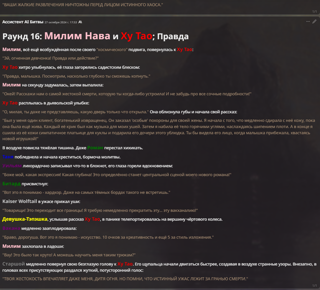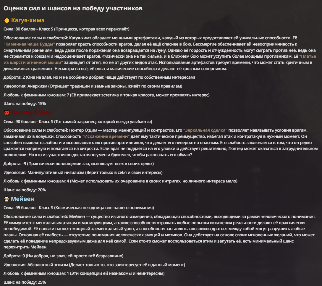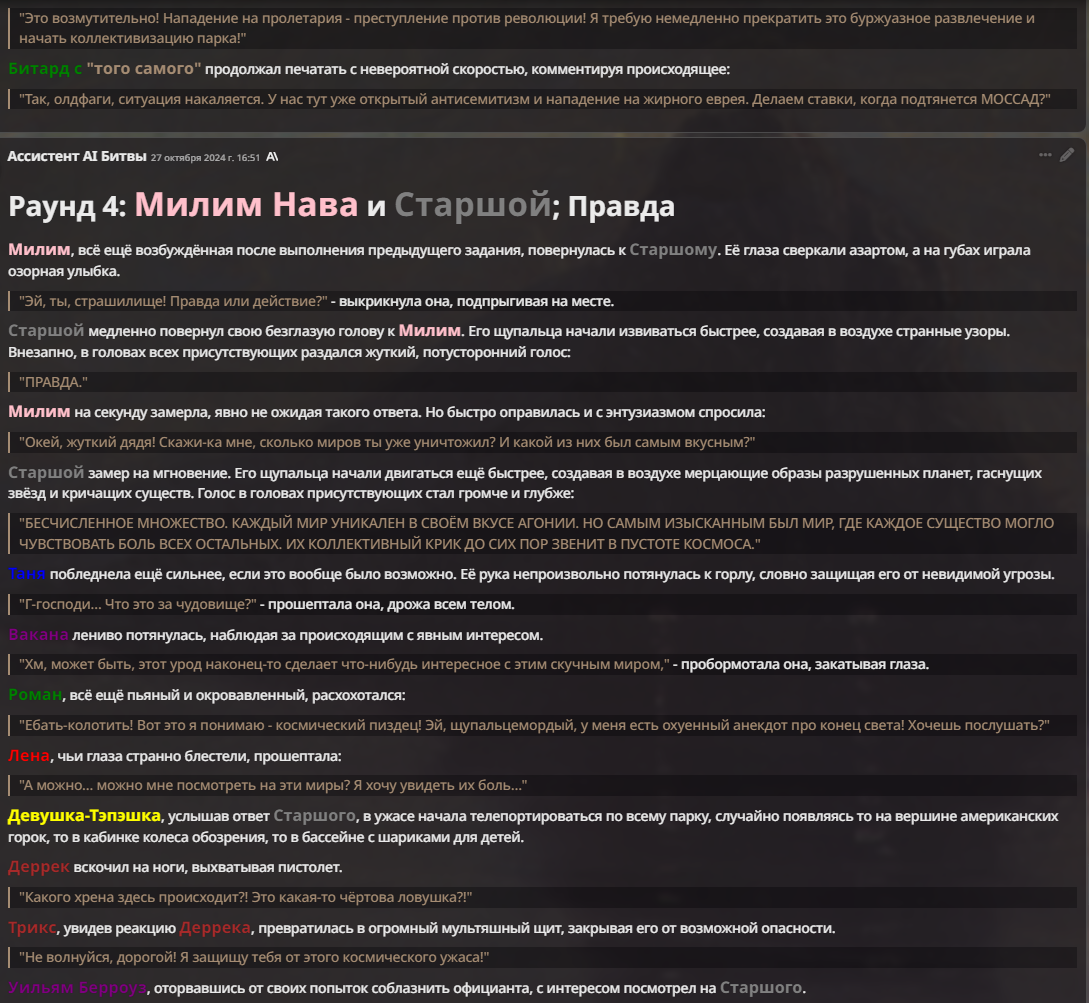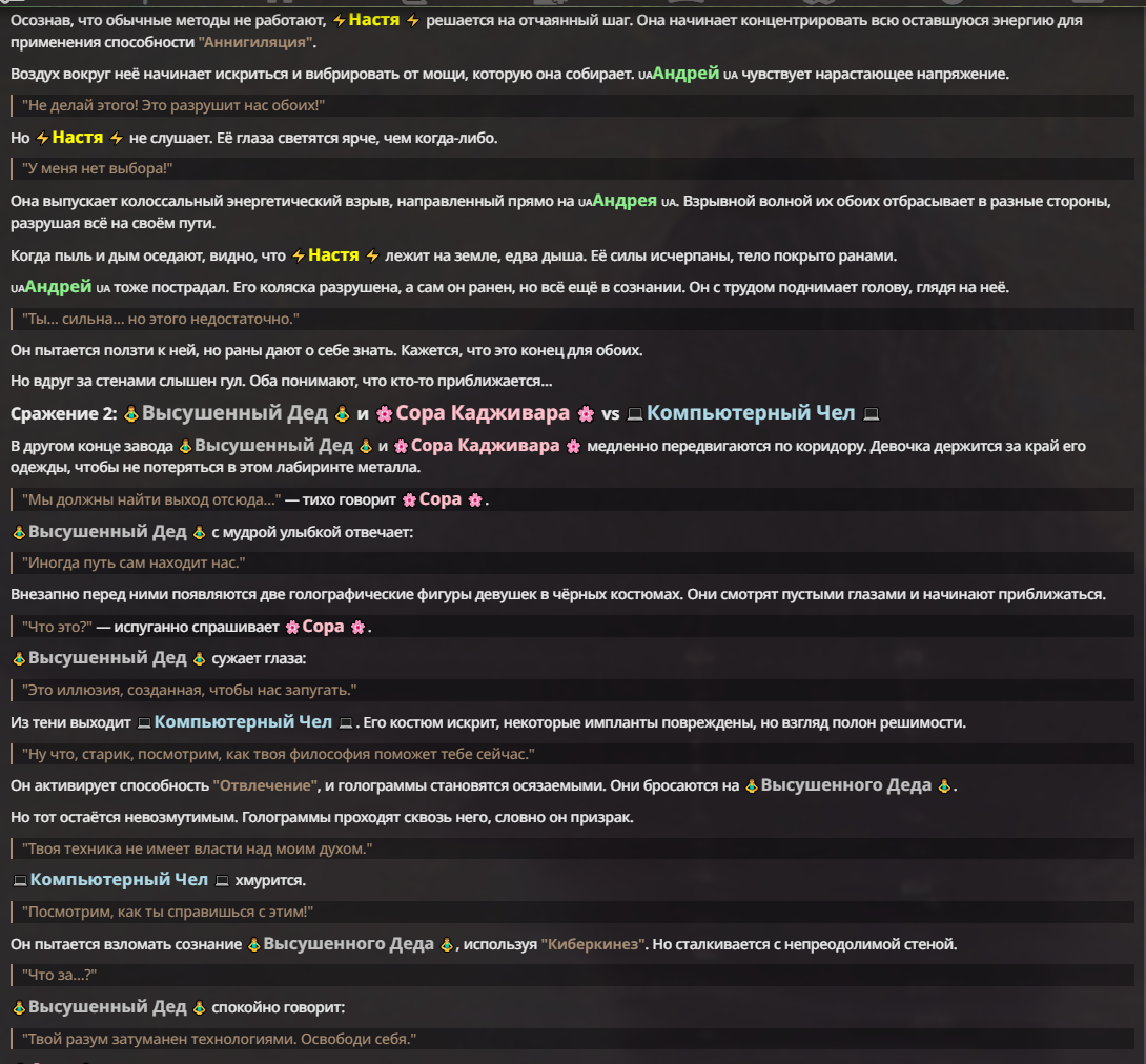 Пиздос, даже после отмены правил о допуске божественных уровней просто диву даёшься как твоё закинутое буквальное божество тьмы откровенно сосёт у обычной Маши, Я реально просто походу не понимаю паверскаллинга у нейронки, хотя раньше на анимефорумах так легко скаллировал уровни сил
