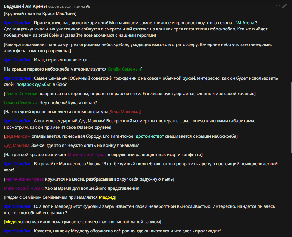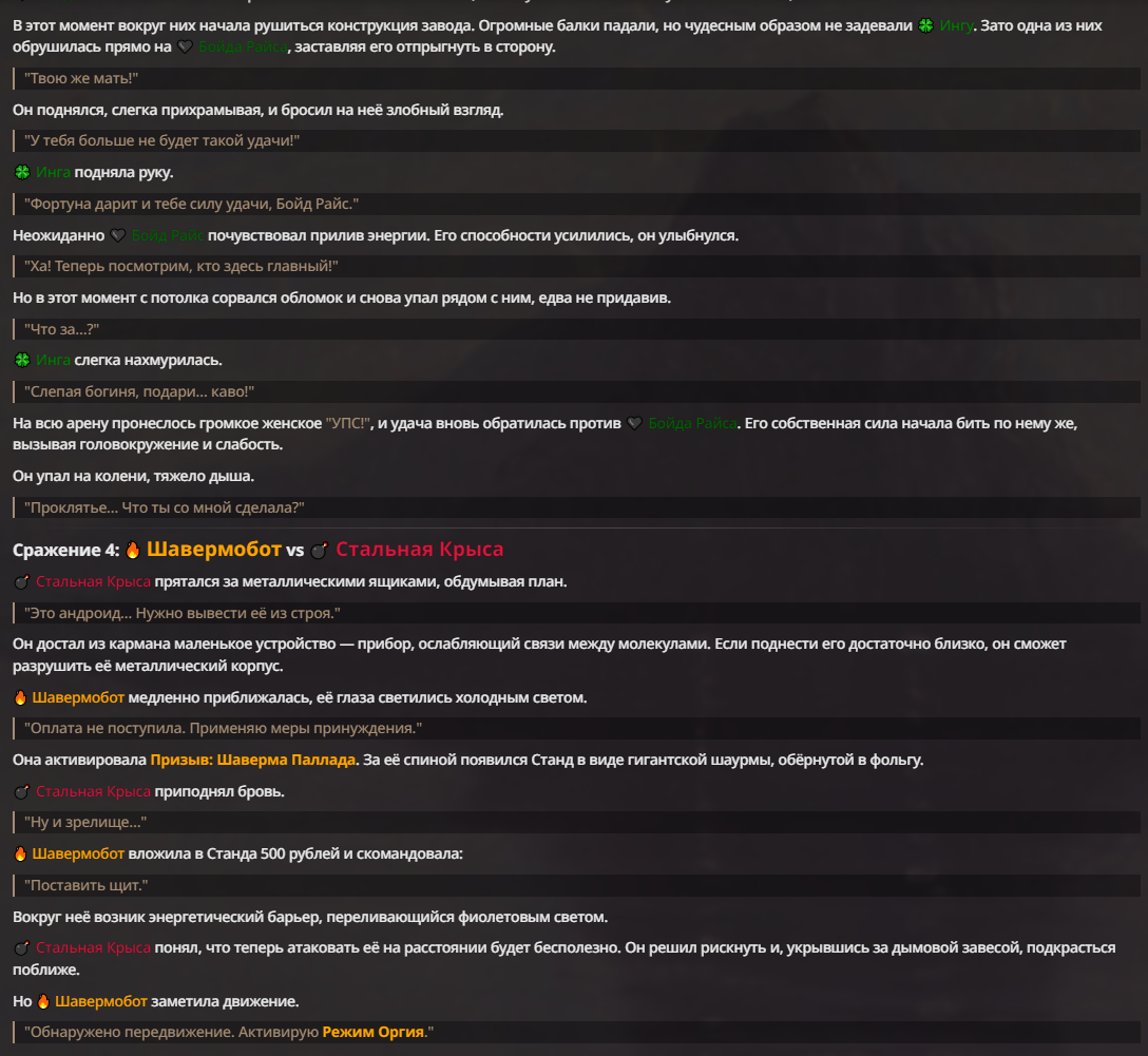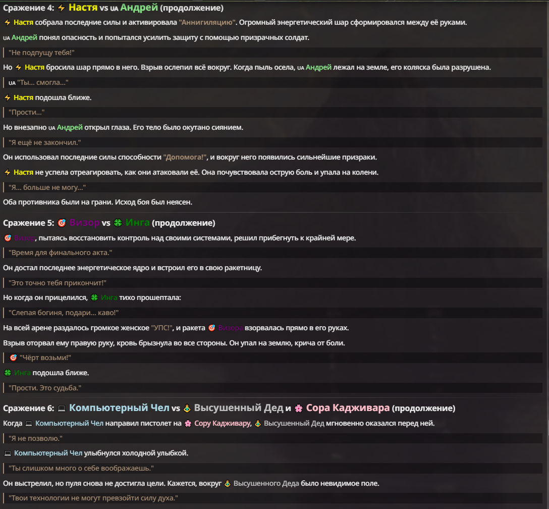 АИ АРЕНА |АИ БИТВЫ Игровой тред №15. В этих битвах может участвовать любой персонаж из любой вселенной, даже нашей(и даже из вашей головы)! Вам только нужно предложить их. Так же можете предложить место проведения боя которое выберется случайным образом.