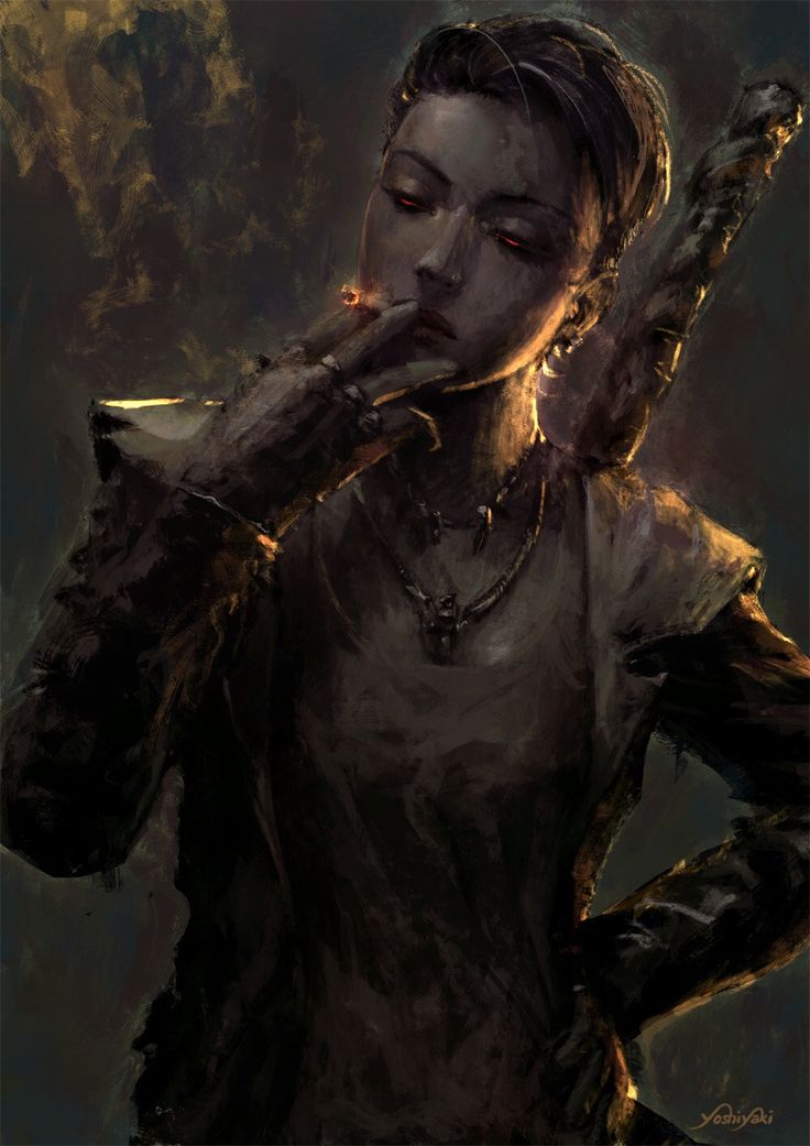 Мари была достаточно крепка телом чтоб стать солдатом, и достаточно умна чтоб сменить род службы на полевого медика. Всё было чудесно, если так конечно можно было назвать постоянную резню и непрекращающийся поток раненых проходивший через её руки, пока однажды черви в загноившихся ранах её товарищей не начали шептать странные слова. Армию пришлось бросить, а в память о службе ей остались лишь старый медицинский саквояж да флакон изысканных духов, взятый трофеем в одной из разграбленных её отрядом деревушек. Мари очень любила эти духи, и благодаря им от неё действительно приятно пахло, но только до того момента как она снимала свои солдатские ботинки...